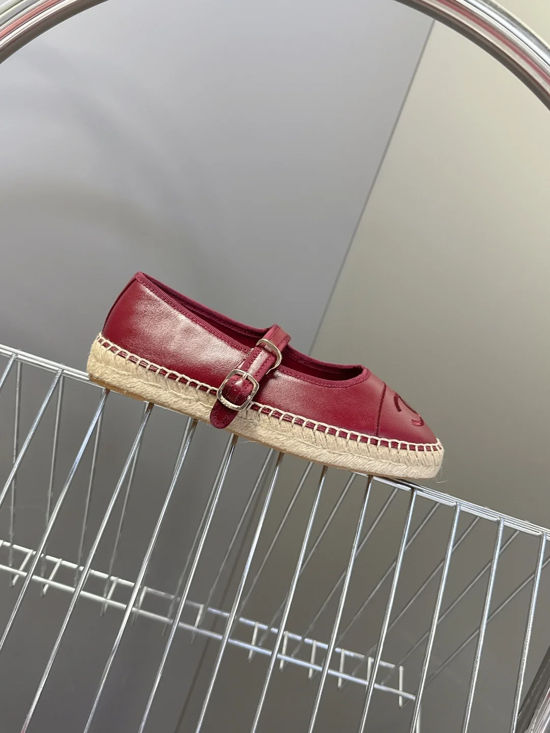 Highly recommended by numerous celebrities, the classic Mary Jane woven fisherman shoes are a signature footwear style of the brand s French elegance. They perfectly blend vintage and fashion, making them a versatile luxury shoe for commuting and vacationing in spring and summer. The shoe s toe features the brand s iconic interlocking CC logo, enhancing recognition while subtly showcasing brand identity. The shoe body adopts a Mary Jane design with a single strap, complemented by an adjustable metal buckle that not only flatters the foot shape but also securely locks the ankle. The upper is made of imported mixed sheepskin, with a mixed sheepskin lining and an original molded rubber outsole. Size: 35-41 (no returns or exchanges for sizes 40 and 41).