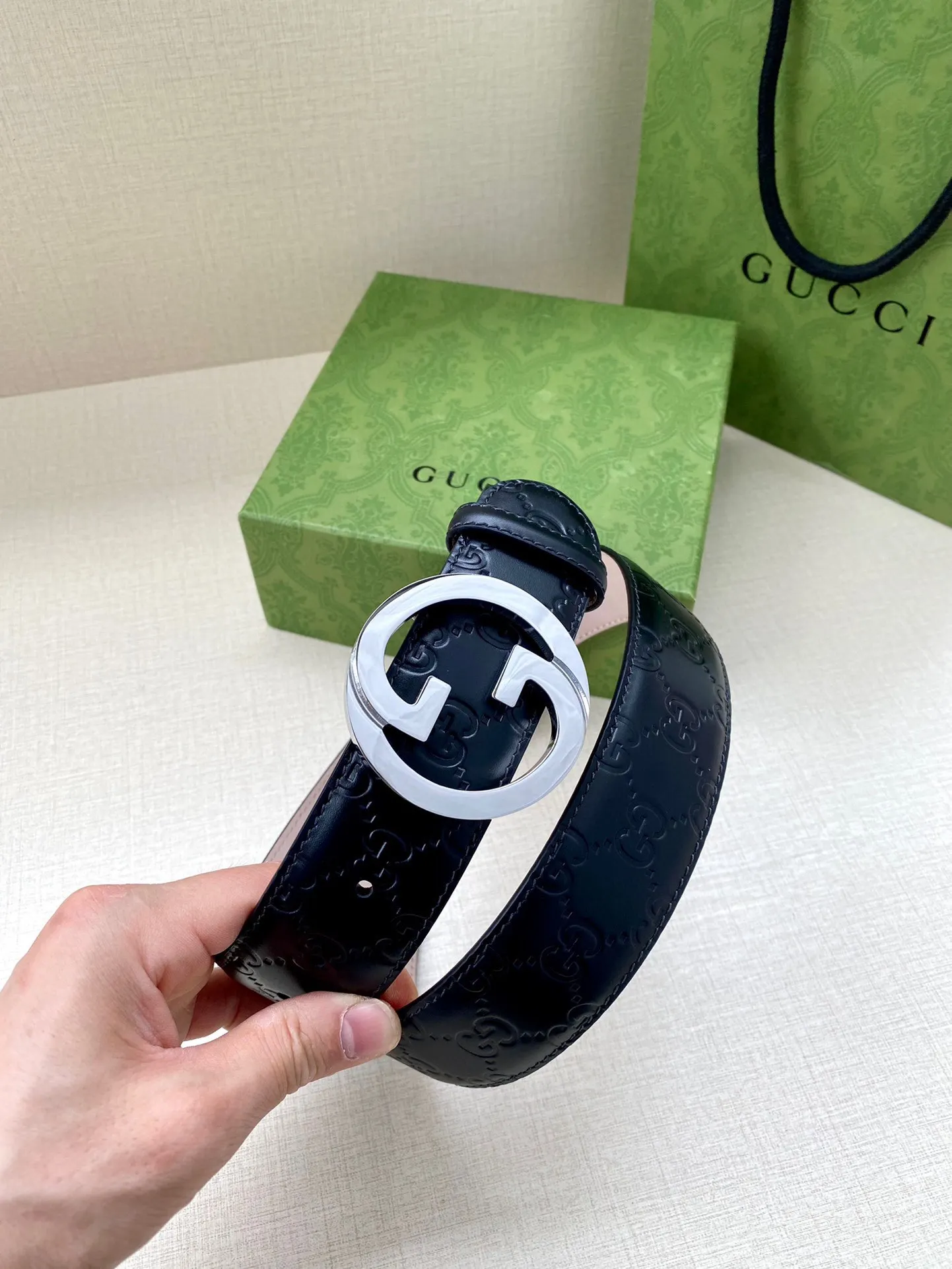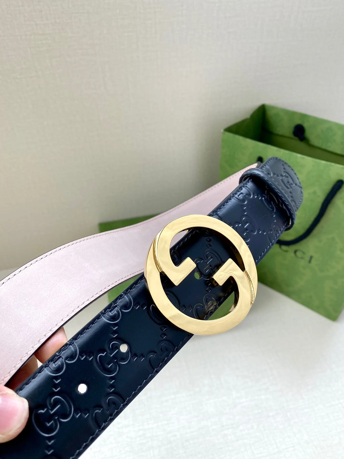 Width 4.0cm GUCCI Gucci Love s March new fashion collection features a selection of brand collectibles, reinterpreting the interlocking double G original steel buckle logo with geometric shapes, presenting a variety of unique items. The timeless design elements resonate with the Hollywood glamour showcased in this fashion show.