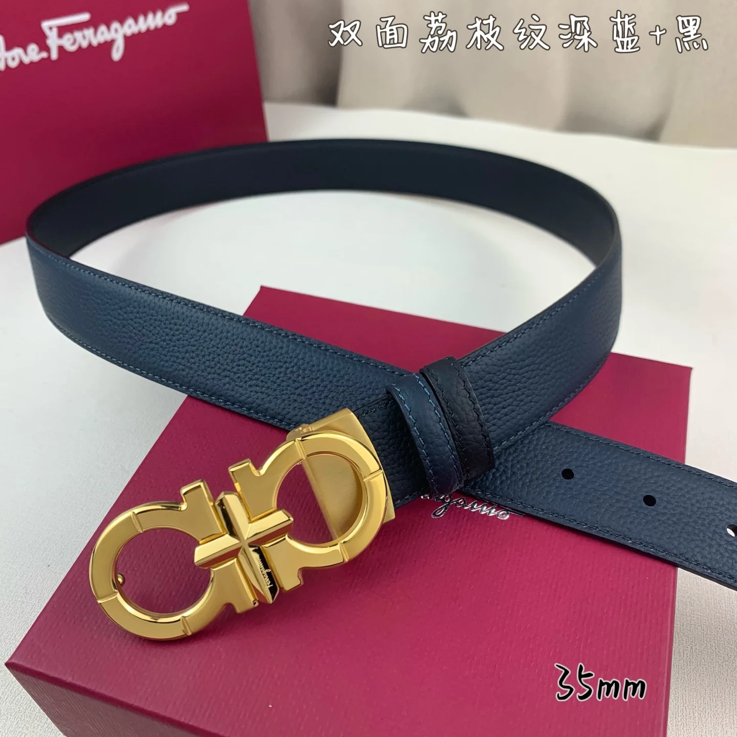 Ferragamo. Complete packaging, width 3.5cm, high-end custom men s belt, double-sided imported cowhide, can be used on both sides, self-selected matching, made of genuine materials..