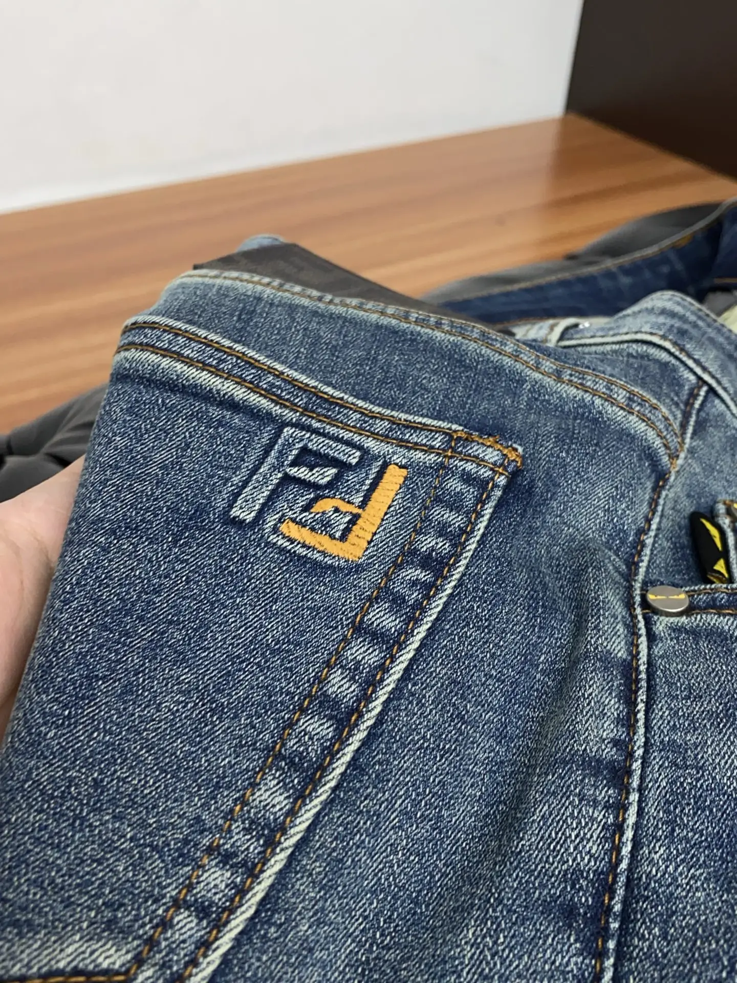 Fendi 2026 Spring/Summer New Collection Jeans feature a clean and sharp cut, exuding urban style. Made from finely woven fabric, they offer a soft and dry feel, providing a structured and stylish fit when worn. The hardware is exquisite, making them perfect for both business and casual occasions. With such a wealth of top-quality materials, these jeans create an unparalleled sense of value, making them the first choice for high-end fashion enthusiasts.