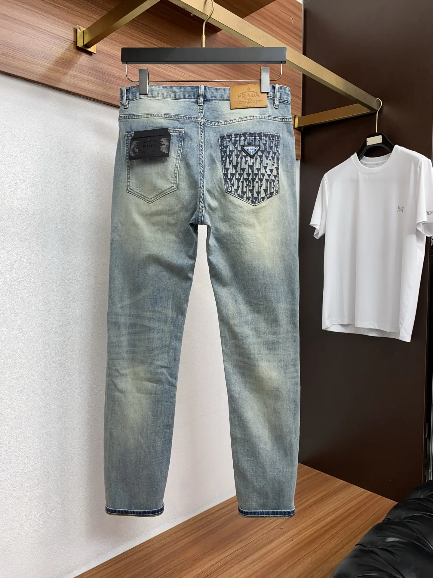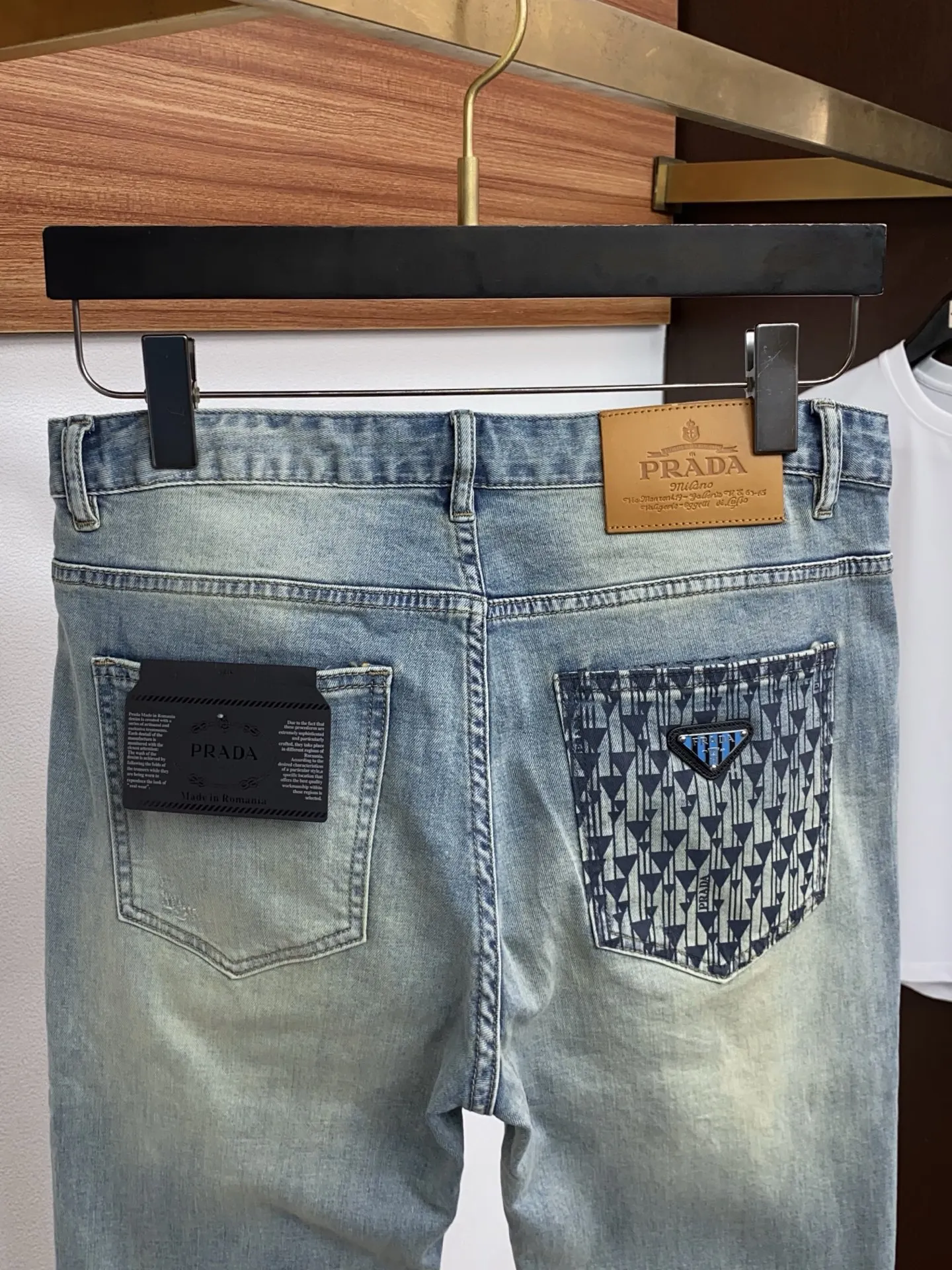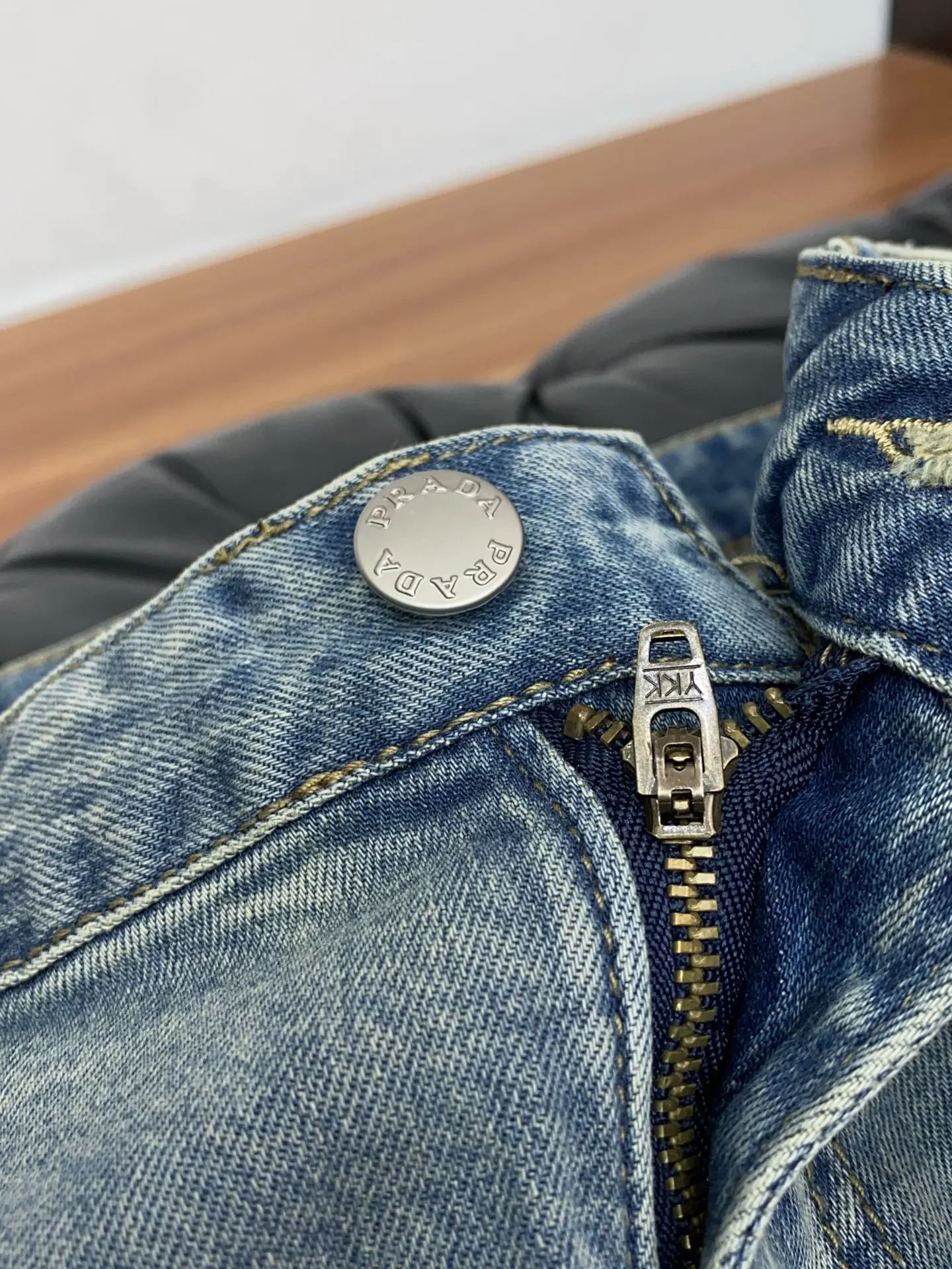 Prada high-end customization, 2026 early spring latest style jeans available for simultaneous sale at the counter, original custom replica, client-supplied hardware accessories, original quality, imported high-elastic denim fabric, heavy washing, exquisite workmanship and stitching, excellent fit! Selected item