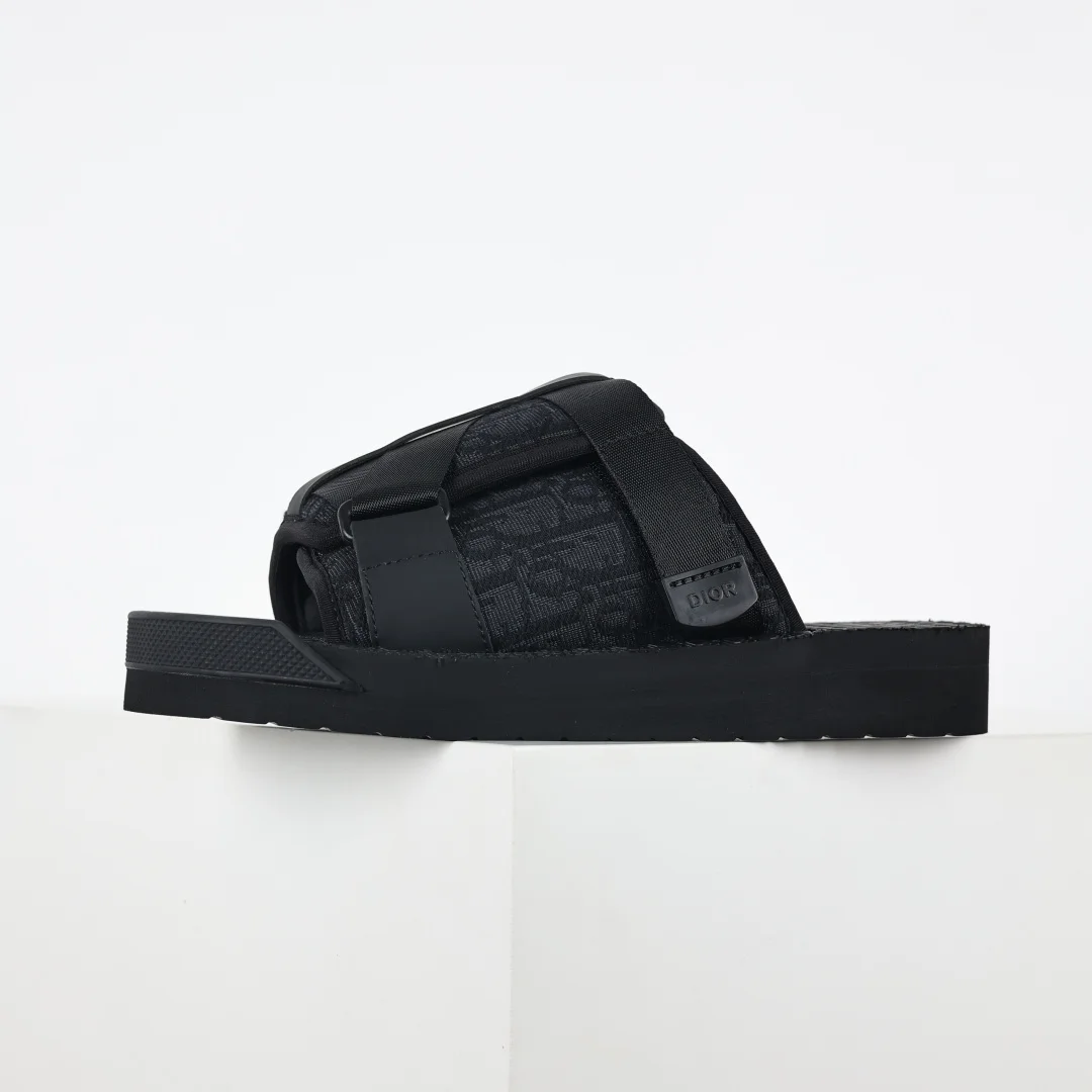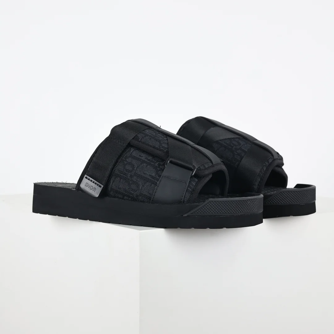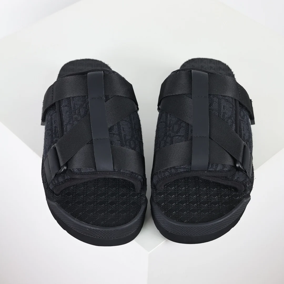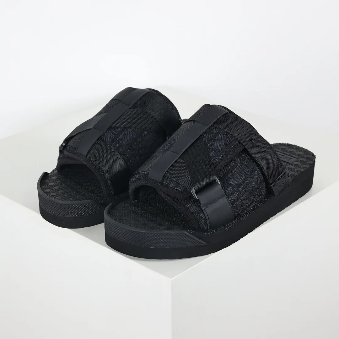 Dior Alpha Oblique Electric Embroidery Fashion Slippers This style of closed-toe slippers features a beige and black Dior Oblique classic design with high recognition due to electric embroidery jacquard. This pattern was originally introduced in 1967. Dior Closed-Toe Slippers All Black