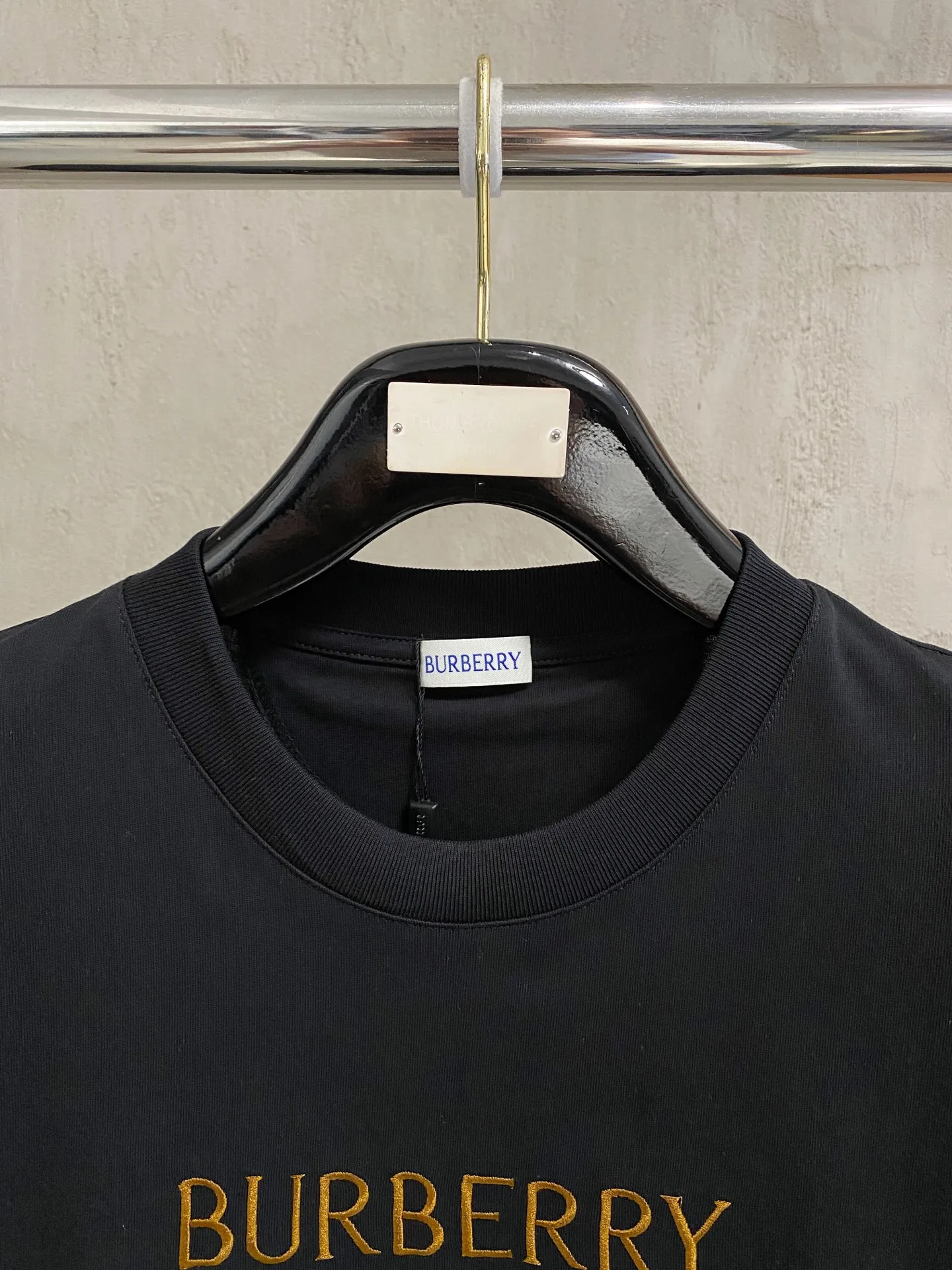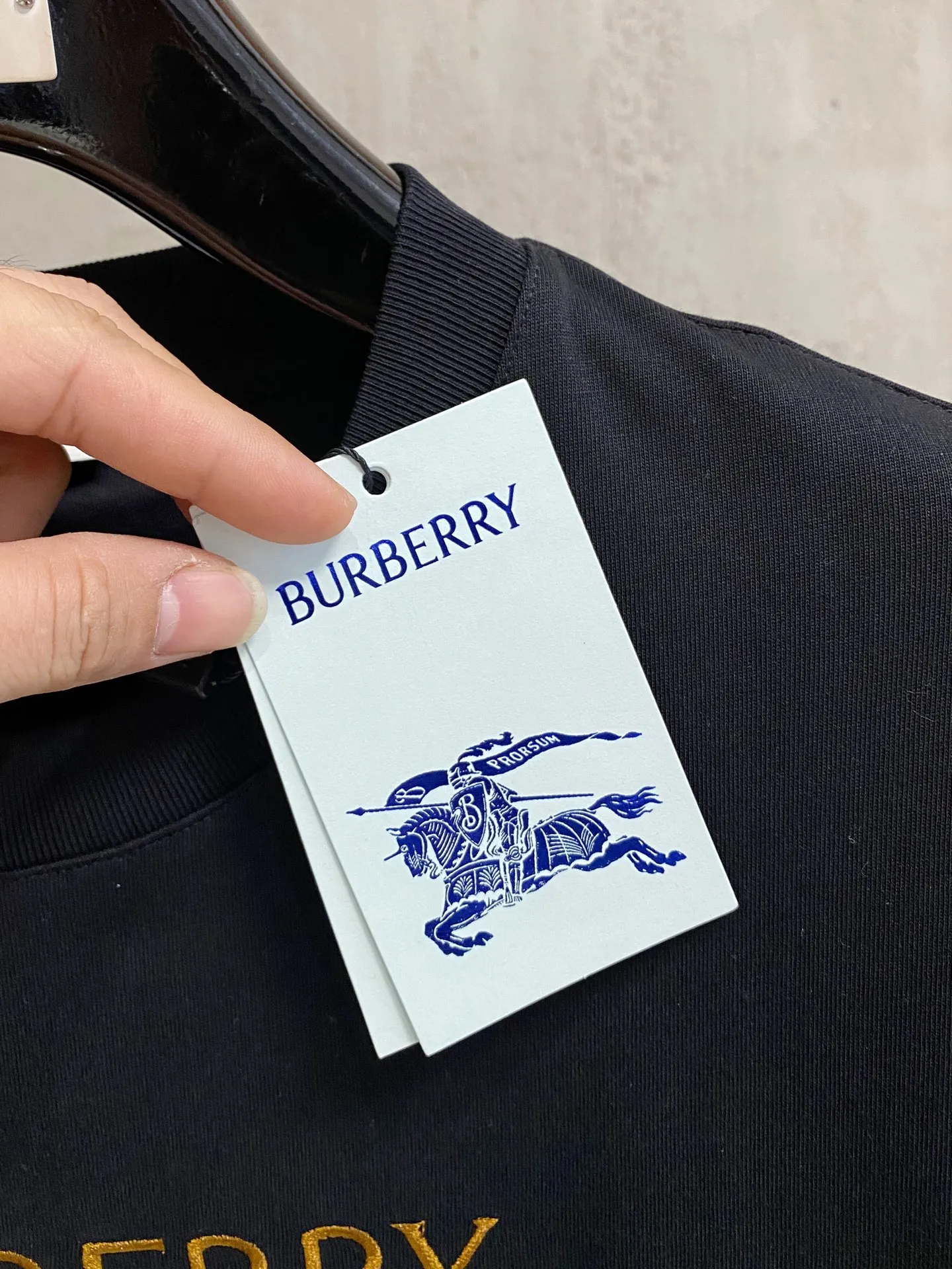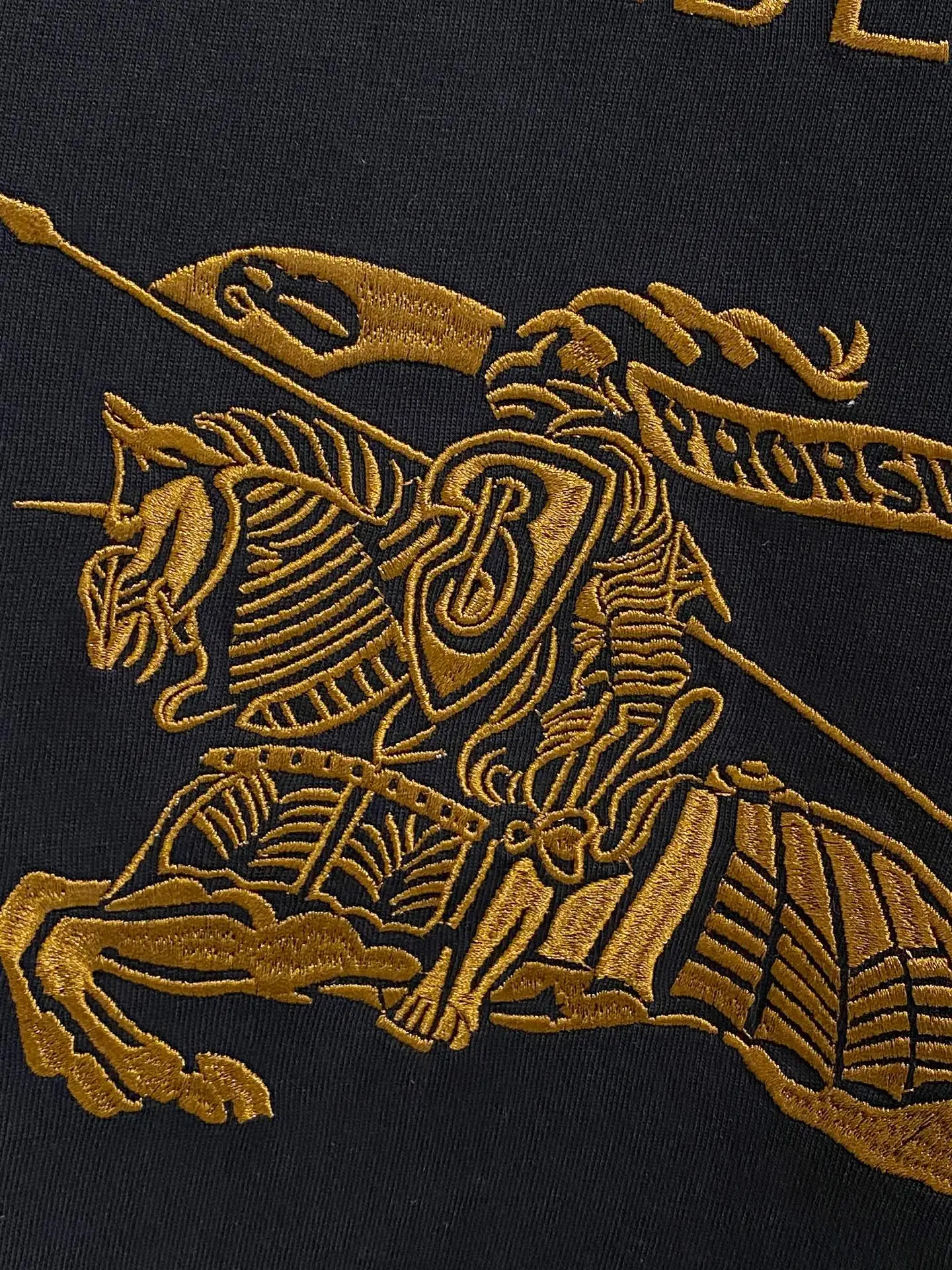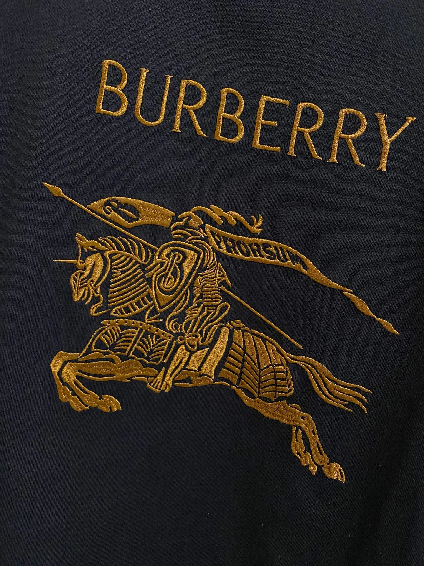 2026SS New Arrival Burberr*/Burberry Equestrian Knight Embroidered Cotton Knit Round Neck Short Sleeve T-ShirtThe main embroidered pattern of the war horse features a precise needl..