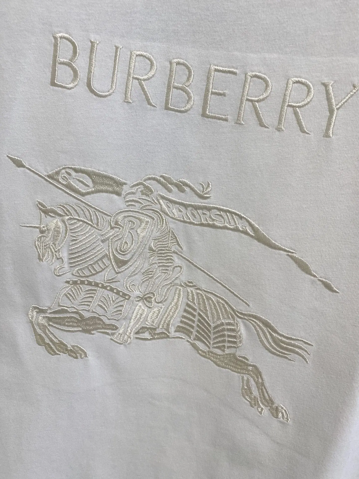 Burberry Equestrian Knight Embroidered Cotton Knit Round Neck Short Sleeve T-Shirt