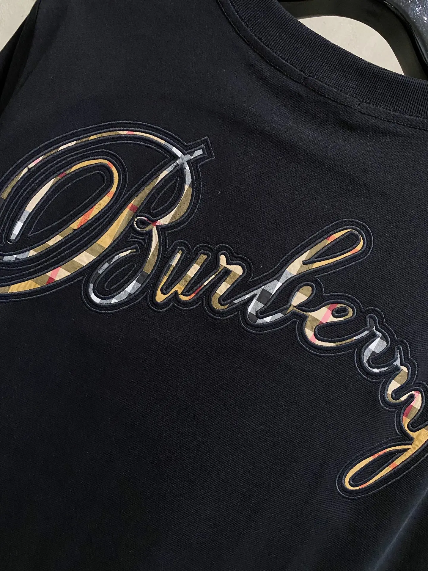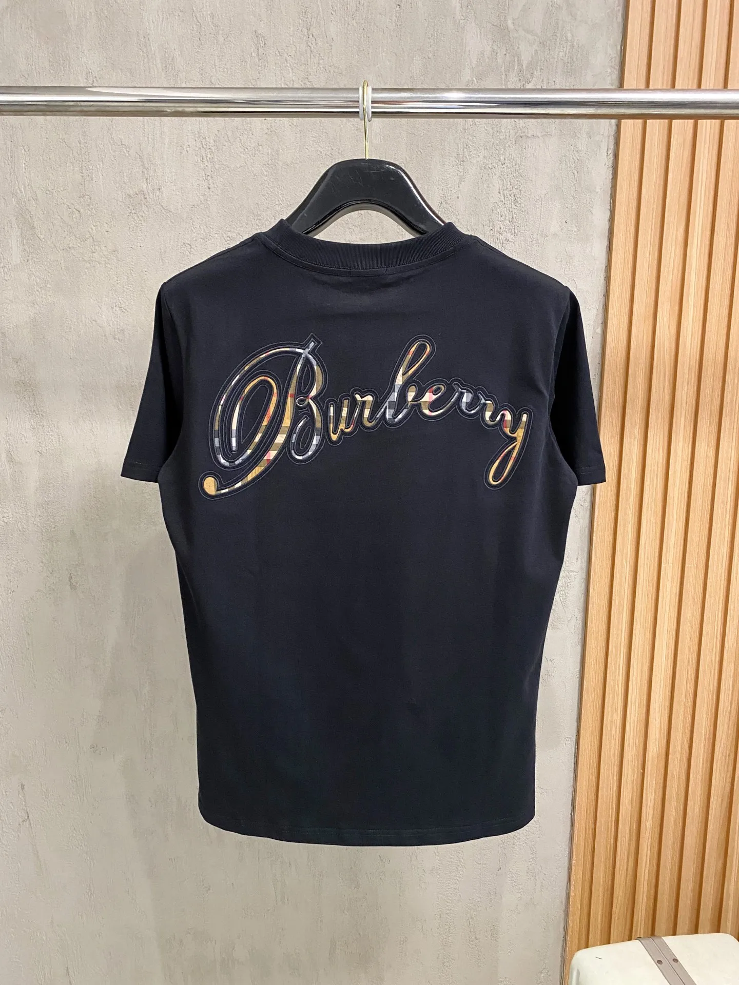 2026SS New Arrival Burbe New Round Neck Short Sleeve Custom Classic Plaid Patch Letter Logo Unisex Short Sleeve T-Shirt Custom Fabric Label Hang Tag and Main Label All Three Tags..