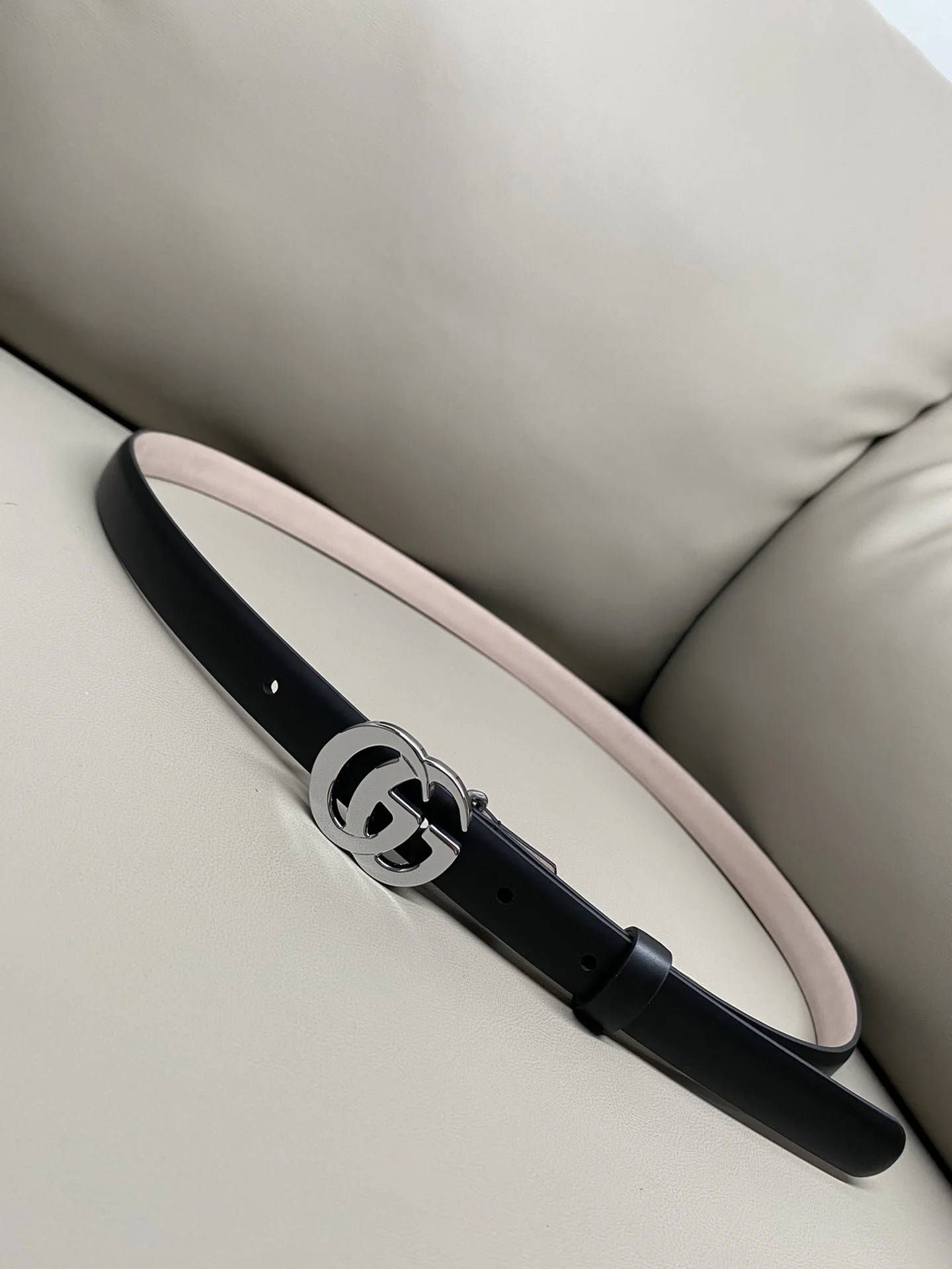 The Flat Marmont series belt with a width of 2.0cm is newly launched in the Spring/Summer 2026 collection. The women s belt is reinterpreted in a minimalist and sleek flat design, showcasing the brand s iconic double G buckle. This belt is crafted from premium black cowhide leather, featuring meticulously integrated silver-tone hardware.