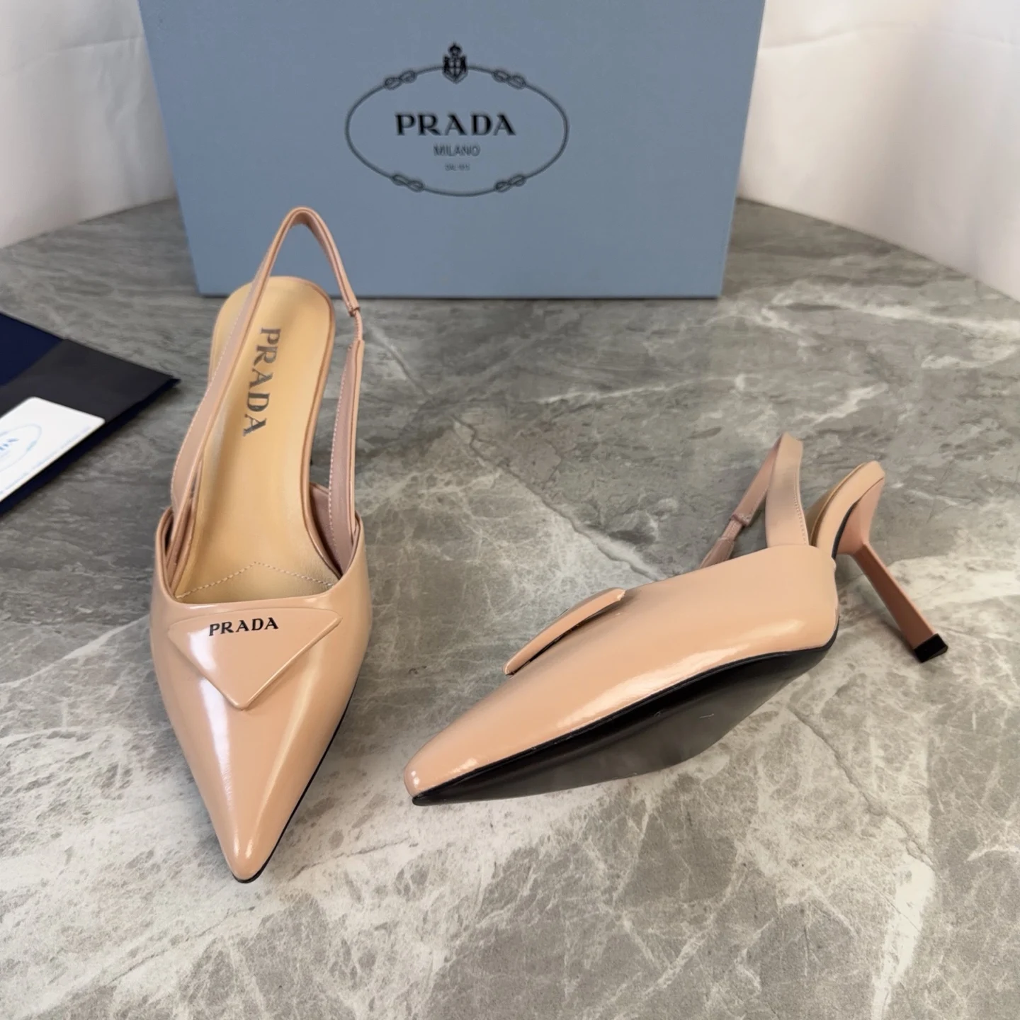 Prada Genuine leather sole pointed toe backless high heels women s high heels