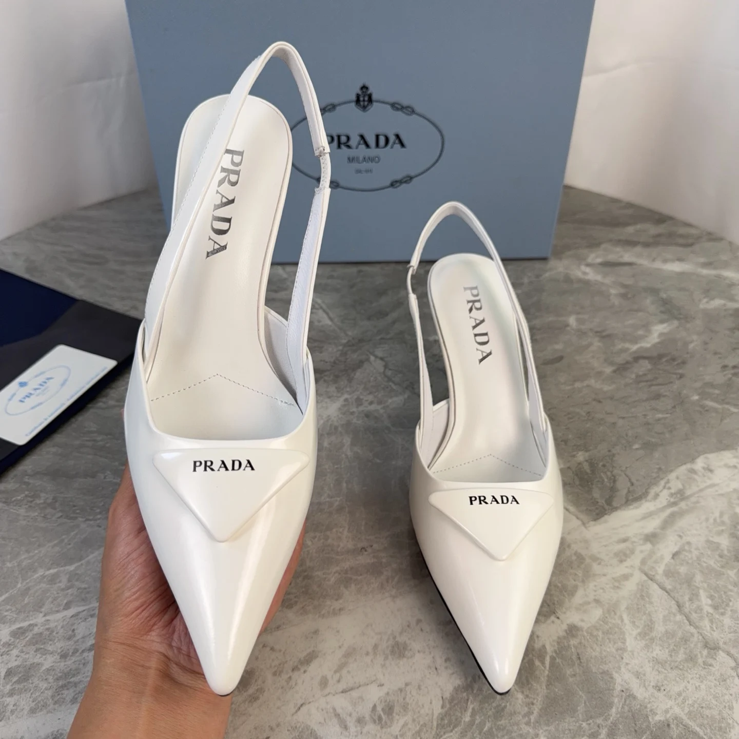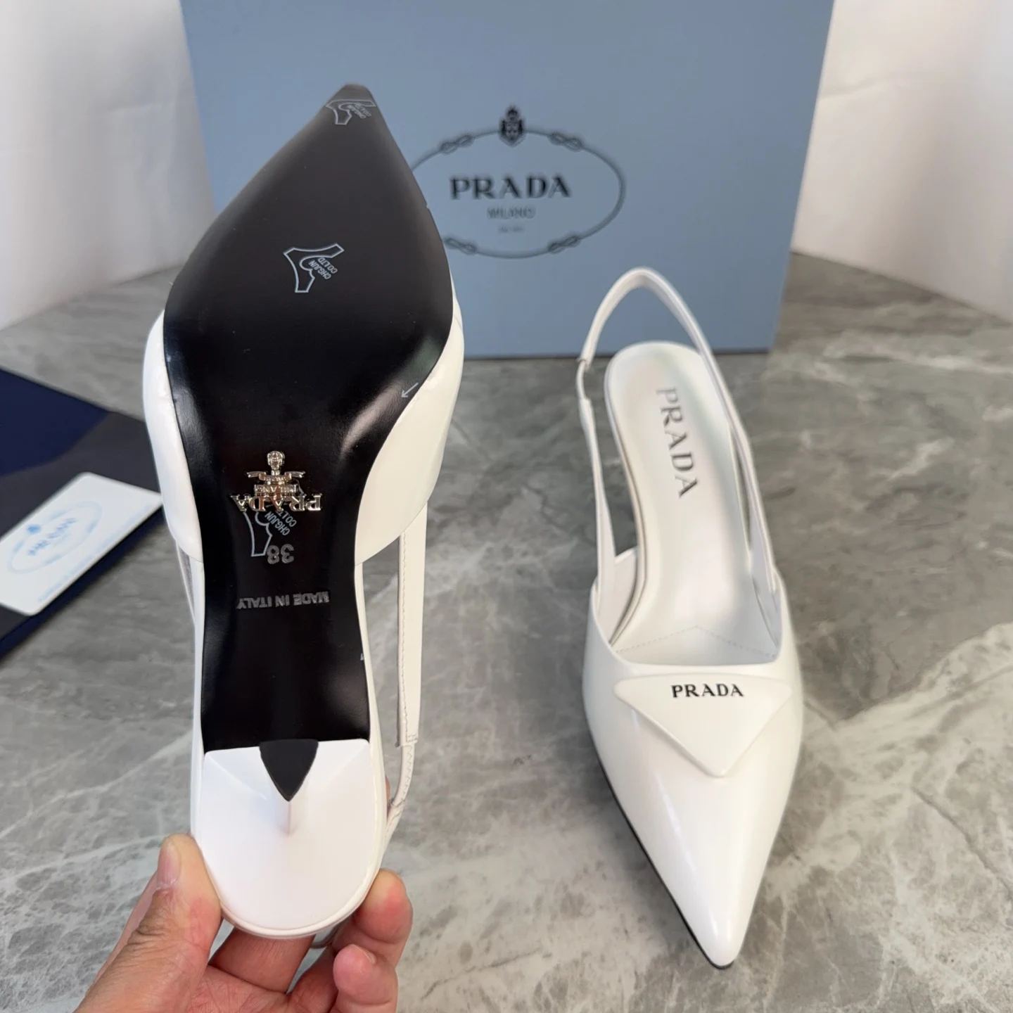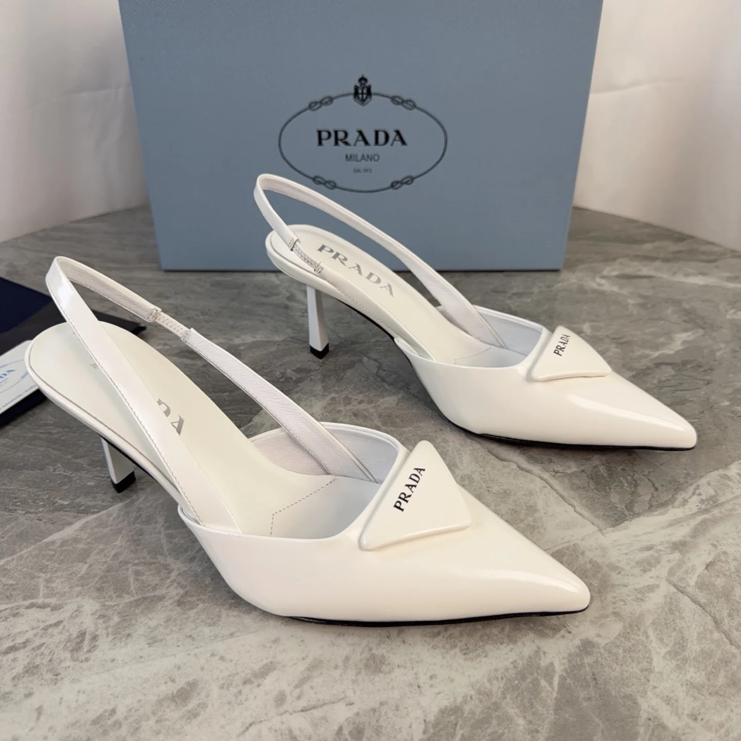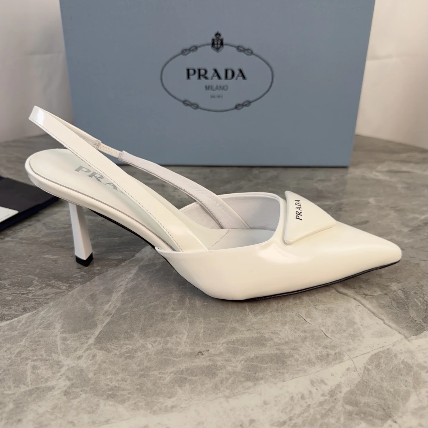 Prada Genuine leather sole pointed toe backless high heels women s high heels