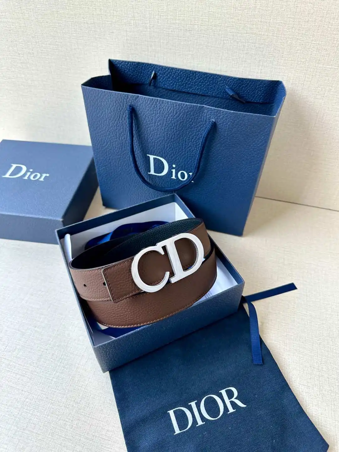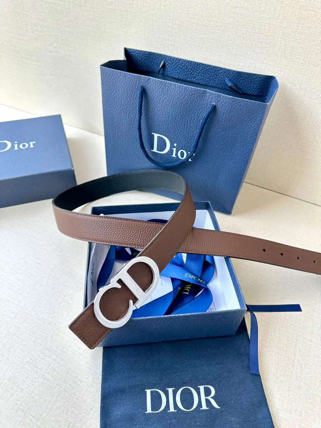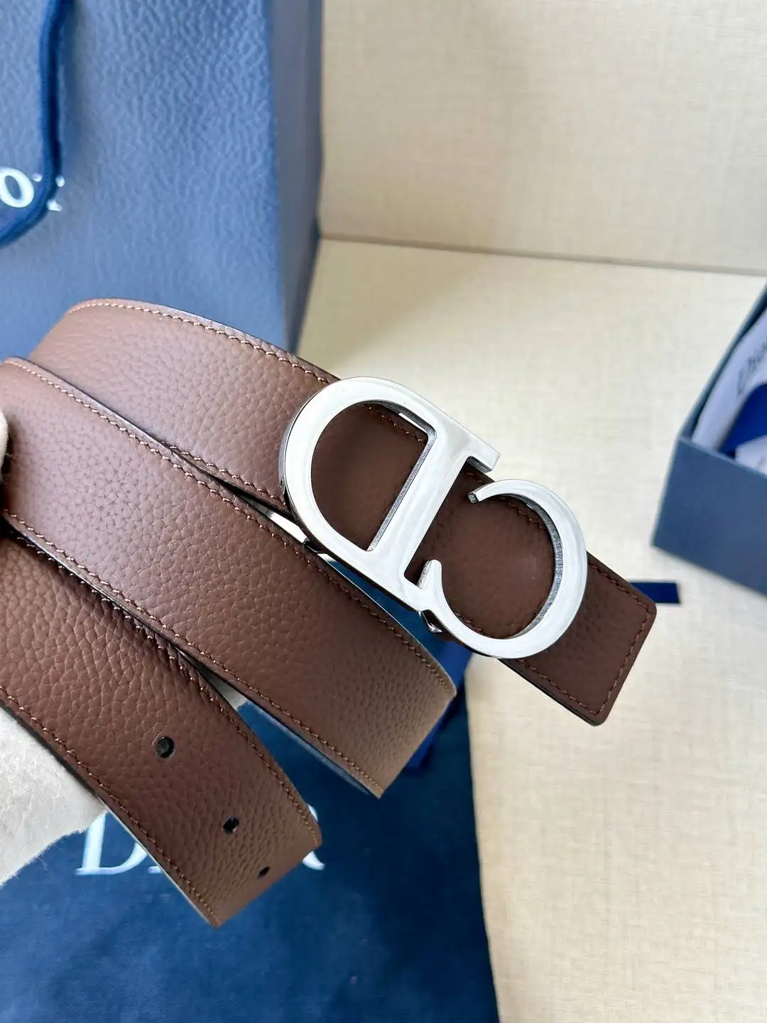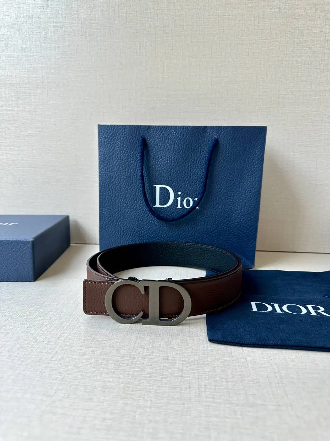 Dior width 3.5cm This 35mm reversible belt combines elegant temperament with modern style. Both sides are meticulously crafted from grain leather, one side is black, while the other offers multiple color options, allowing for pairing with various 35mm belt buckles to create a uniquely personalized accessory that is stylish and versatile.