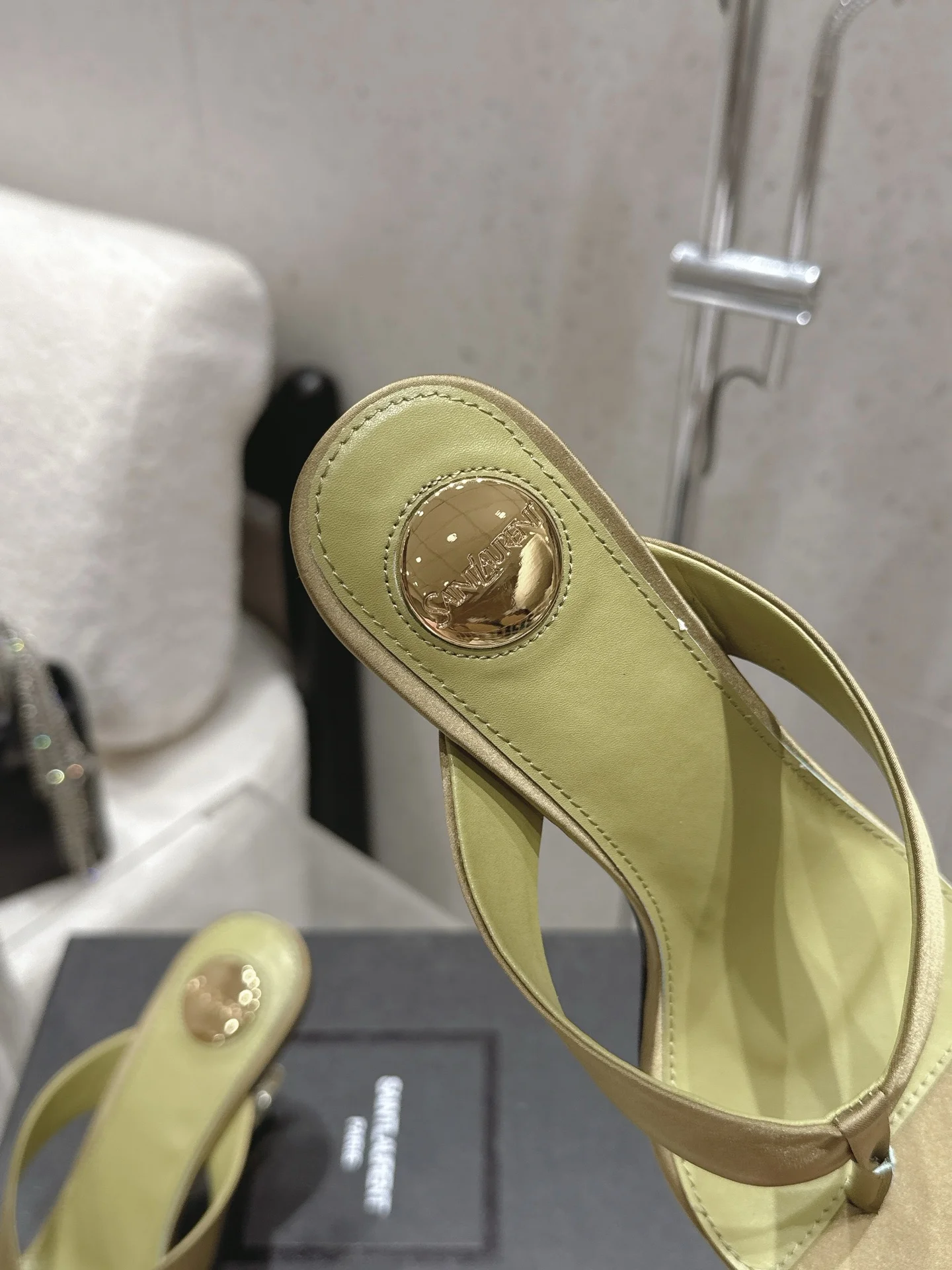 Saint Laurent YSL Spring/Summer New Collection Pointed Toe Hardware Buckle Silk High Heel Flip Flops