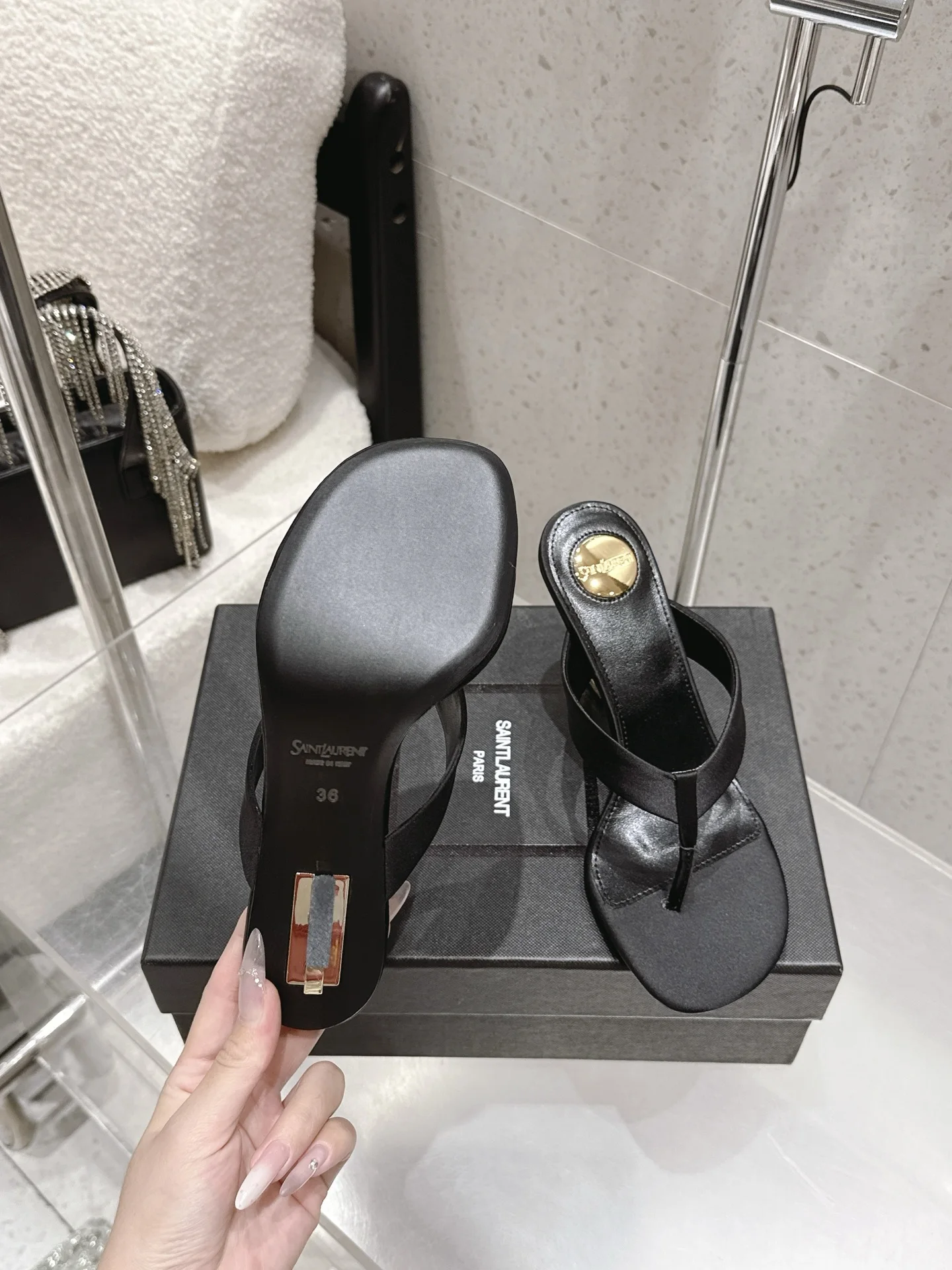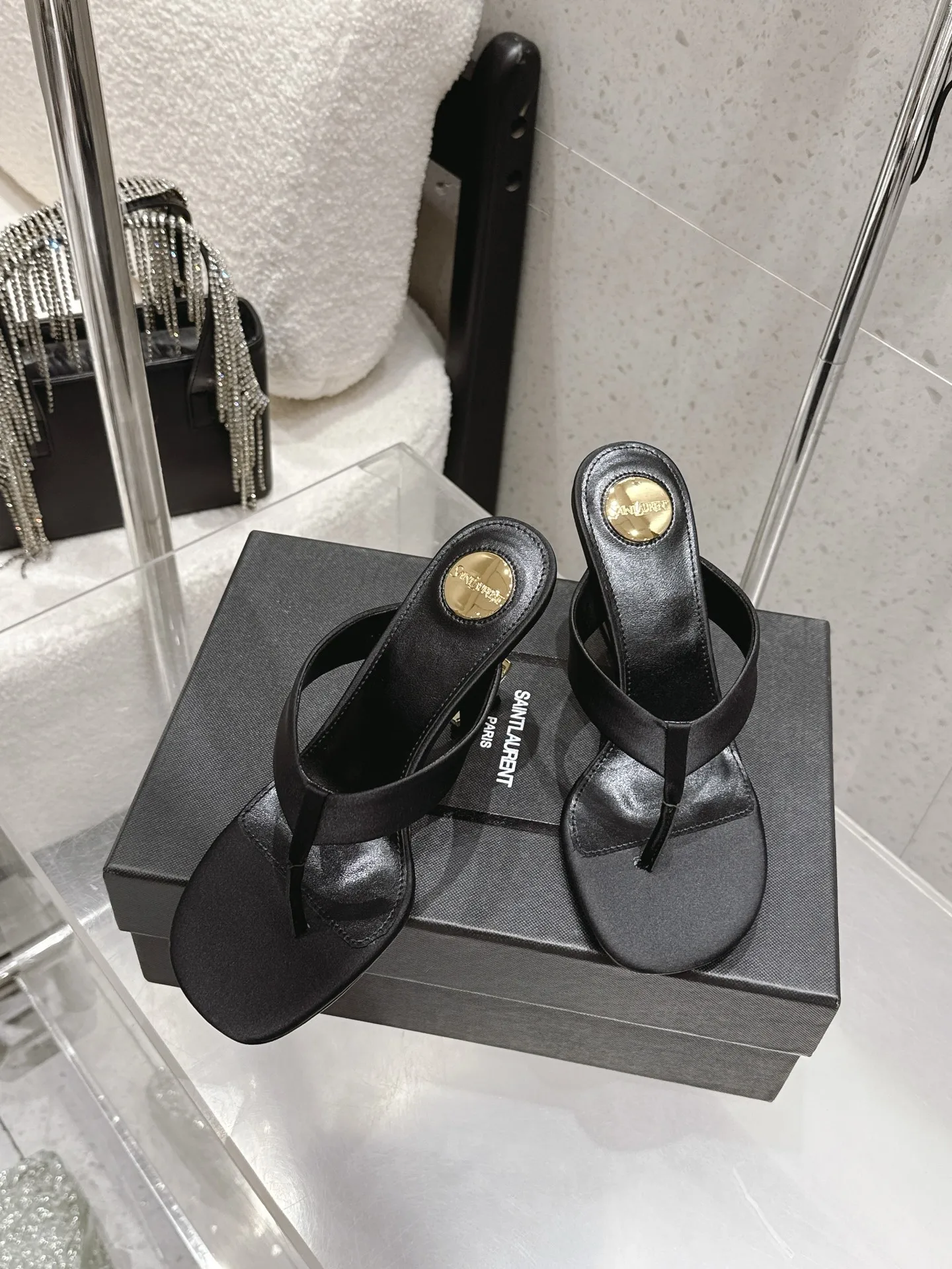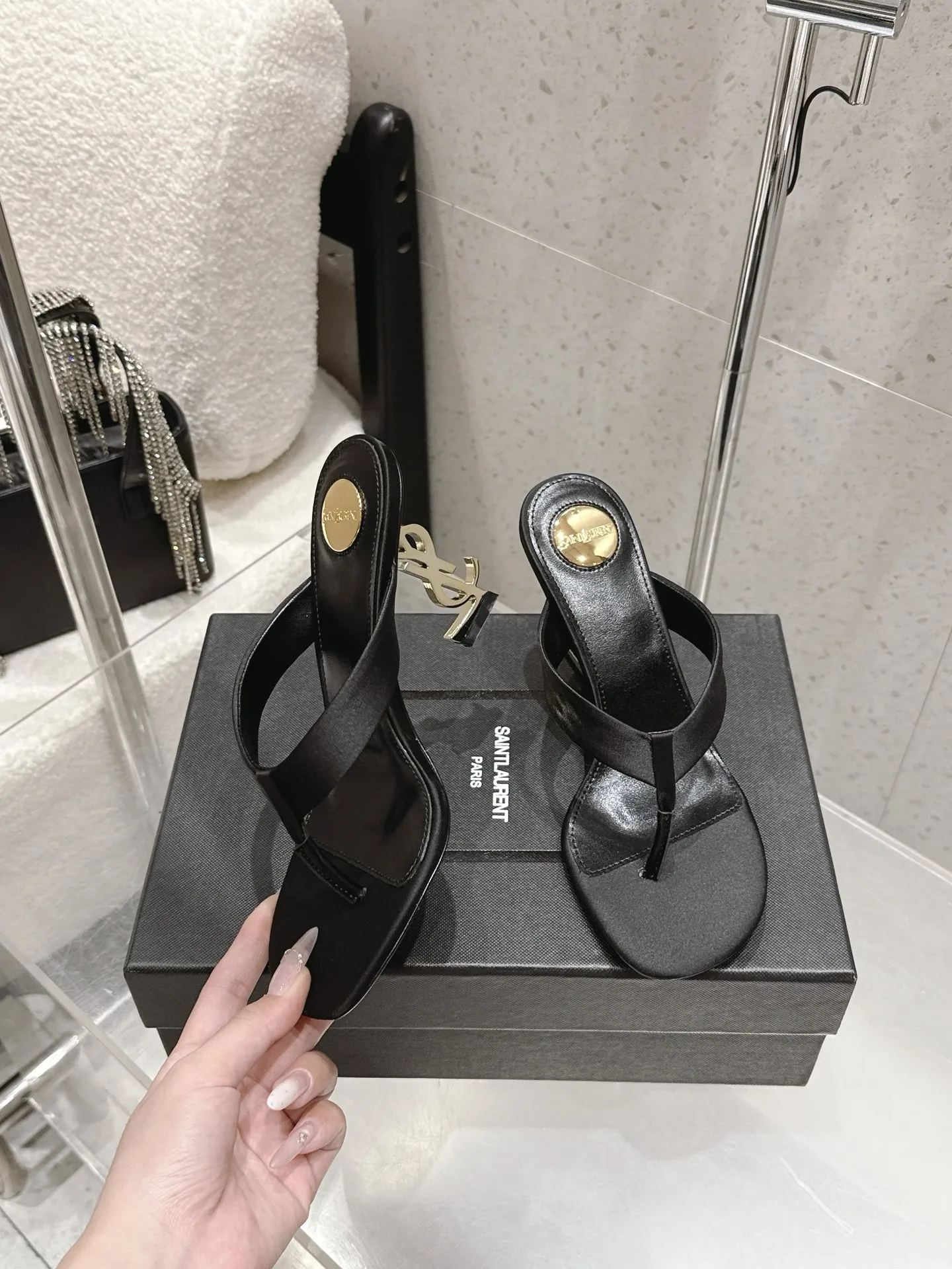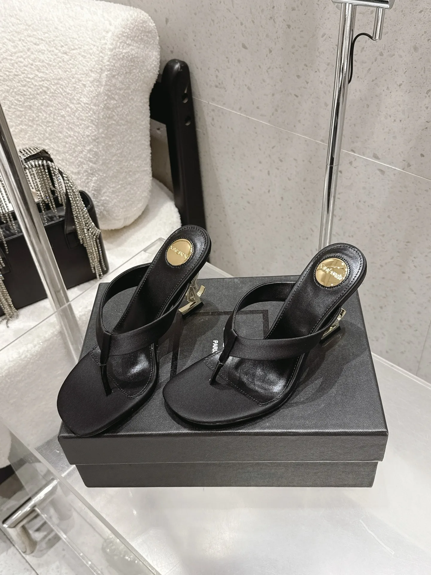 SAINT LAURENT High-heeled thong sandals women s slippers