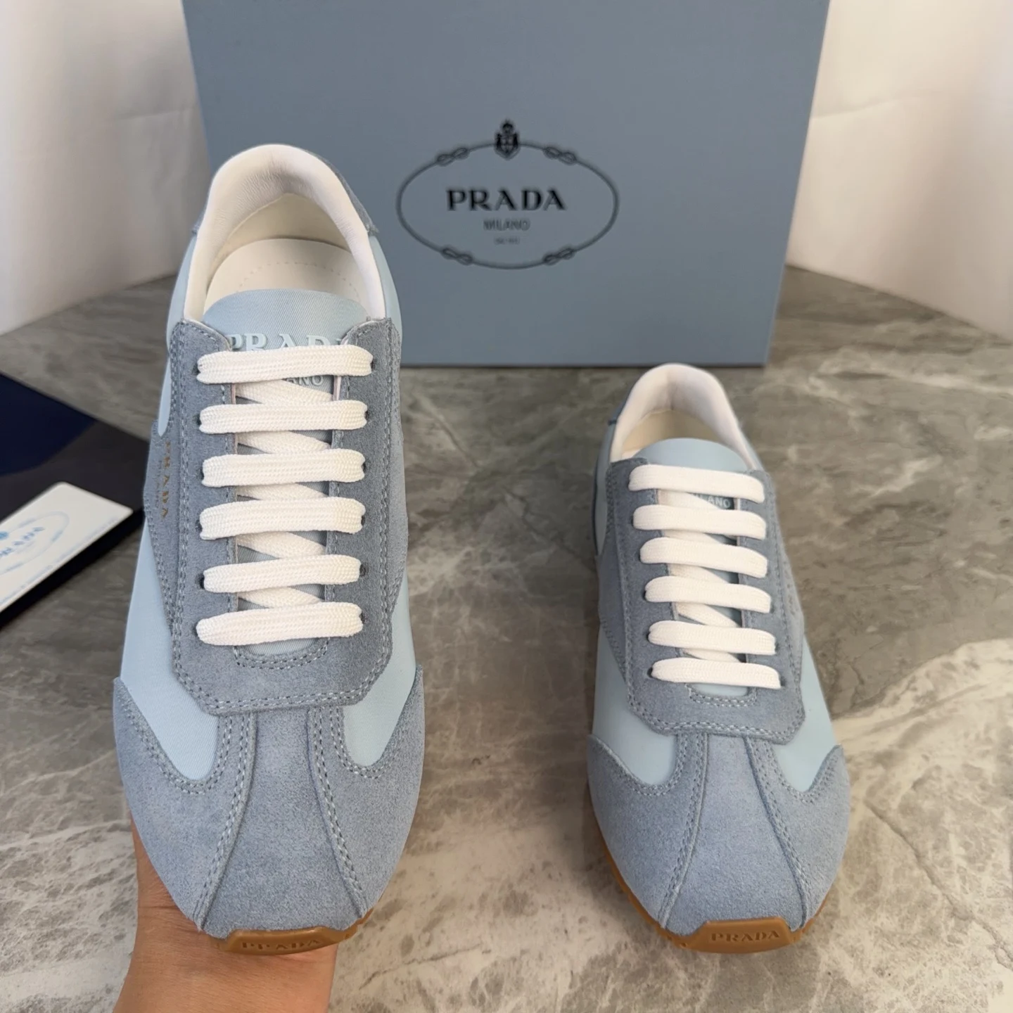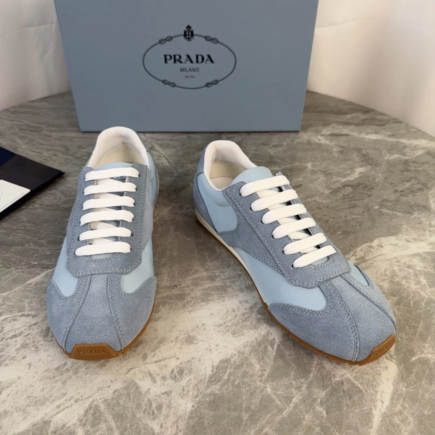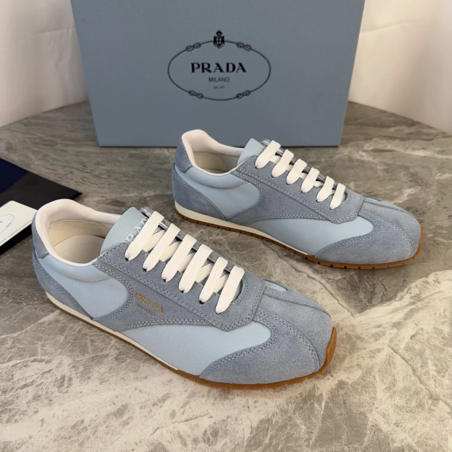 Prada High-top silk-like cow suede training shoes for women casual shoes