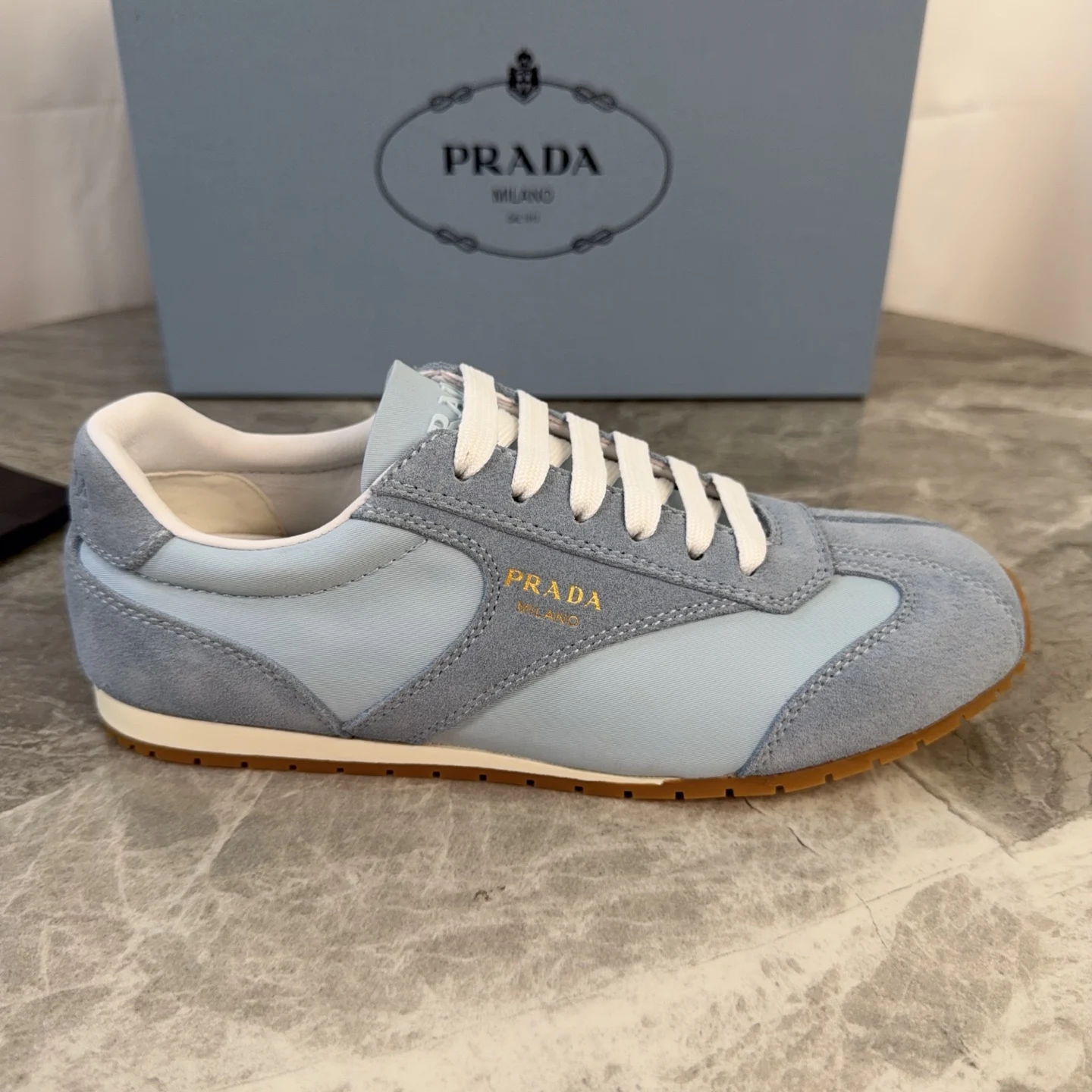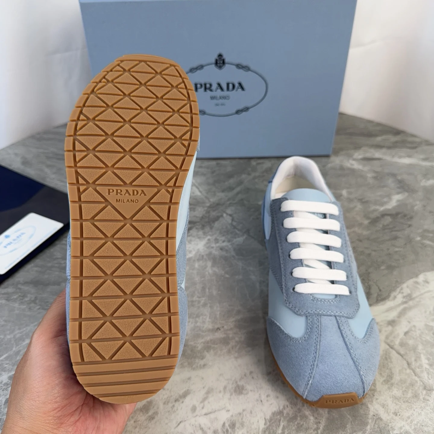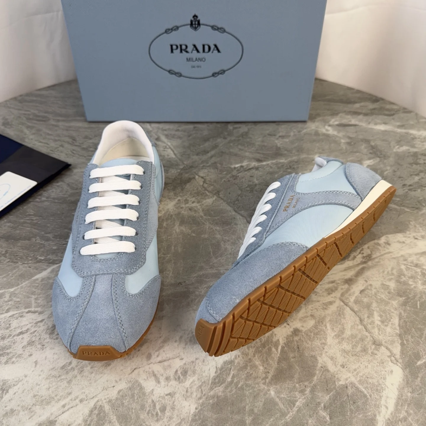 Prada High-top silk-like cow suede training shoes for women casual shoes