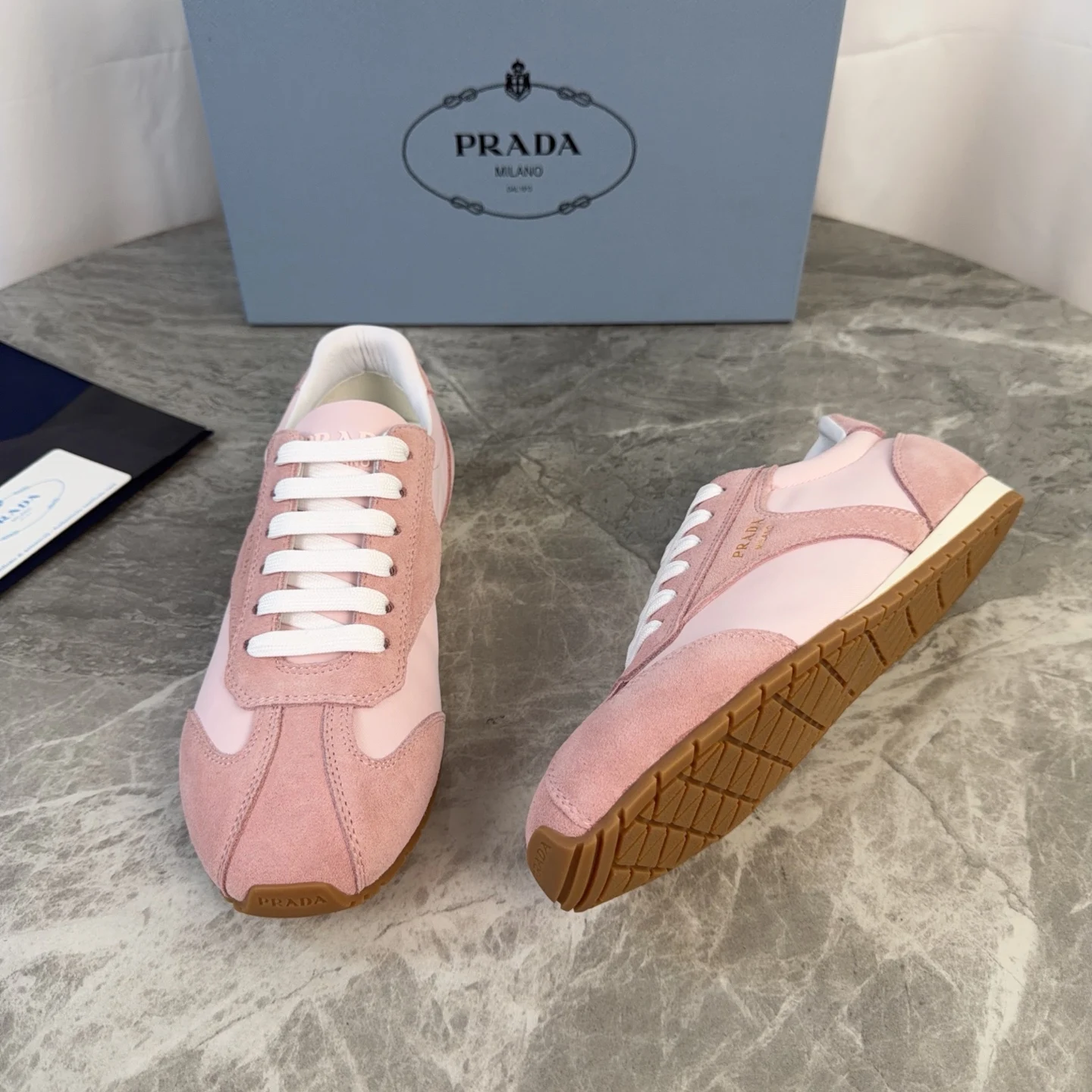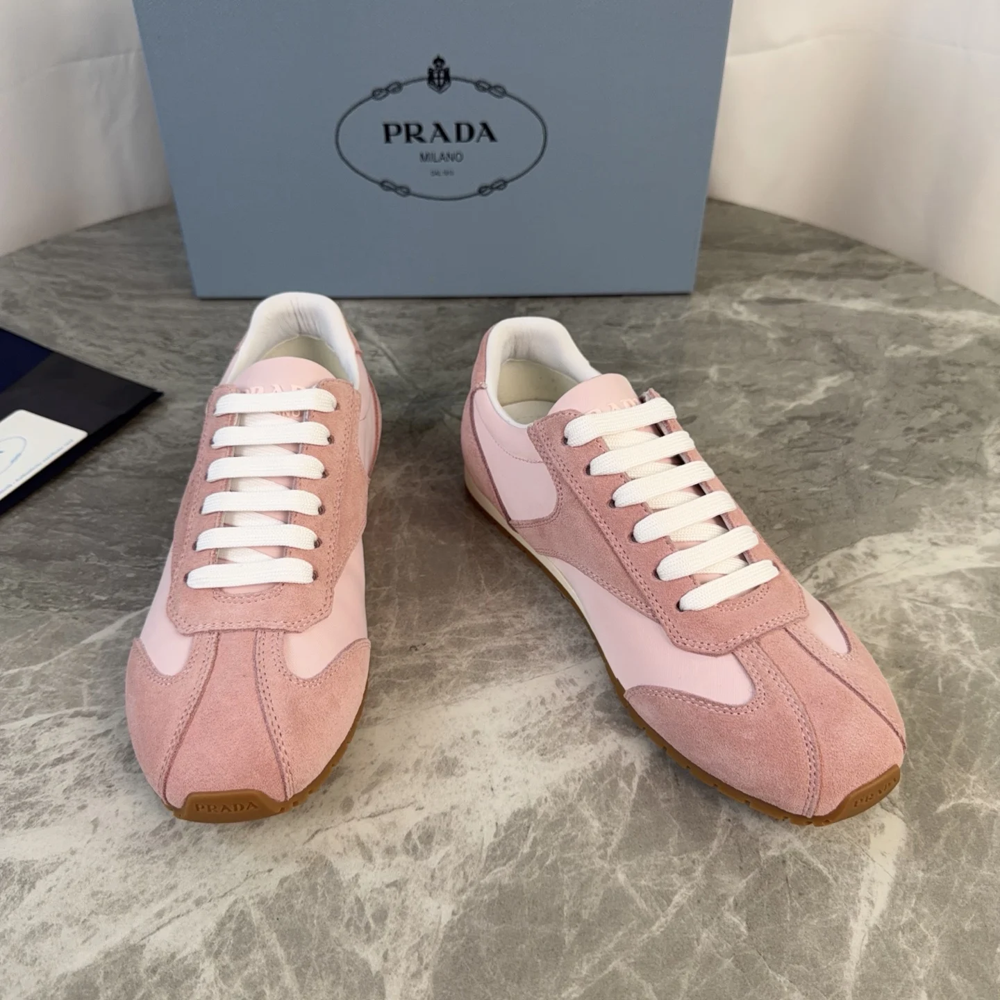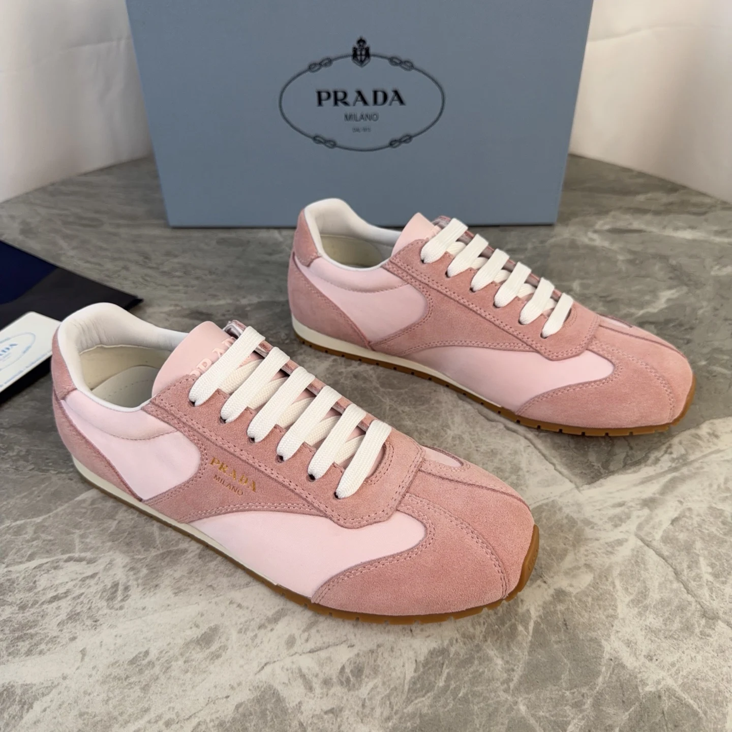 Prada High-top silk-like cow suede training shoes for women casual shoes