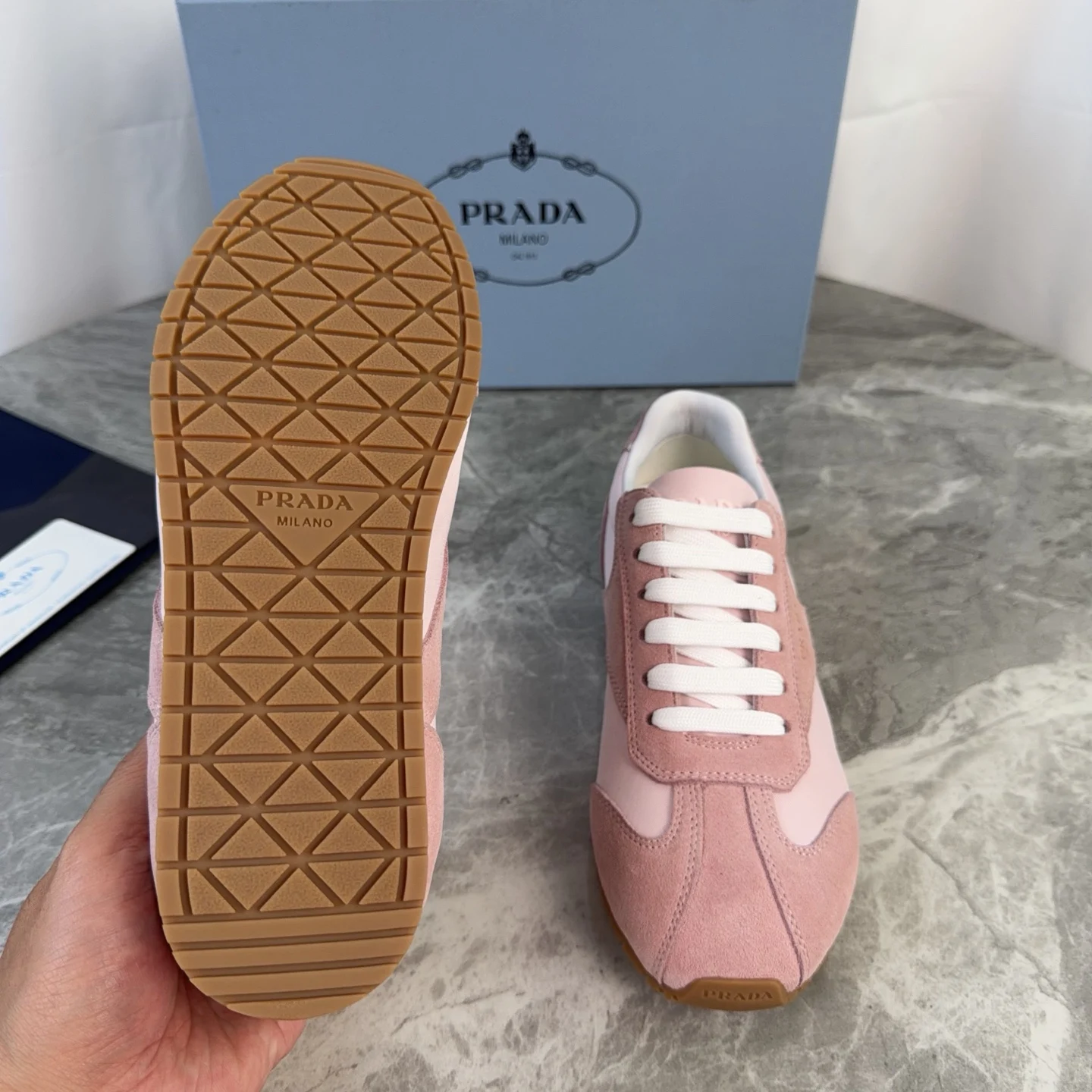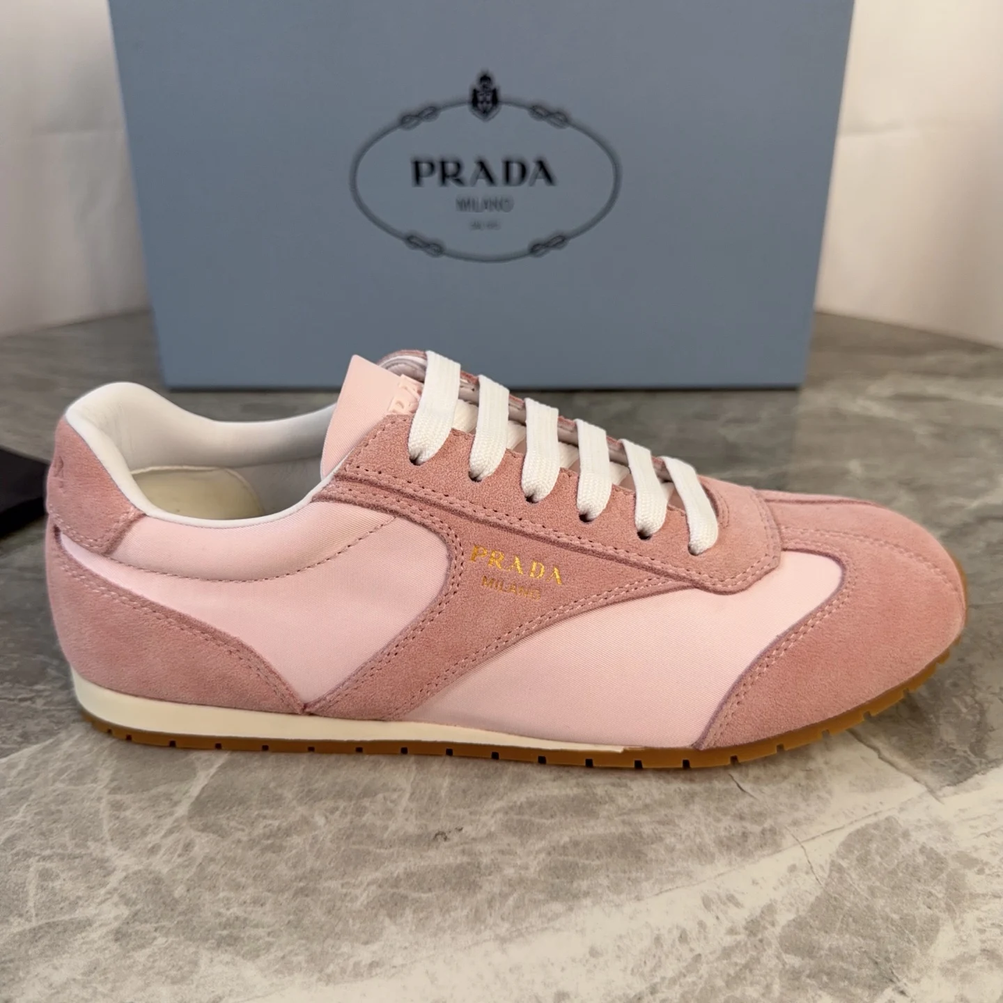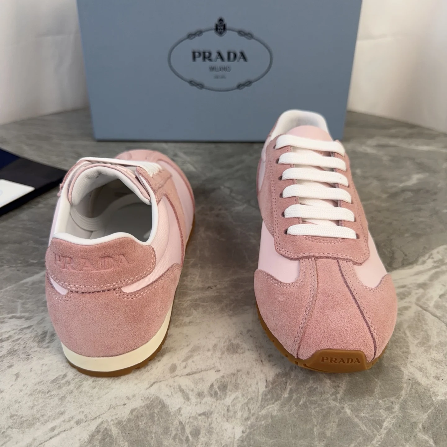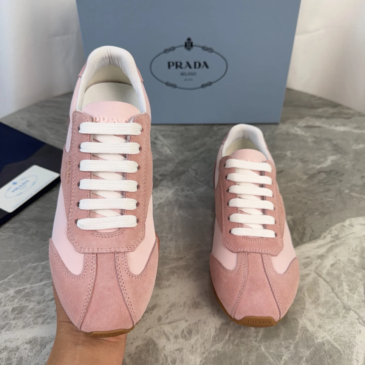 Prada High-top silk-like cow suede training shoes for women casual shoes