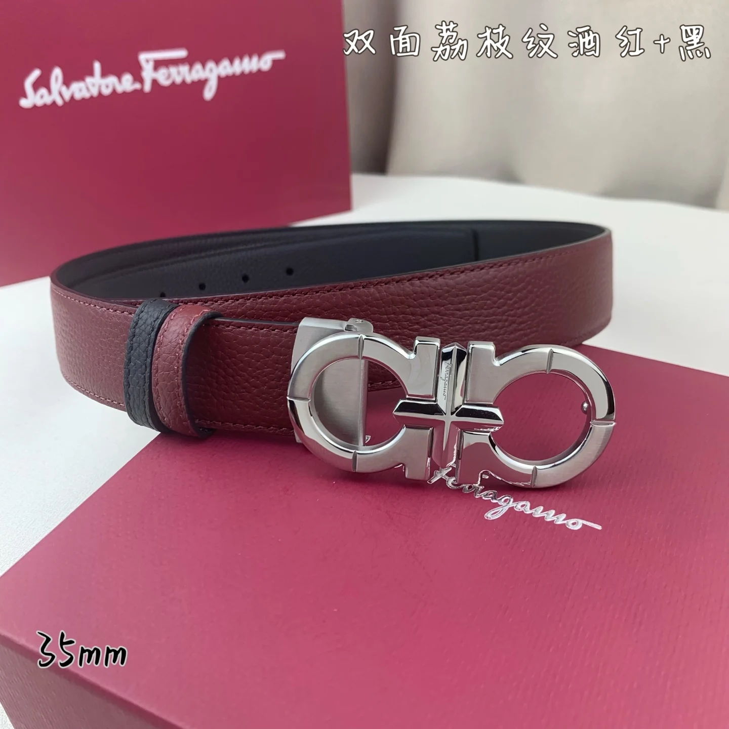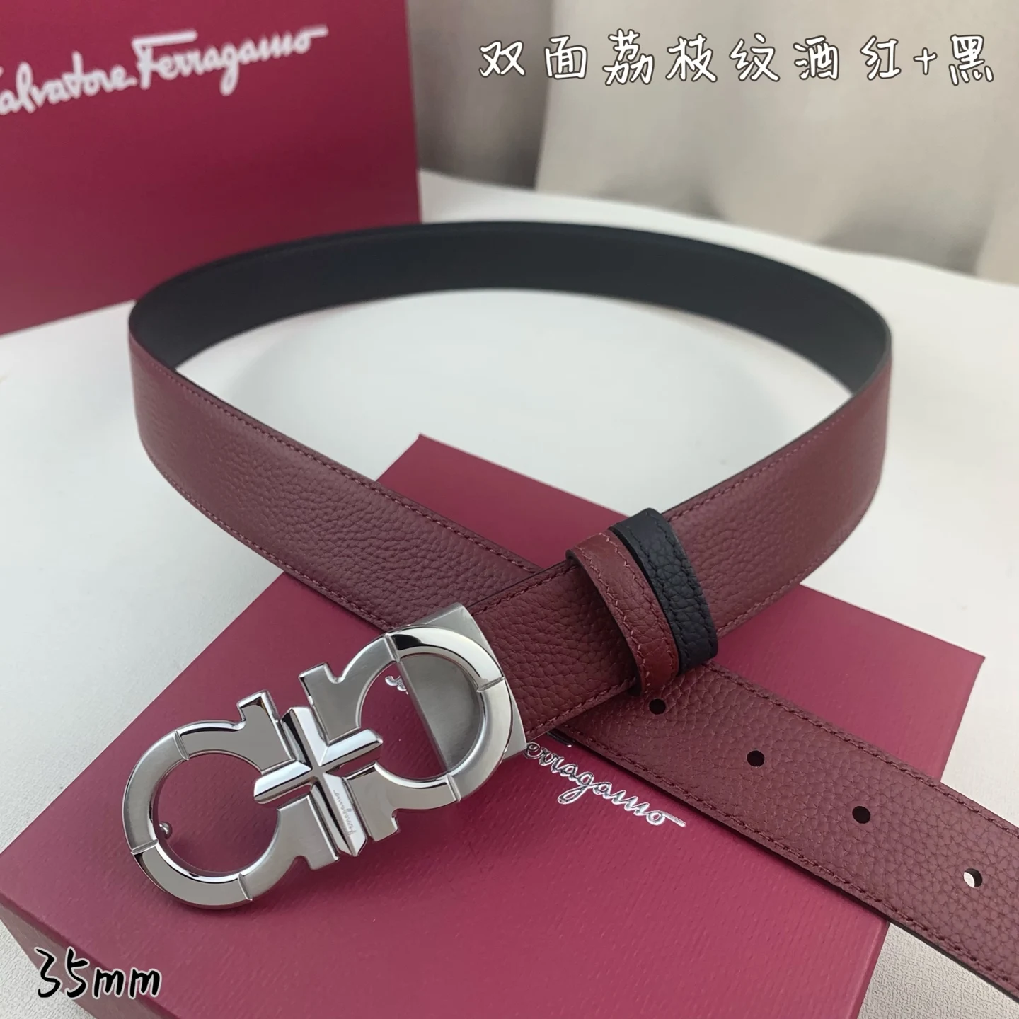 Ferragamo. Complete packaging, width 3.5cm, high-end custom men s belt, double-sided imported cowhide, can be used on both sides, self-selected matching, made of genuine materials..