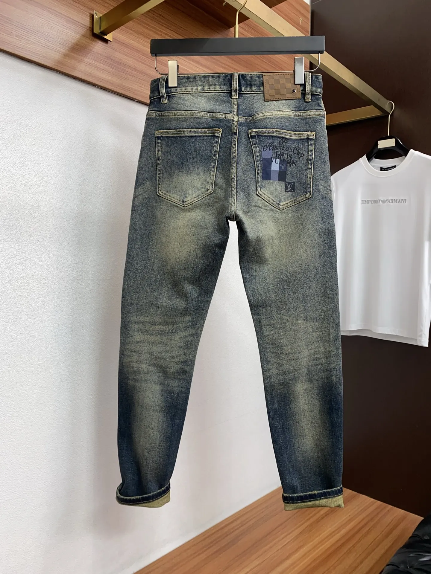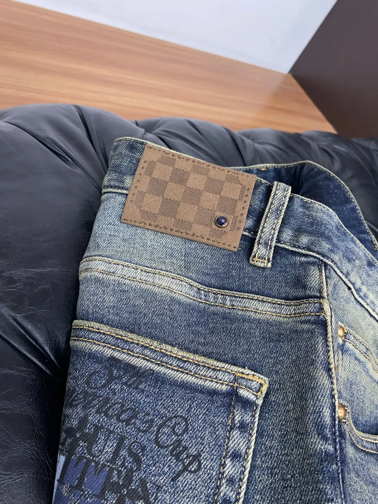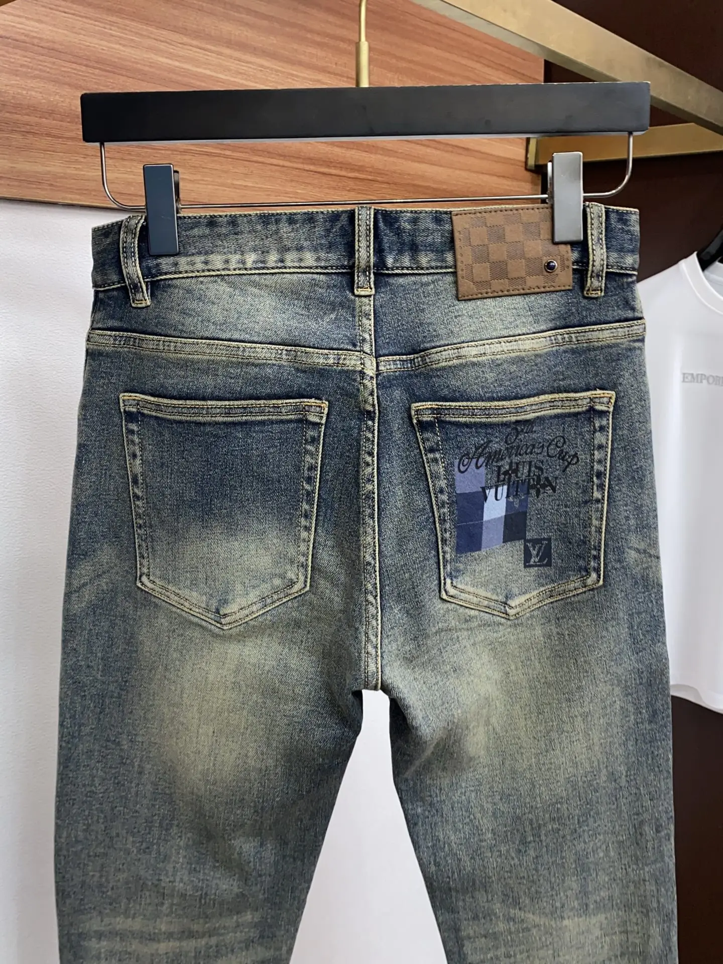 1v Louis Vuitton 26 new model market exclusive custom imported denim fabric rare fabric super comfortable complex craftsmanship four-season jeans knitted cowhide vintage exclusive custom Japanese original single high-quality products only large-scale washing workers can produce finished products slim fit small straight leg pants sizes 28-38