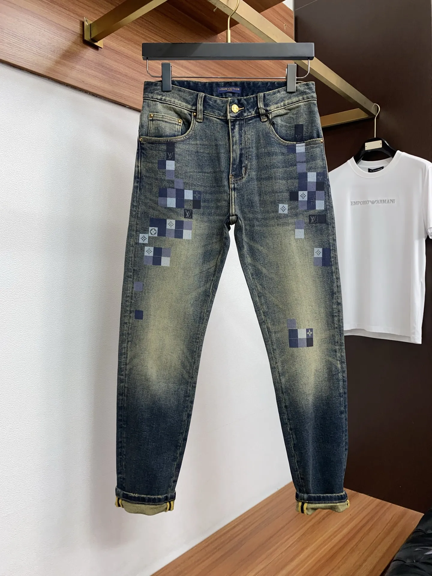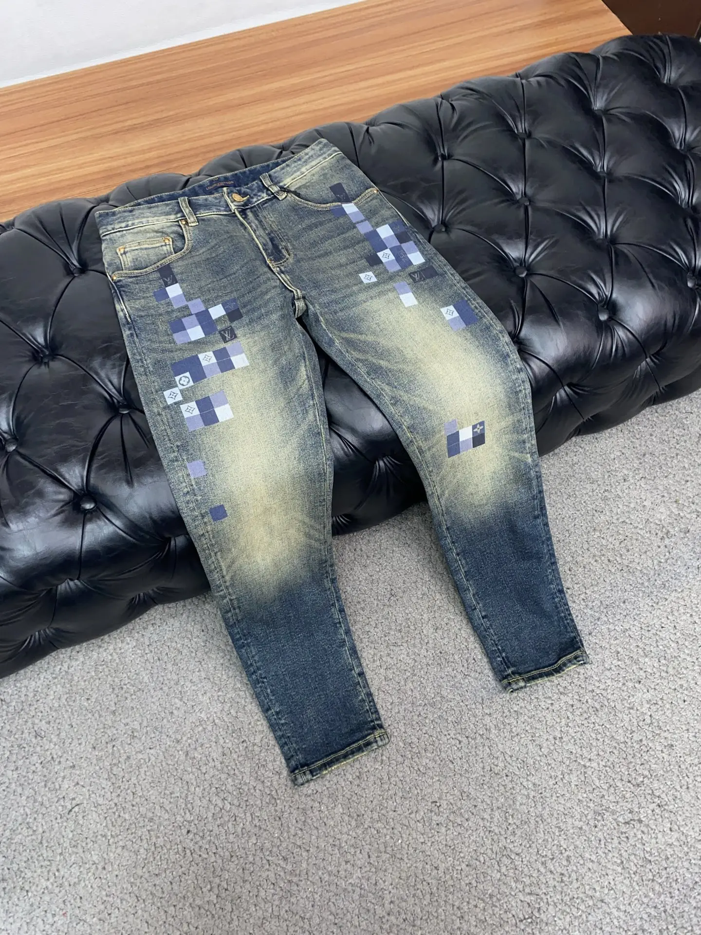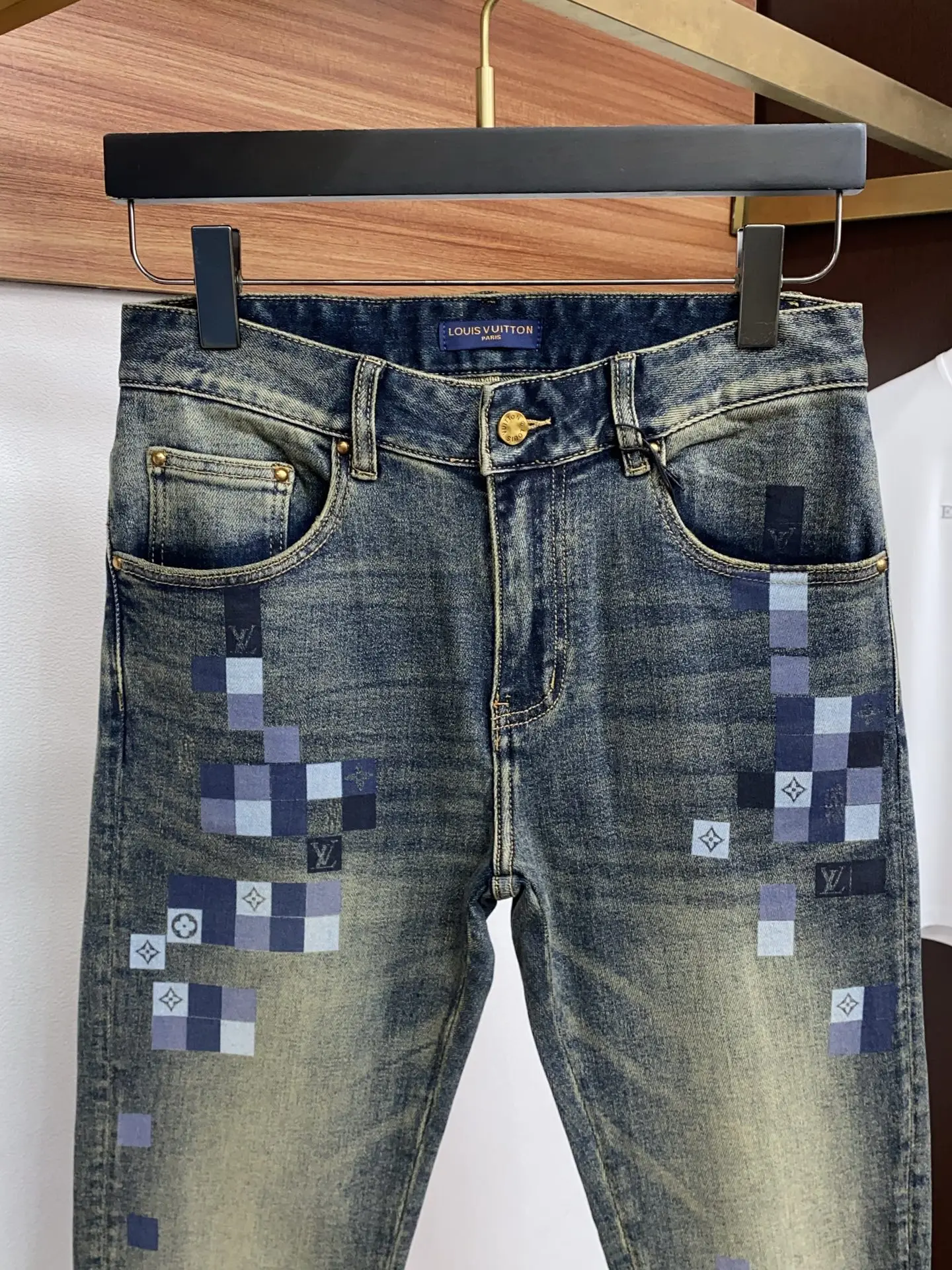 1v Louis Vuitton 26 new model market exclusive custom imported denim fabric rare fabric super comfortable complex craftsmanship four-season jeans knitted cowhide vintage exclusive custom Japanese original single high-quality products only large-scale washing workers can produce finished products slim fit small straight leg pants sizes 28-38