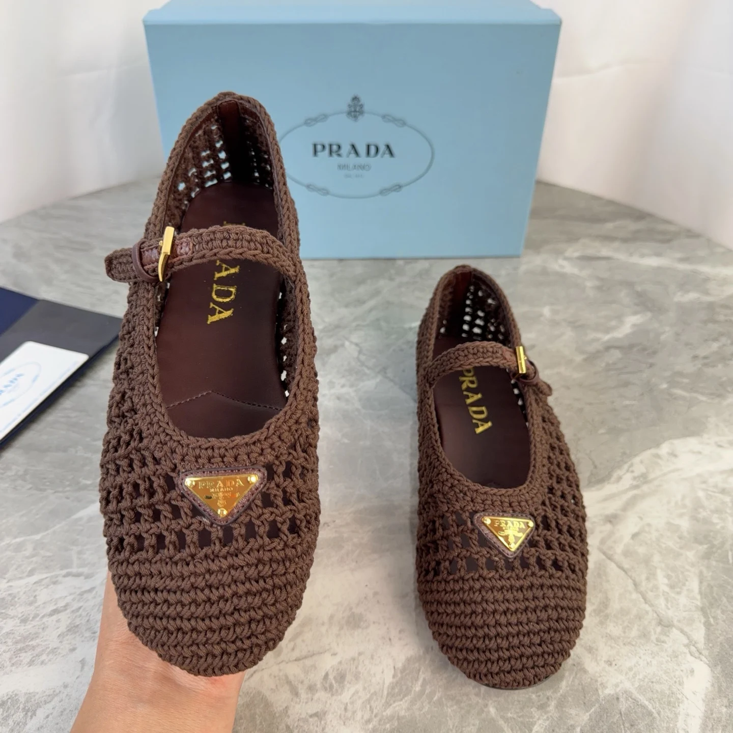 Prada Imported yarn knitted flat shoes women s casual shoes