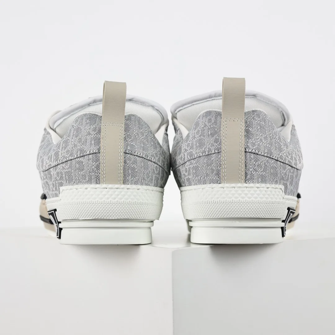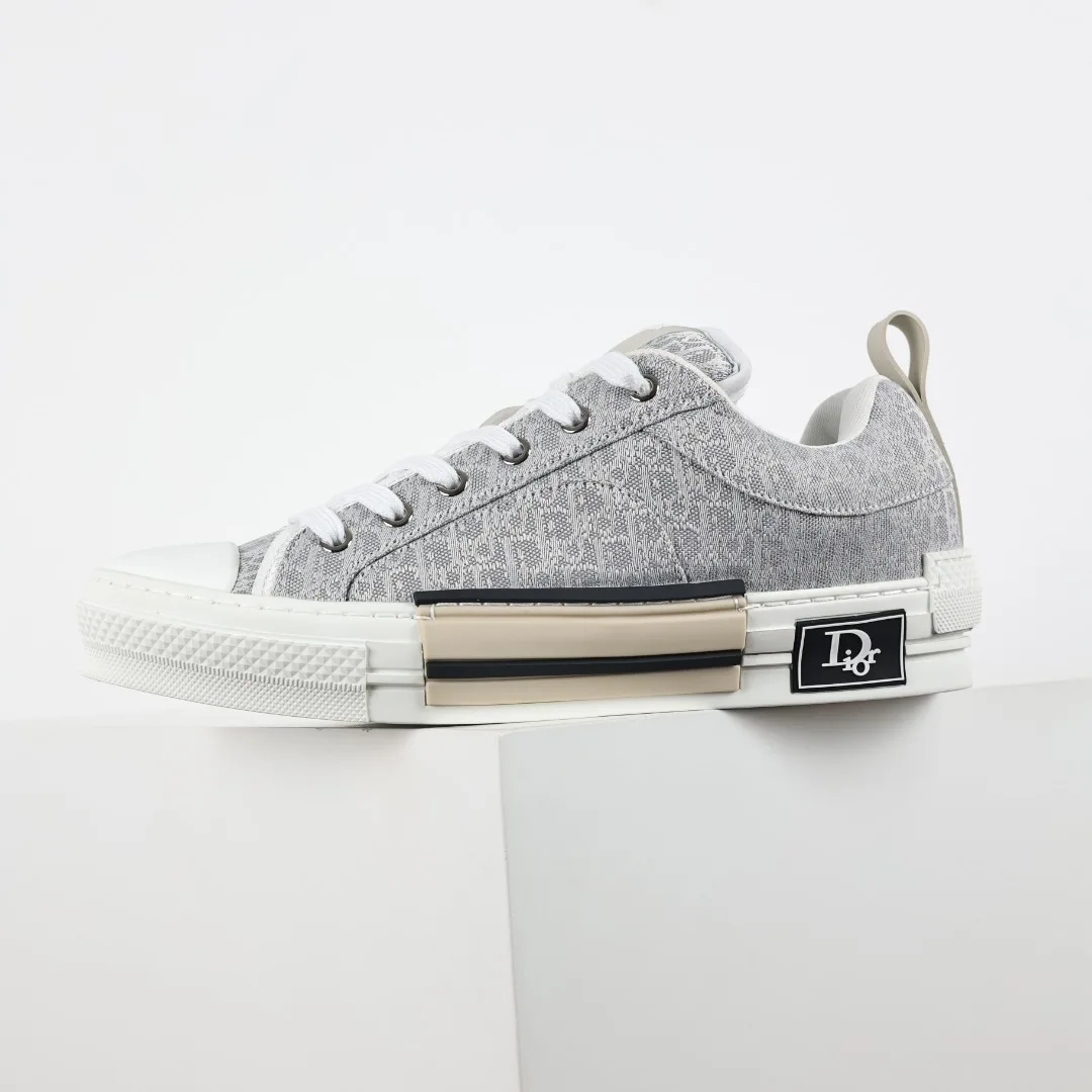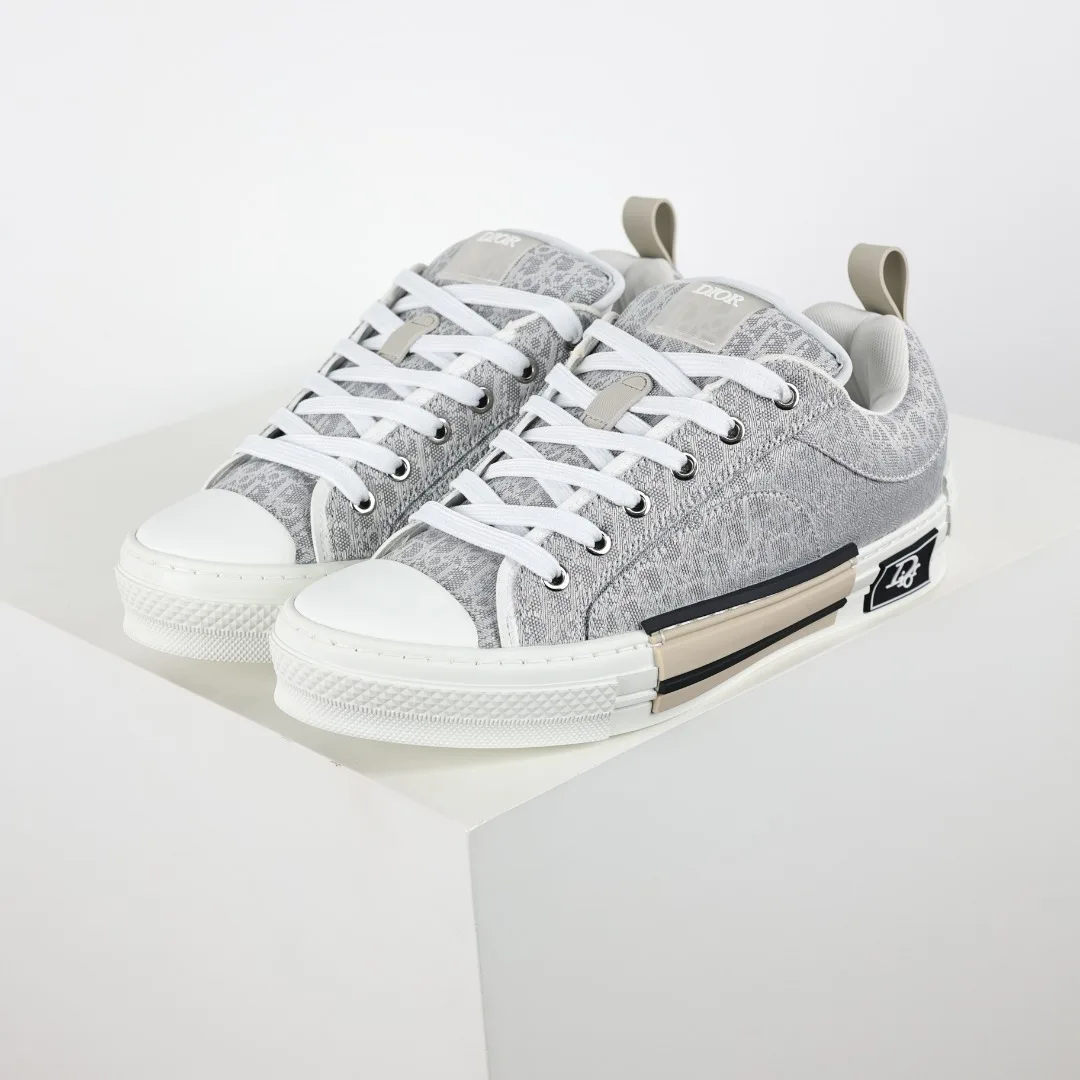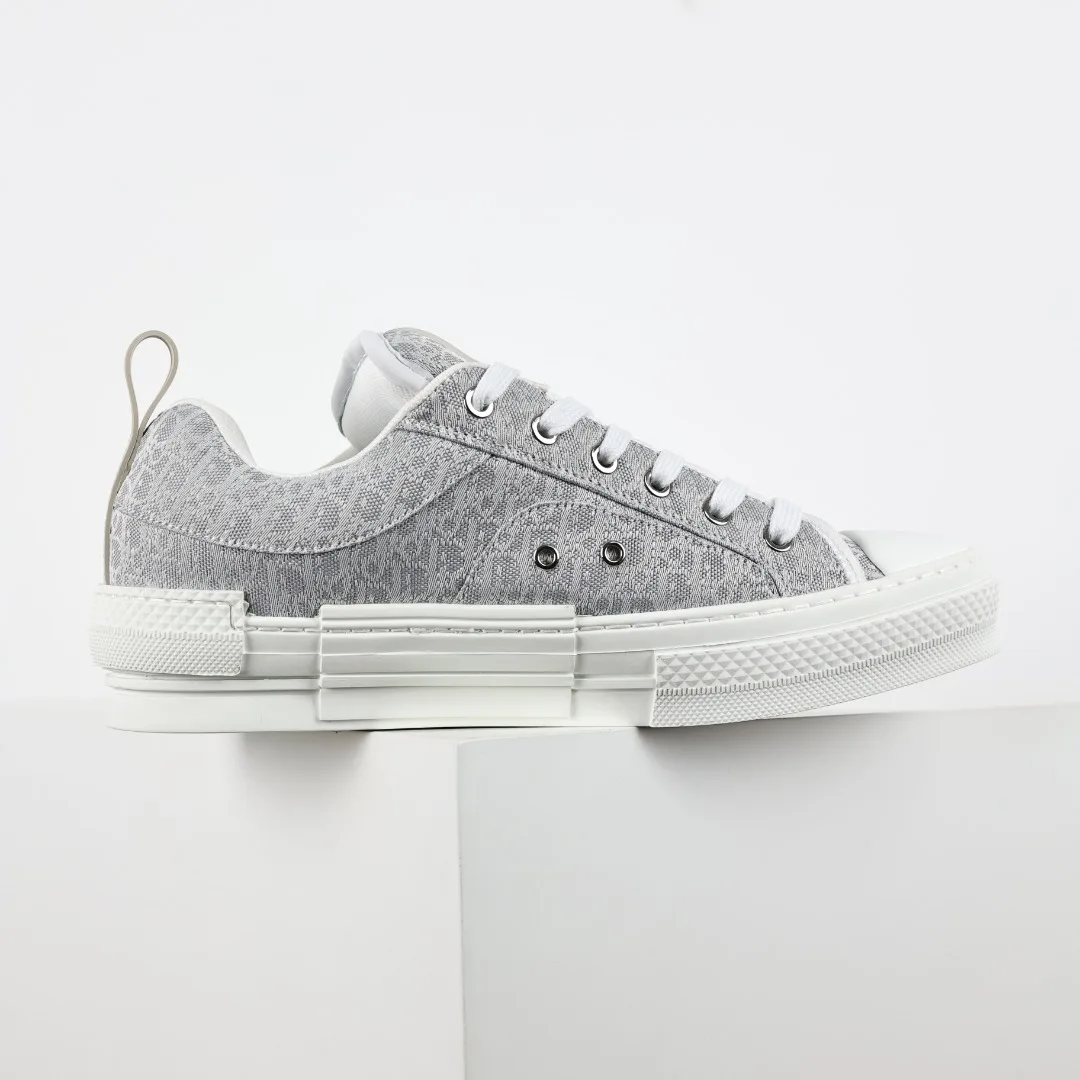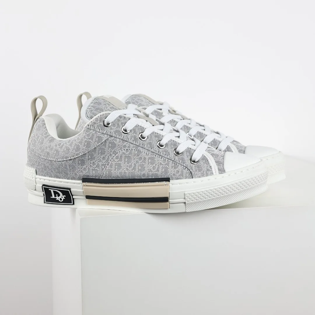 Dior B23 Oblique jacquard fabric loafers in gray and white, highlighting a robust silhouette and fashionable charm. Sizes: 39 40 41 42 43 44 45 46