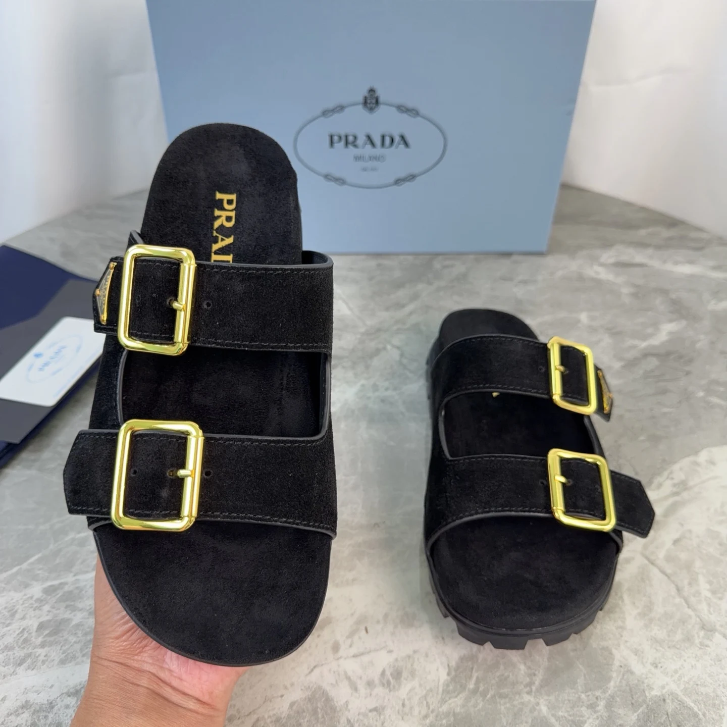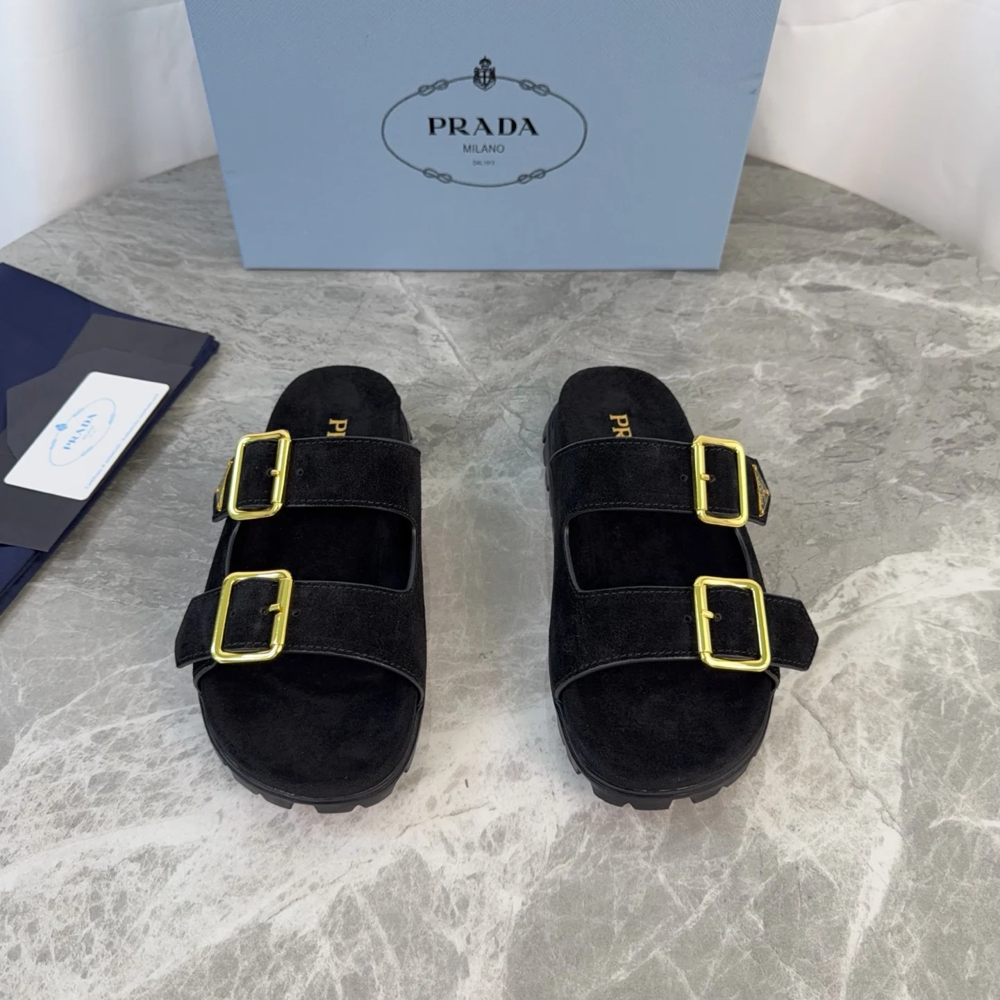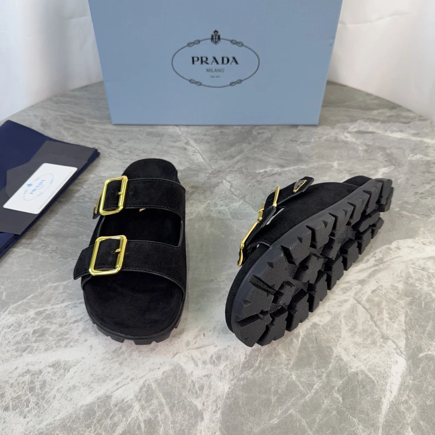 Prada Kosei Glossy Cow Suede Slippers Women s Slippers
