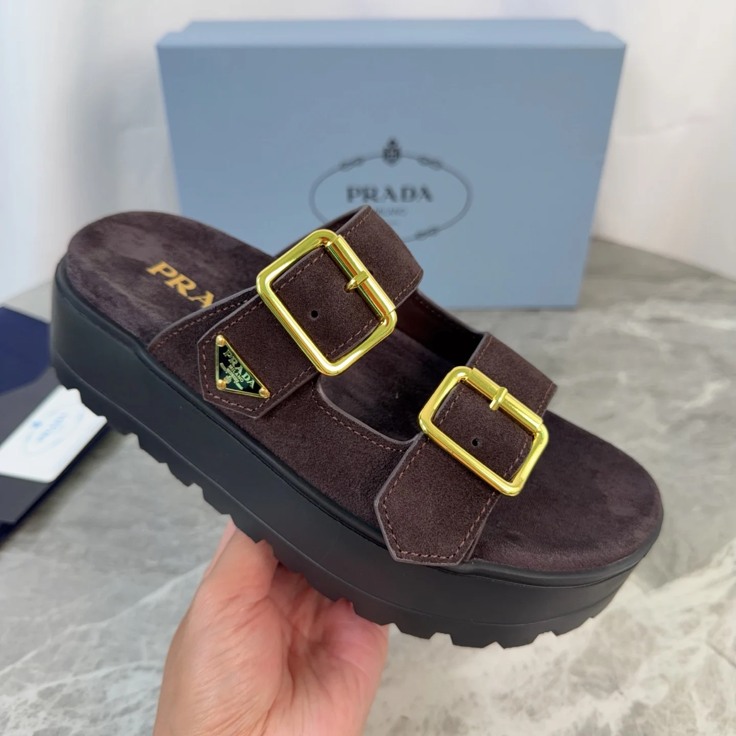 330Latest model from PUpper: High-gloss cow suedeLining: Imported cowhideSole: Ultra-soft foam outsole (sole thickness 4.5cm, platform height 1cm)Signature triangular logo, size: 3..