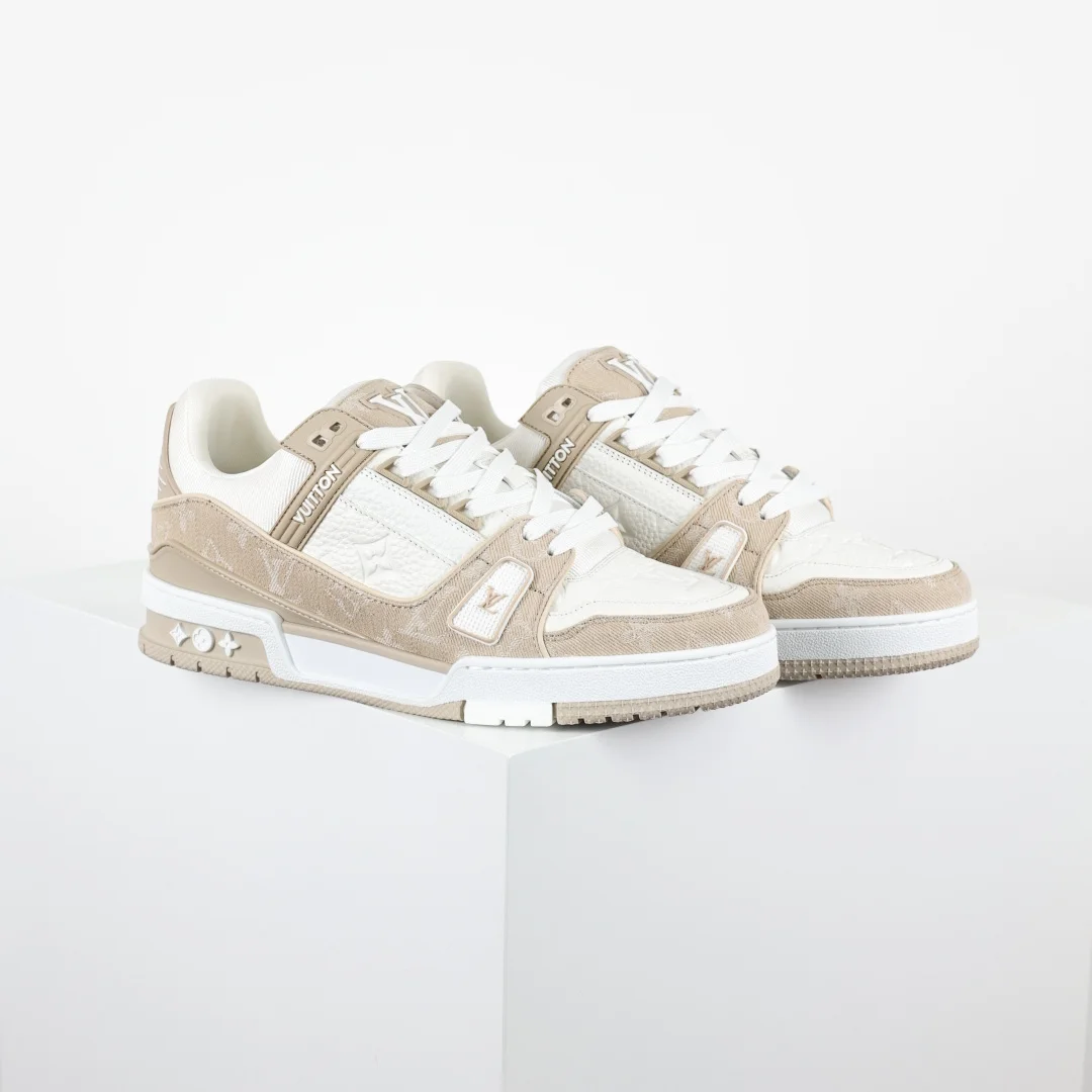Lv Trainer X1 Max Version High Luxury Classic Peak Apricot Denim