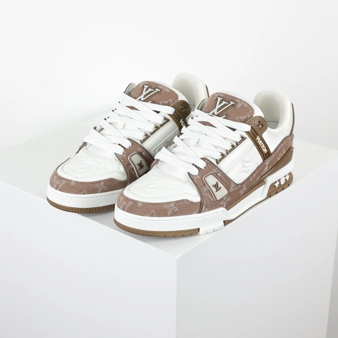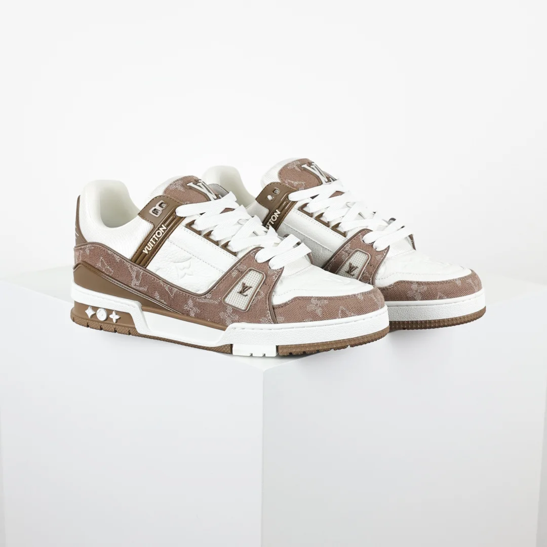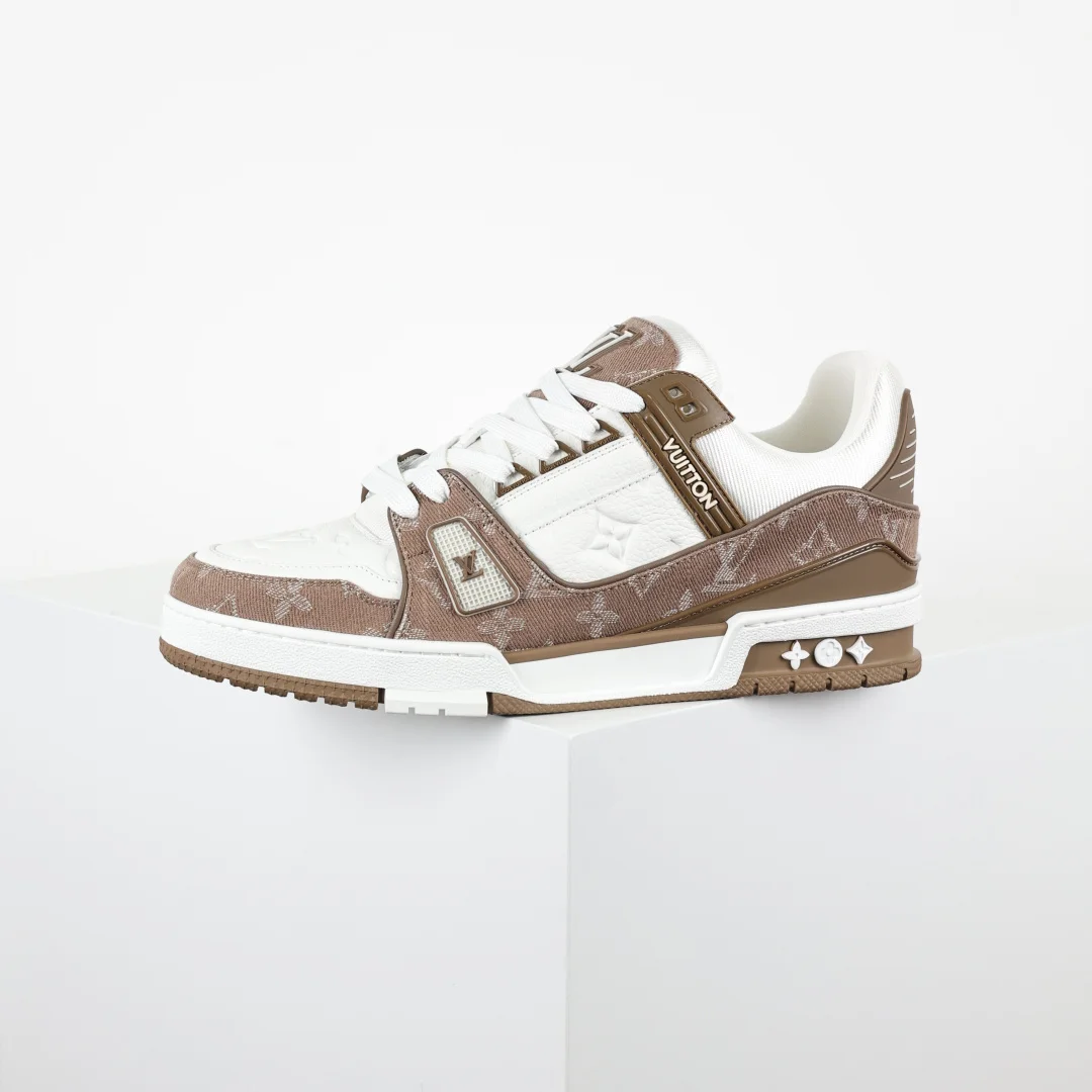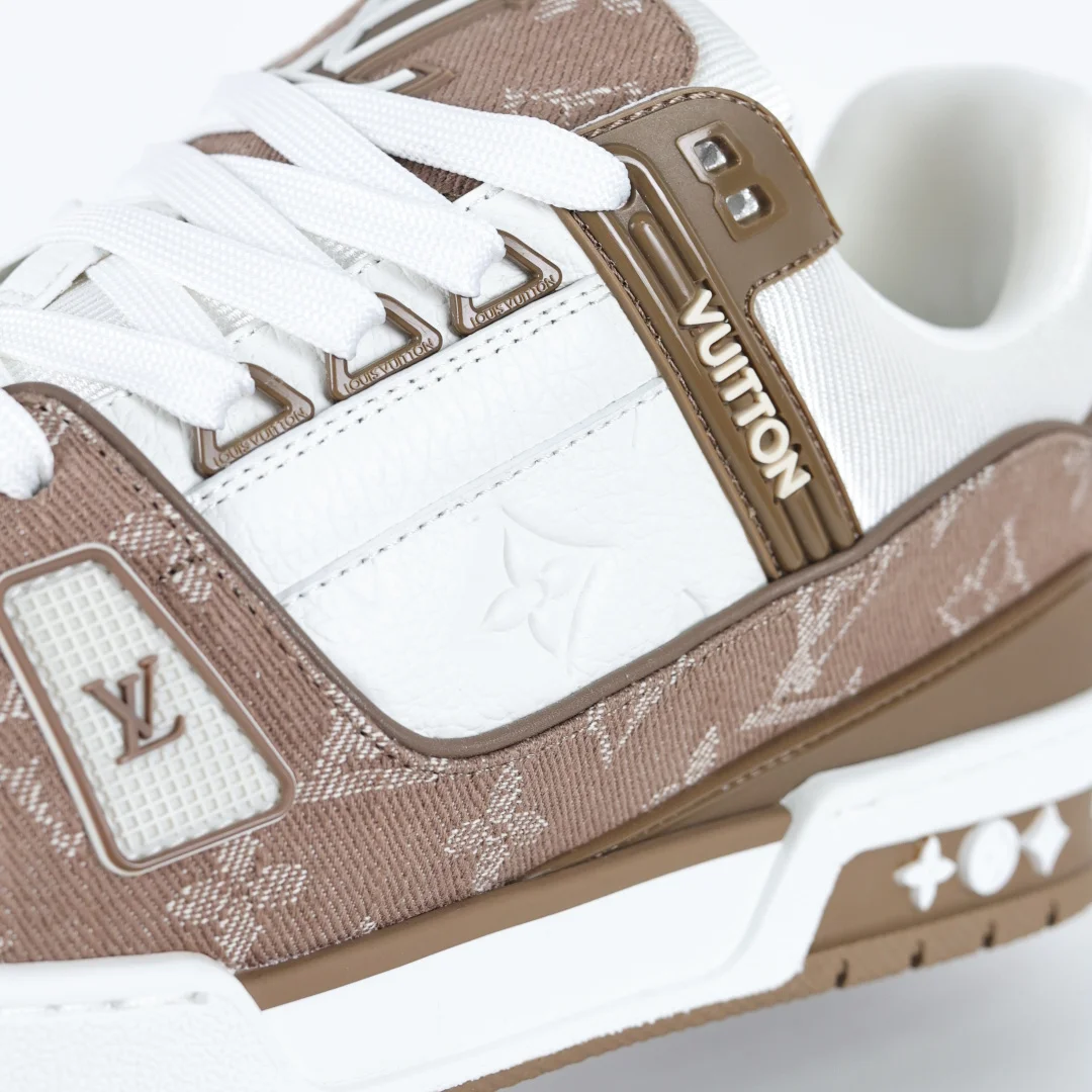 Lv Trainer X1 Max Version High Luxury Classic Peak Brown DenimDongguan Pure Original Top High-End Replica Bigfoot Ghost Overseas Warehouse High Order Version Exclusive Half Size Ex..