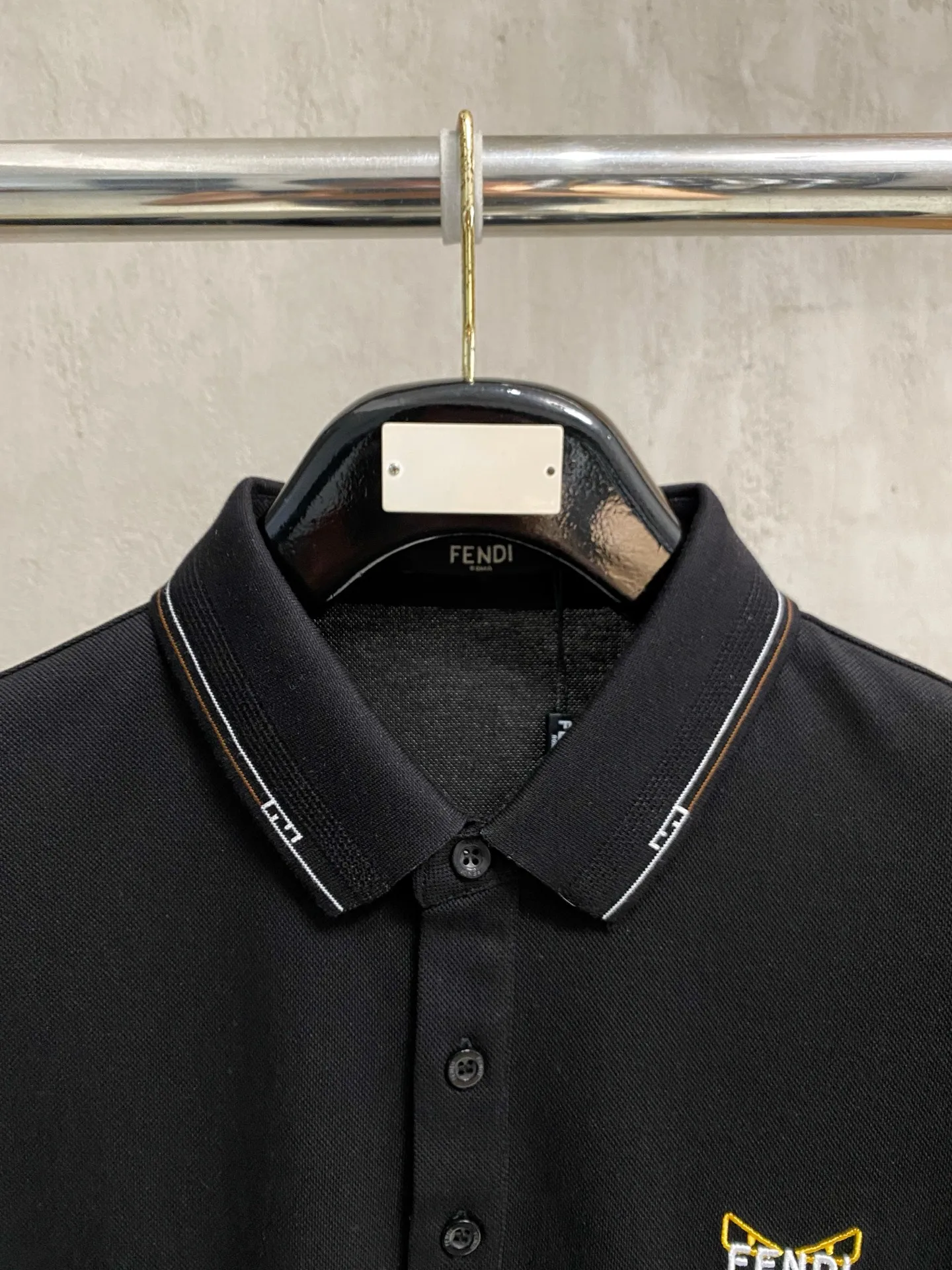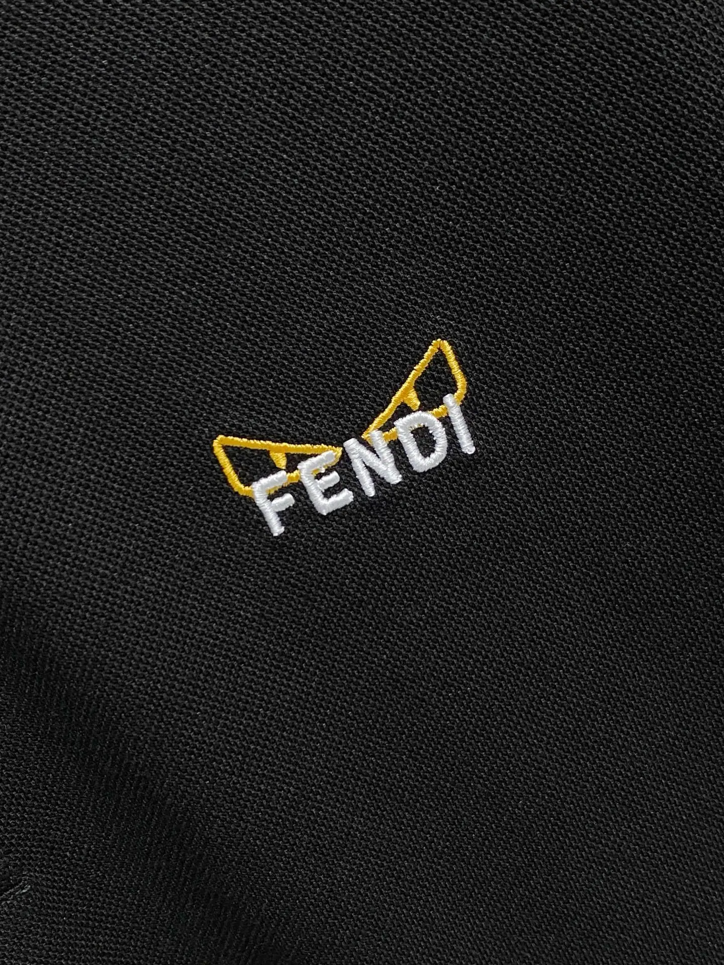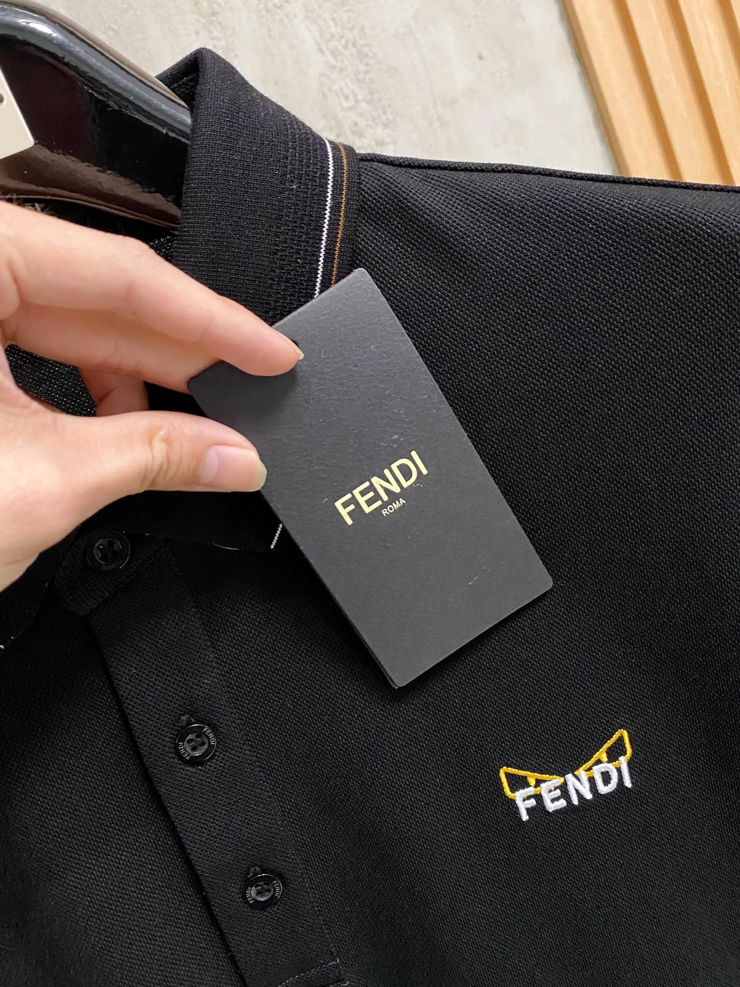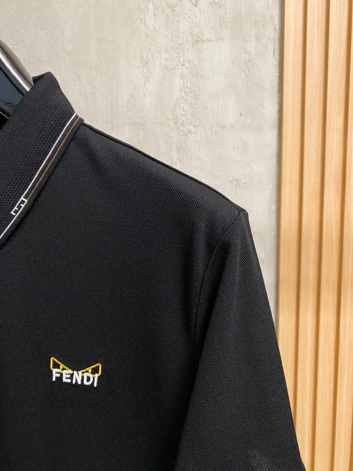 FENDI Spring/Summer 2026 latest, the newest men s short-sleeve polo shirt on the official website, made from high-end custom imported pique cotton fabric for comfortable wear, featuring embroidered small eyes on the chest, logo design on the buttons, and a versatile business casual style that perfectly combines fashion and leisure! A must-have item for trendy men, looking sharp when worn.