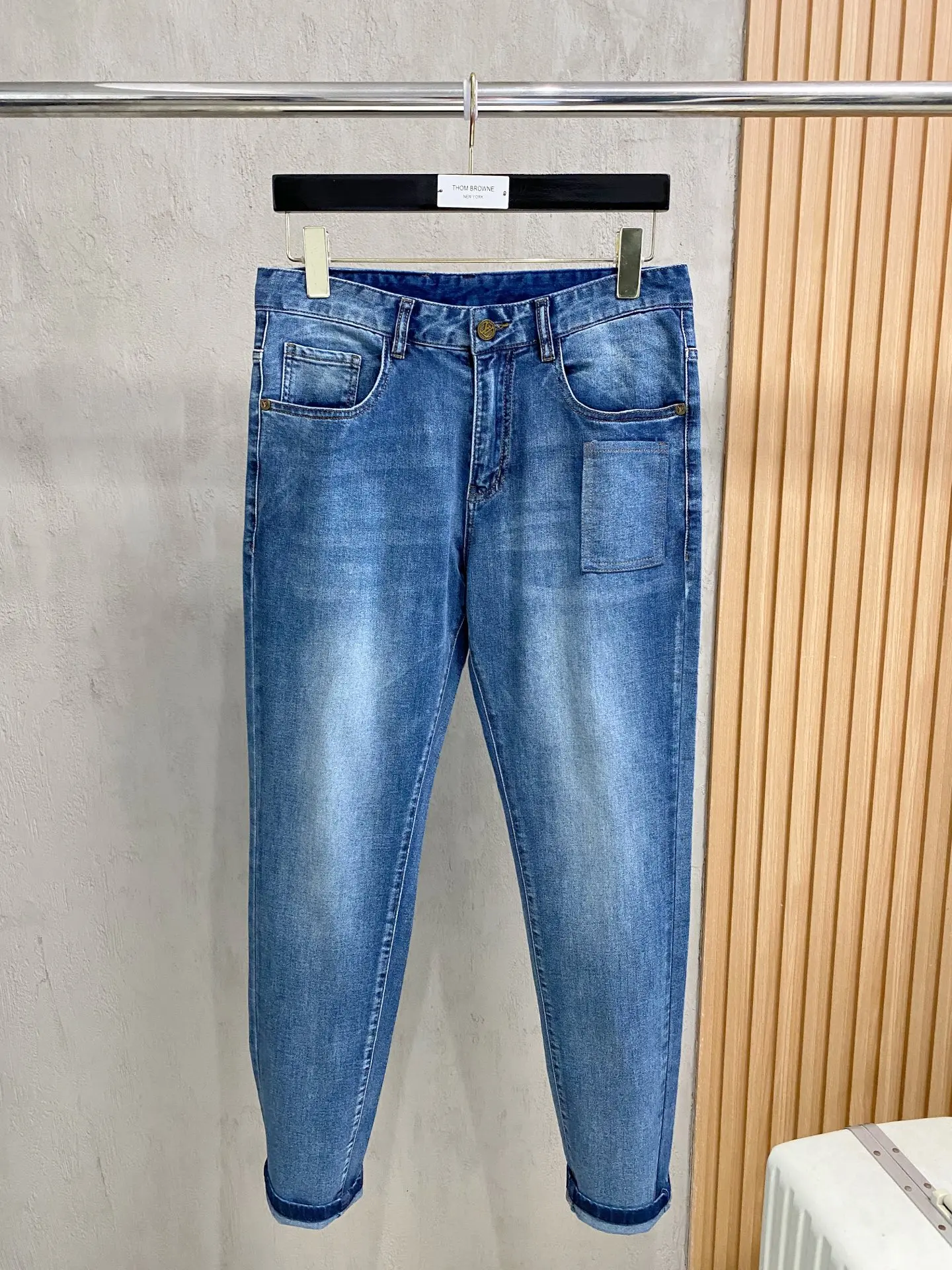 Latest style jeans available for sale at the counter, made from imported colorfast fabric, original custom replica, client-supplied hardware accessories, original quality, heavily..
