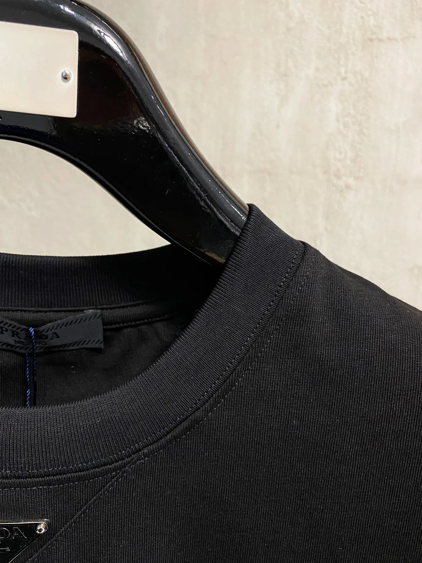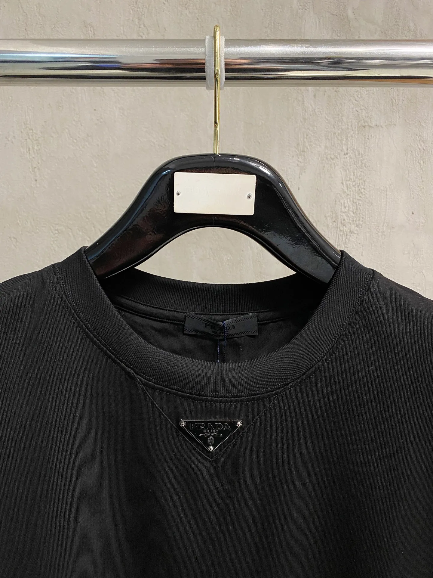 Prada 26ss spring/summer new classic logo enamel metal triangle logo short-sleeve T-shirt features the brand s iconic triangular metal logo on the front chest, providing high recognition. It is a timeless piece, extremely versatile, comfortable, breathable, soft, delicate, and slightly stretchy, made from high-quality fabric;