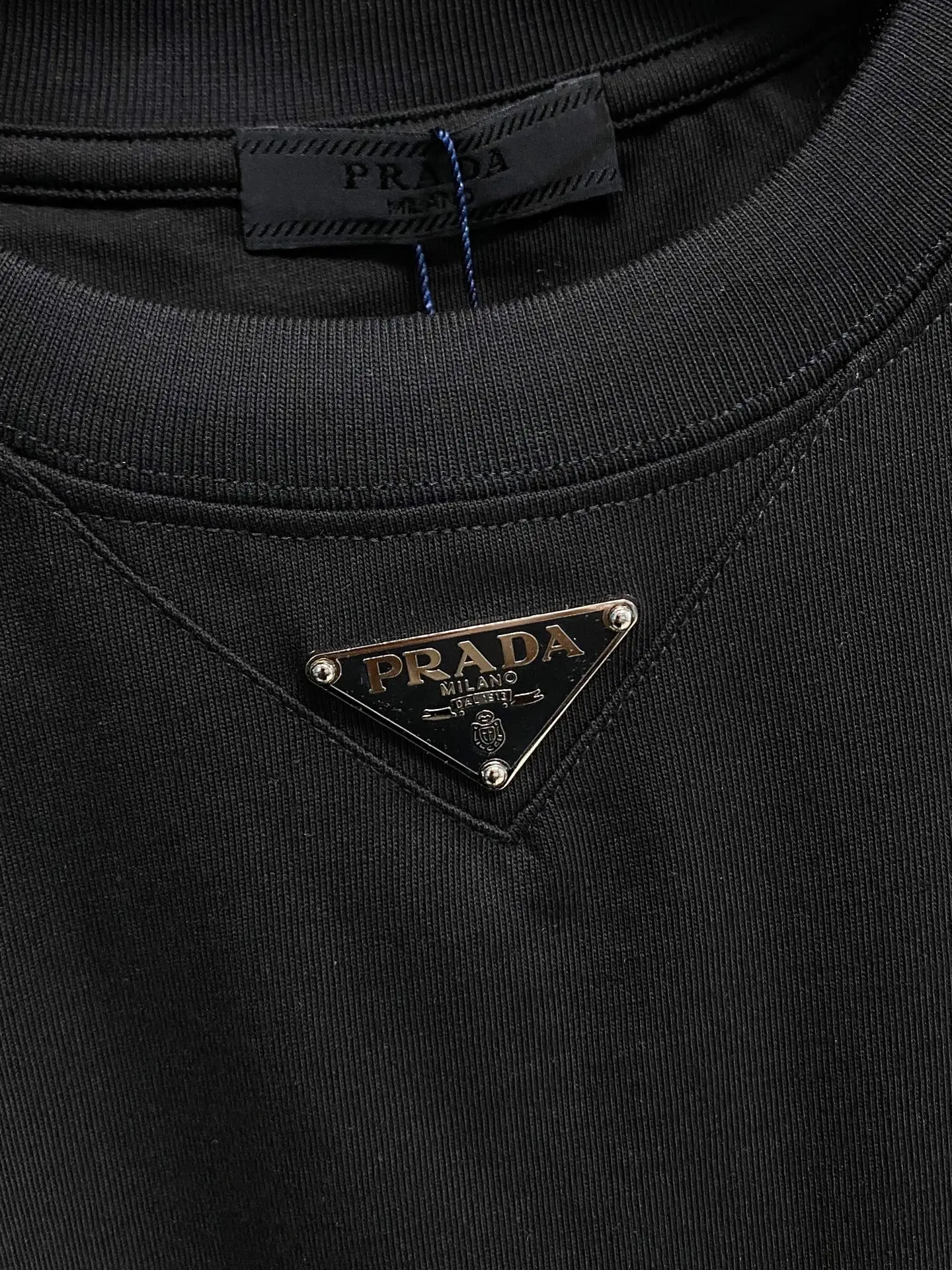 Prada 26ss spring/summer new classic logo enamel metal triangle logo short-sleeve T-shirt features the brand s iconic triangular metal logo on the front chest, providing high recog..