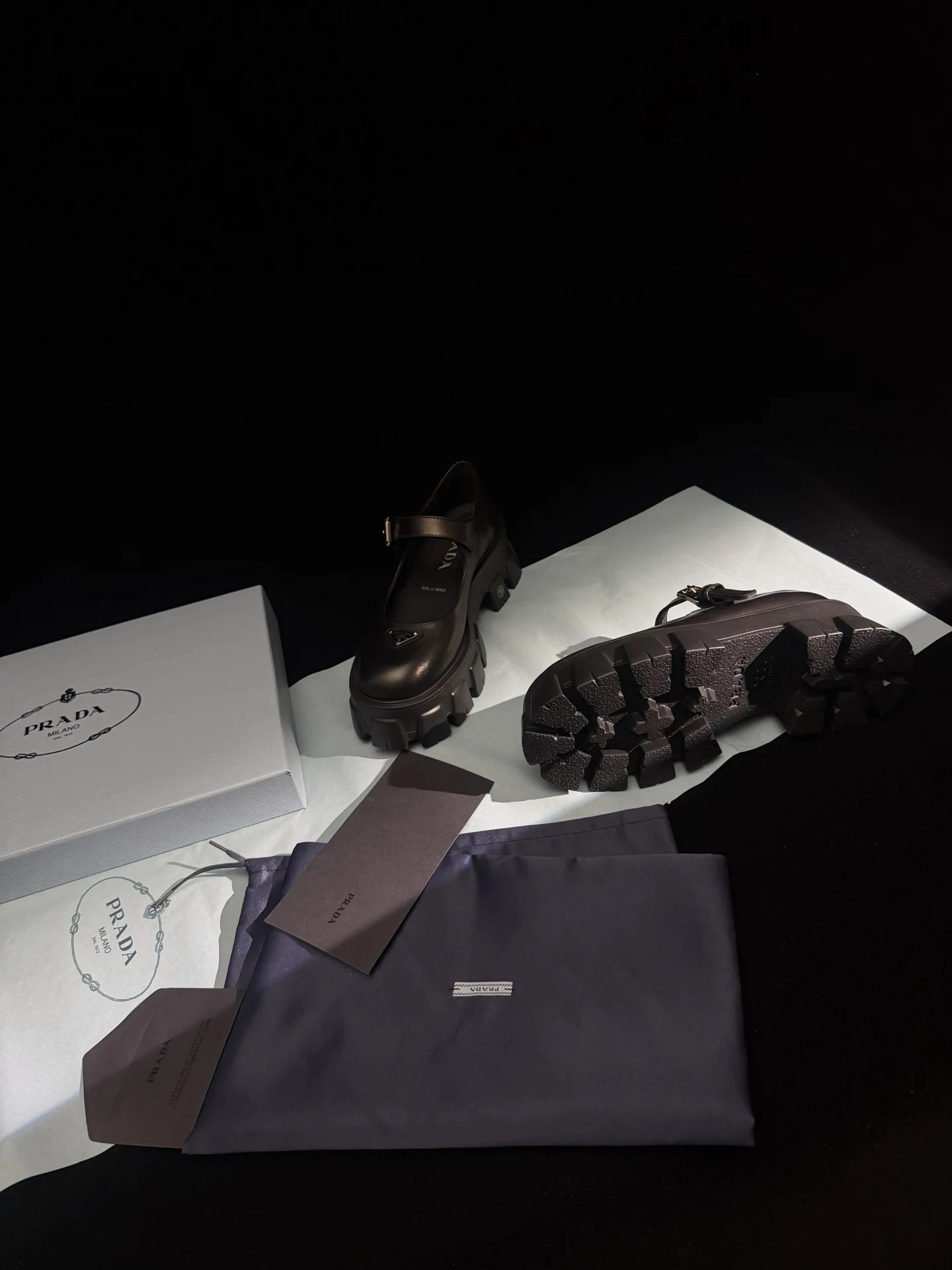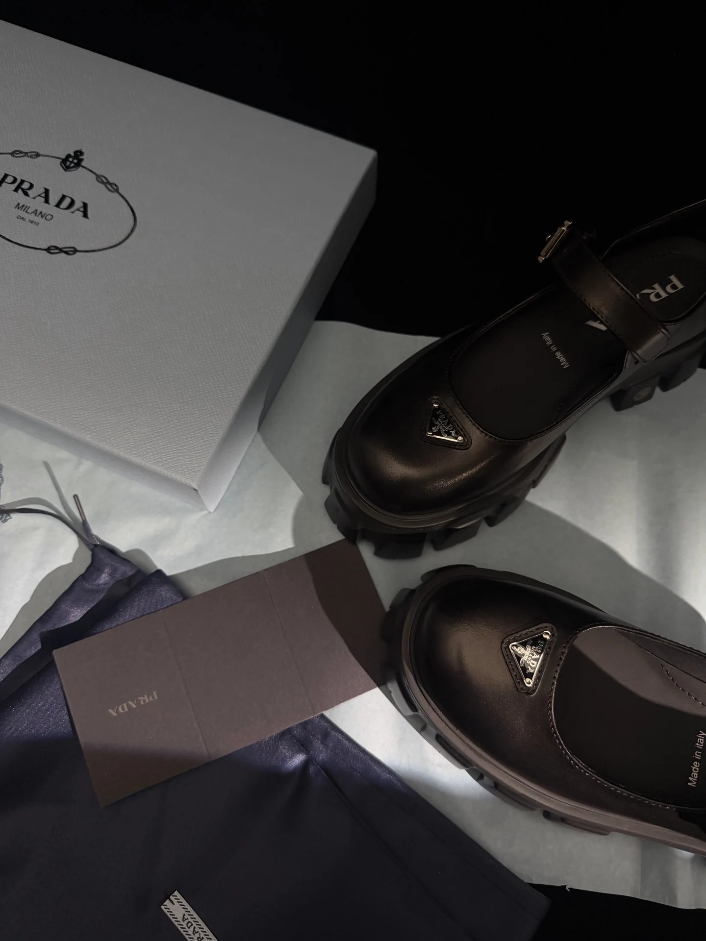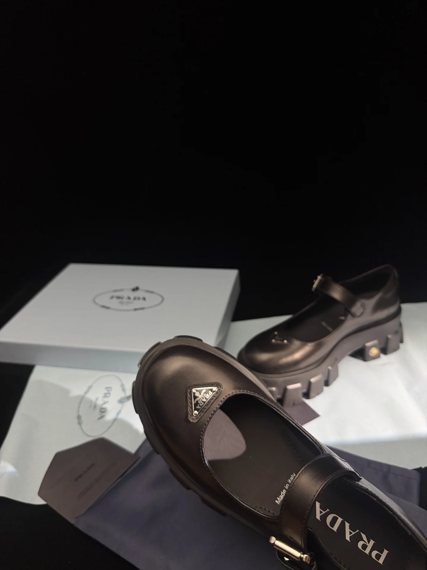 𝐏𝐑𝐀𝐃𝐀 New Thick-soled Mary Jane Shoes / Black Calfskin