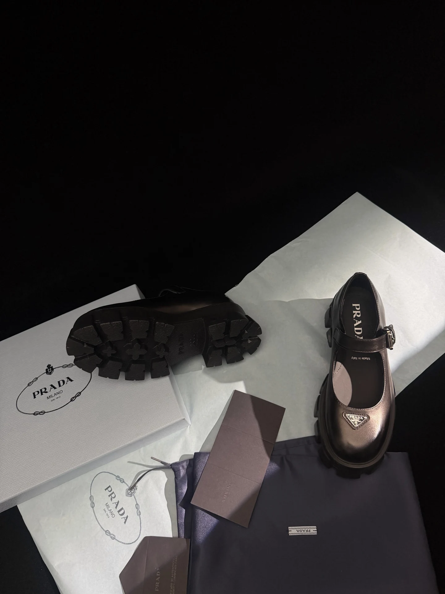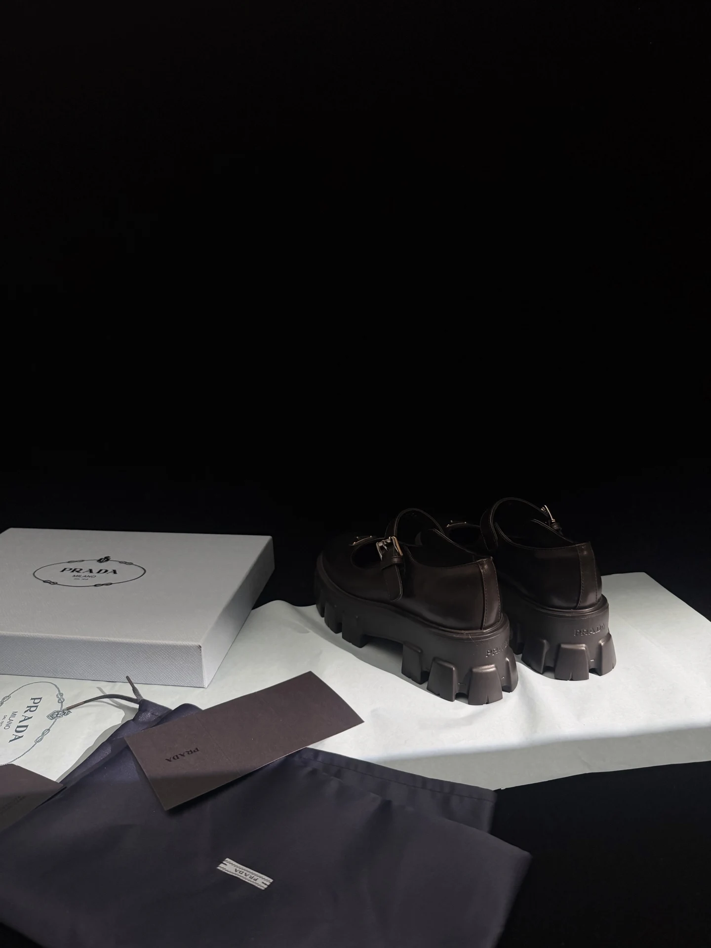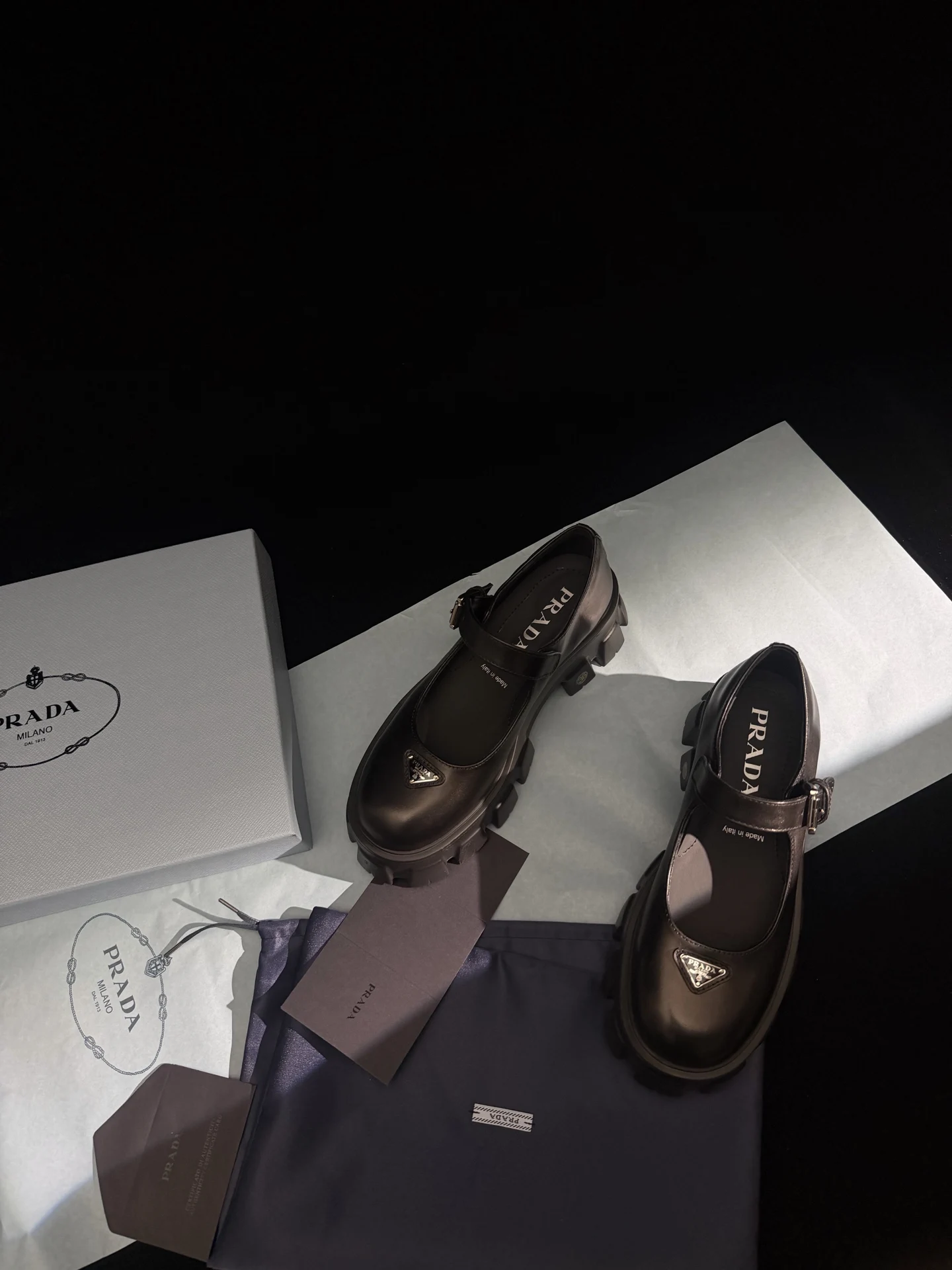 𝐏𝐑𝐀𝐃𝐀 New Thick-soled Mary Jane Shoes / Black Calfskin