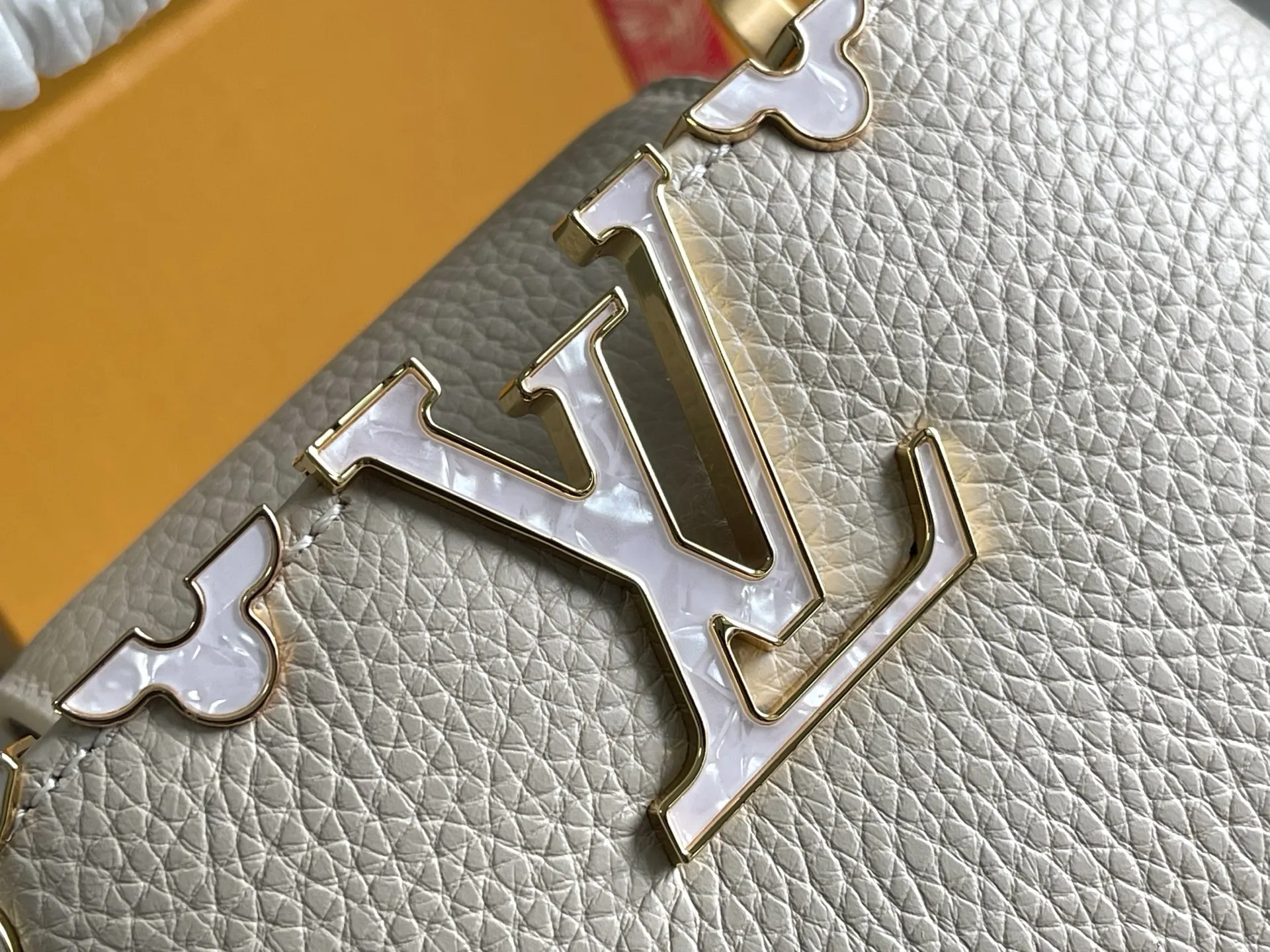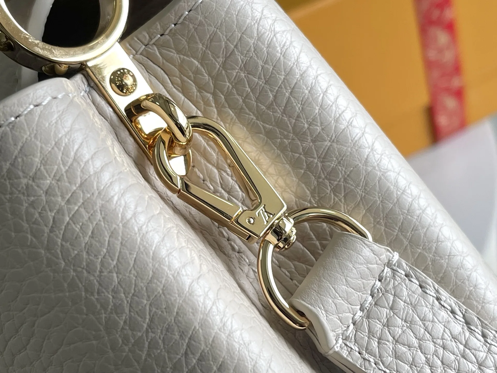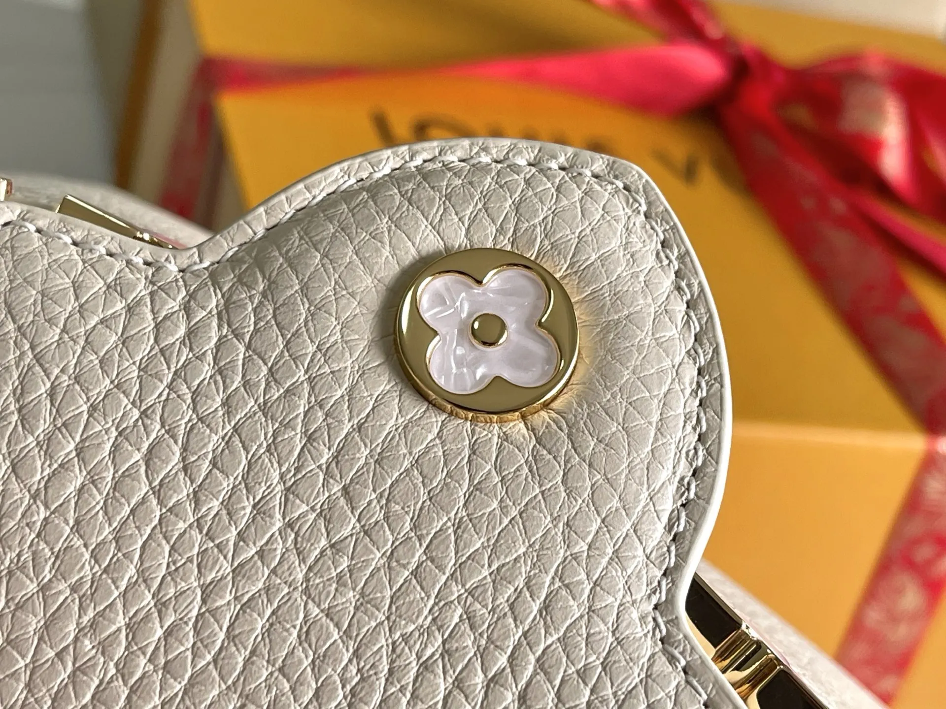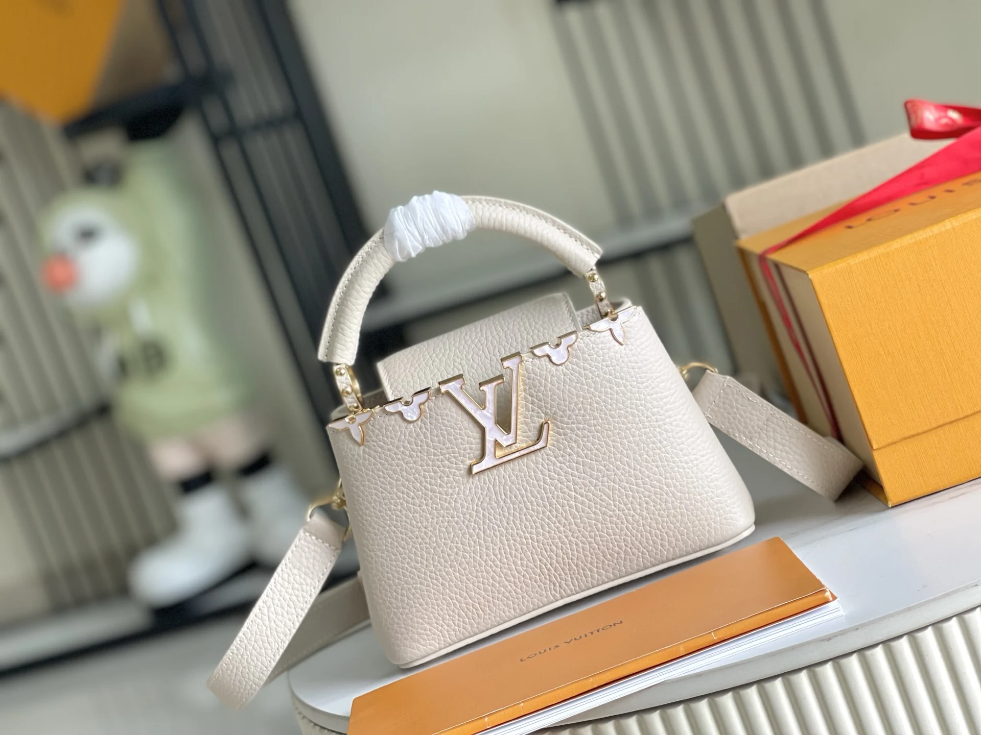 (163 chip) New version Premium original leather M11341 mini off-white Capucines with gold crown buckle The Capucines BB handbag tells a new story this season. The exquisite metall..