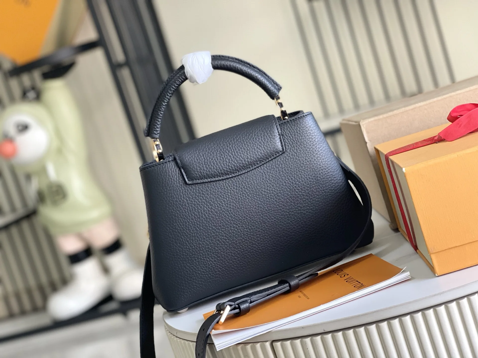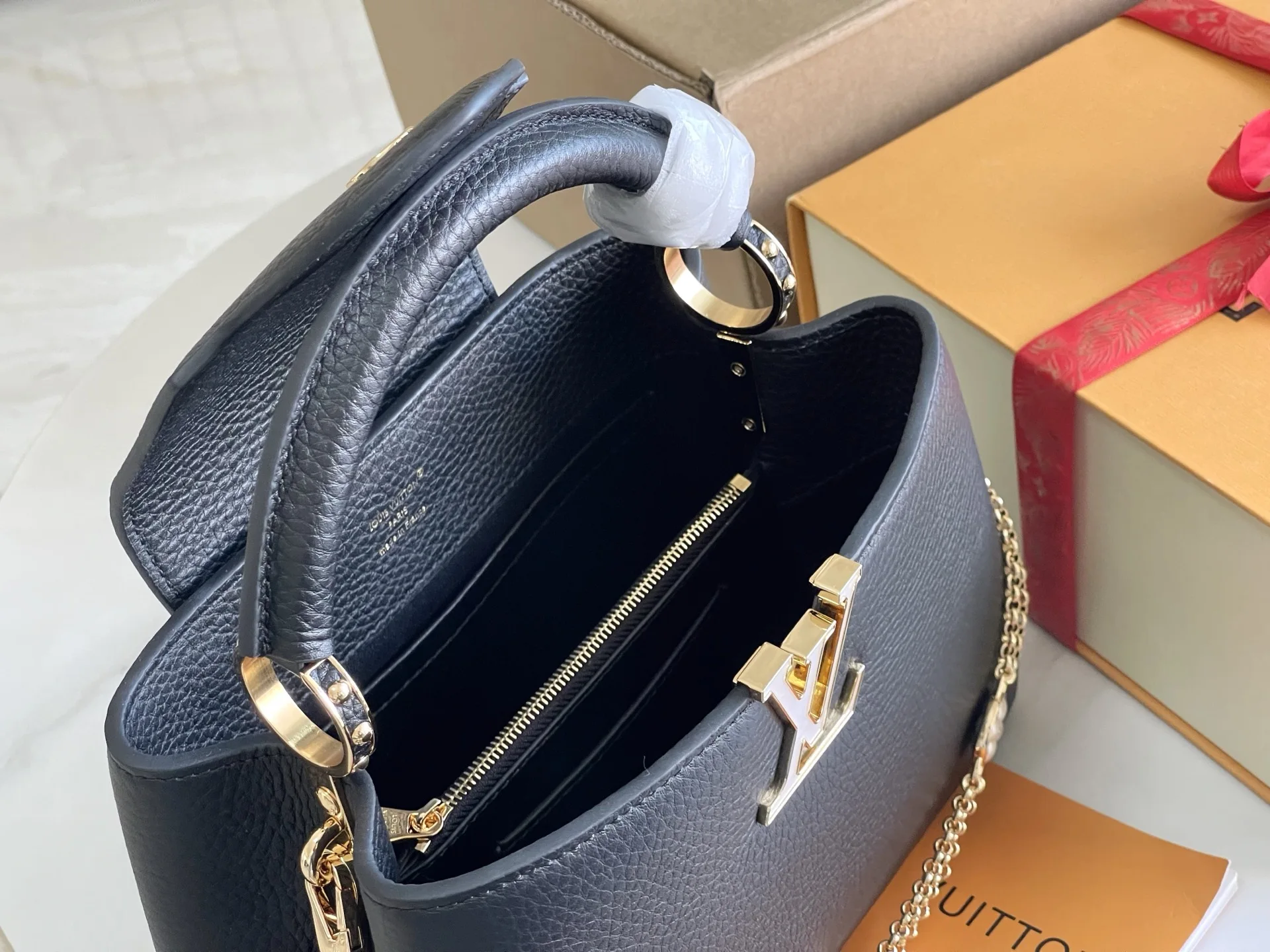 (163 chip) Premium original leather M25461 black small size upgraded hardware This Capucines handbag is made from Taurillon leather, featuring an enamel Monogram flower cluster and..