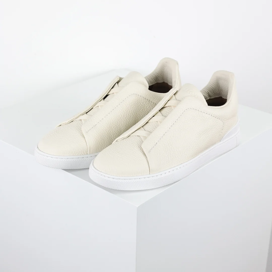 Ermenegildo Zegna Triple Stitch Leather Low-Top Sneakers for Men, Full Litchi Grain/Suede Casual Sneakers, Extremely Popular Overseas, Authentic Price Over 10,000, Specific Sizes Shipped from Abroad with Delivery in 15-30 Days