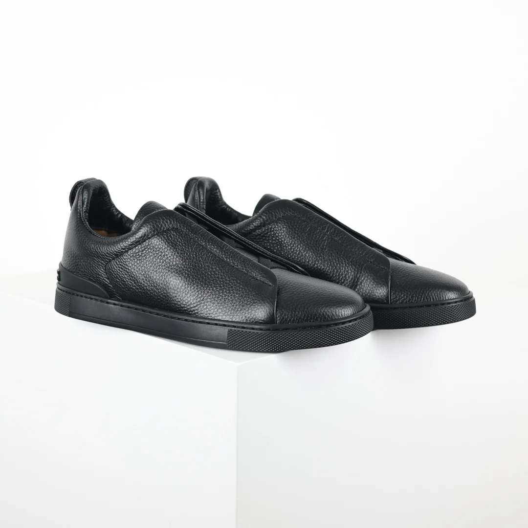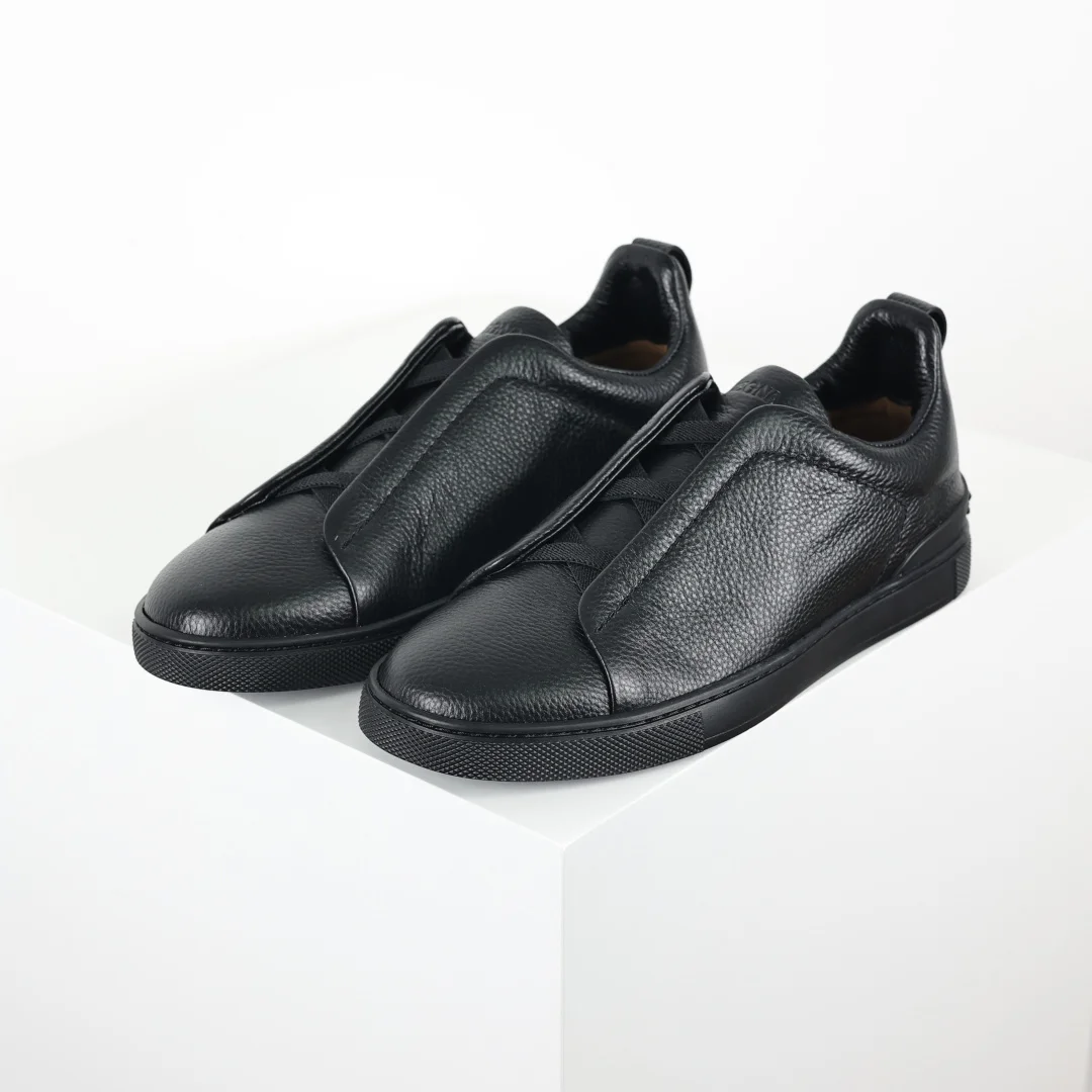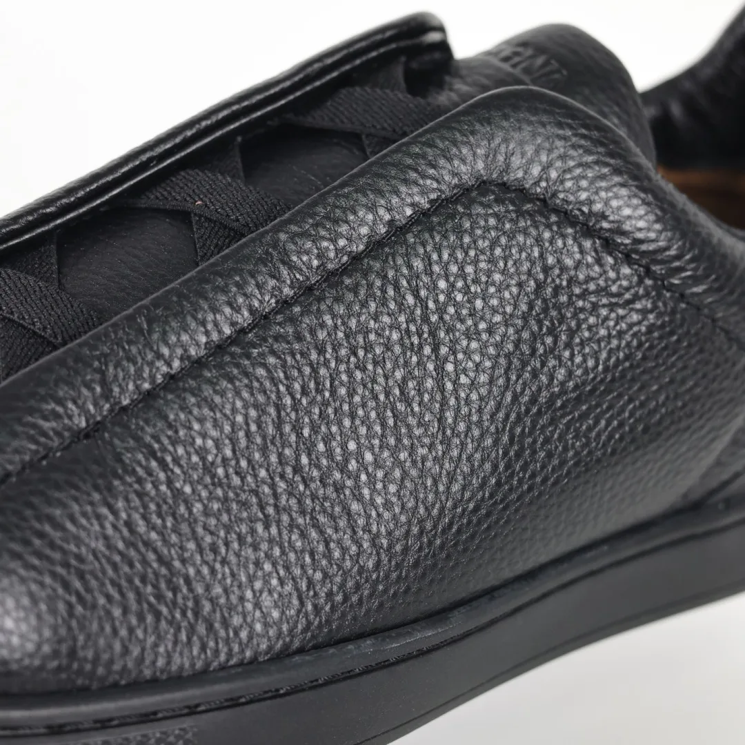 Ermenegildo Zegna Triple Stitch Leather Low-Top Sneakers for Men, Full Litchi Grain/Suede Casual Sneakers, Extremely Popular Overseas, Authentic Price 10,000+; Specific Sizes Shipped from Overseas, Delivery in 15-30 Days