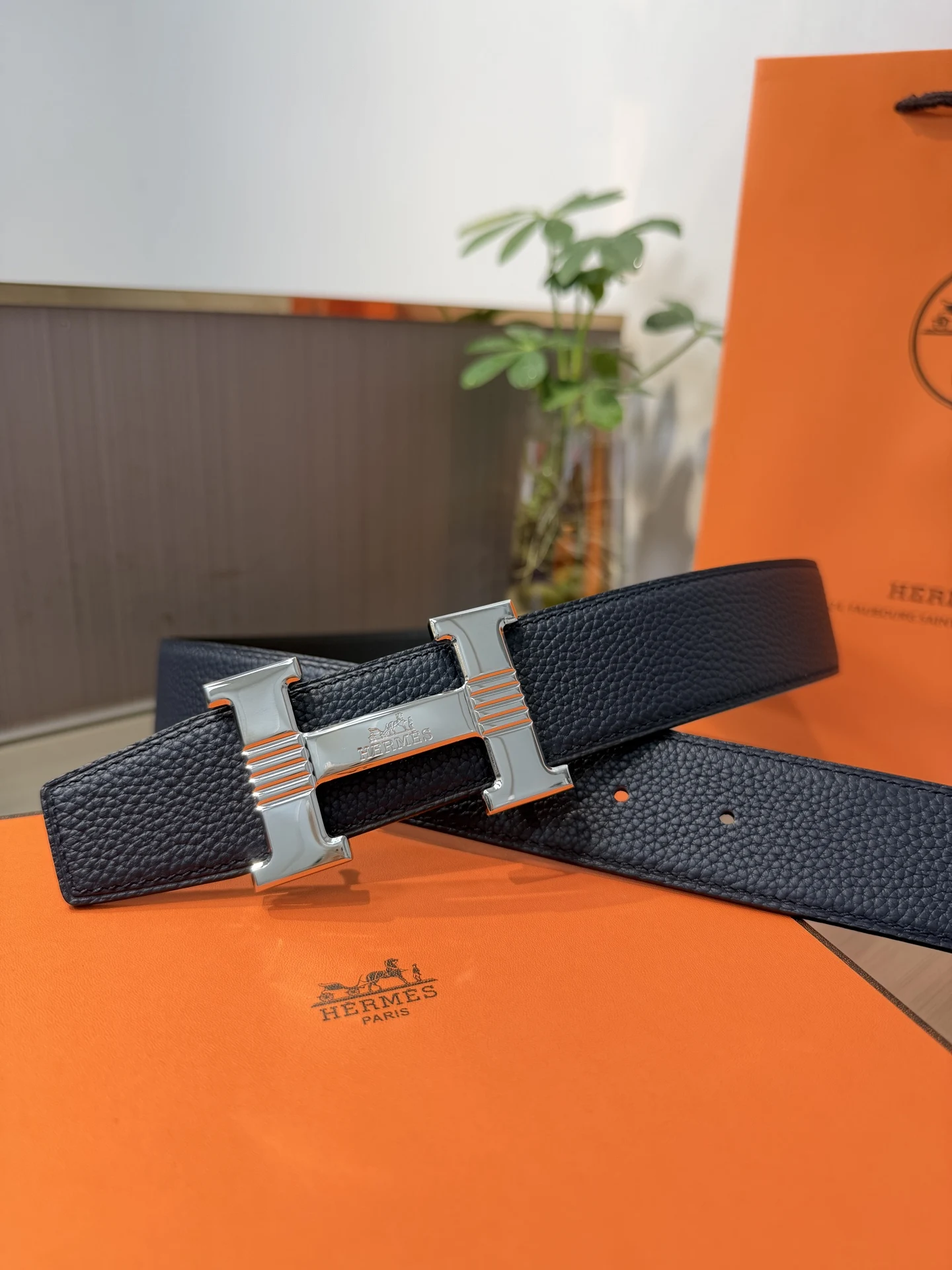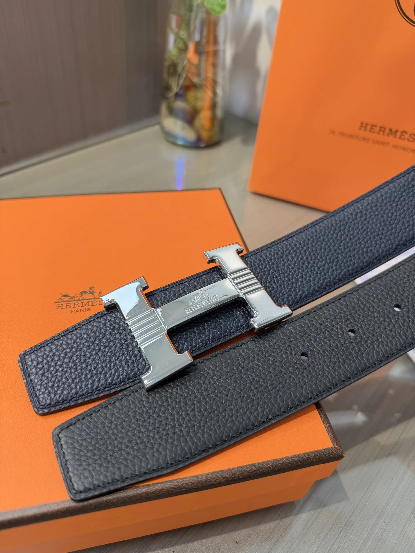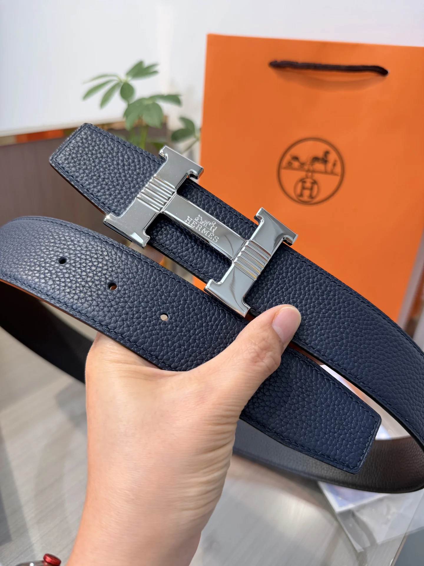Hermes Men s Reversible Leather Belt 38mm, made of double-sided top layer cowhide, reversible design, paired with premium steel buckle hardware, exquisite craftsmanship, actual product photography, high-end luxury.