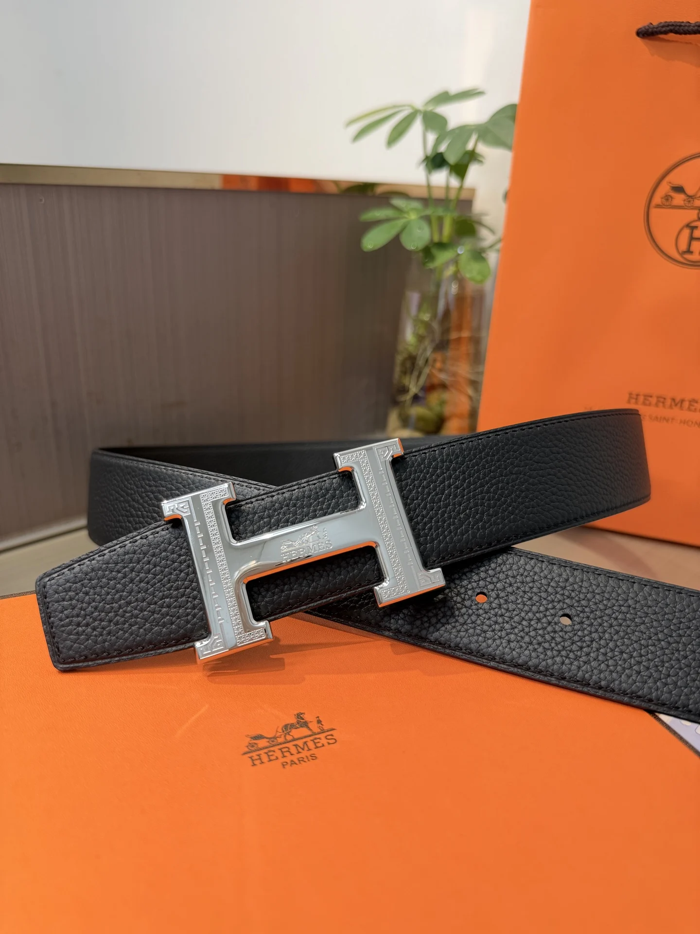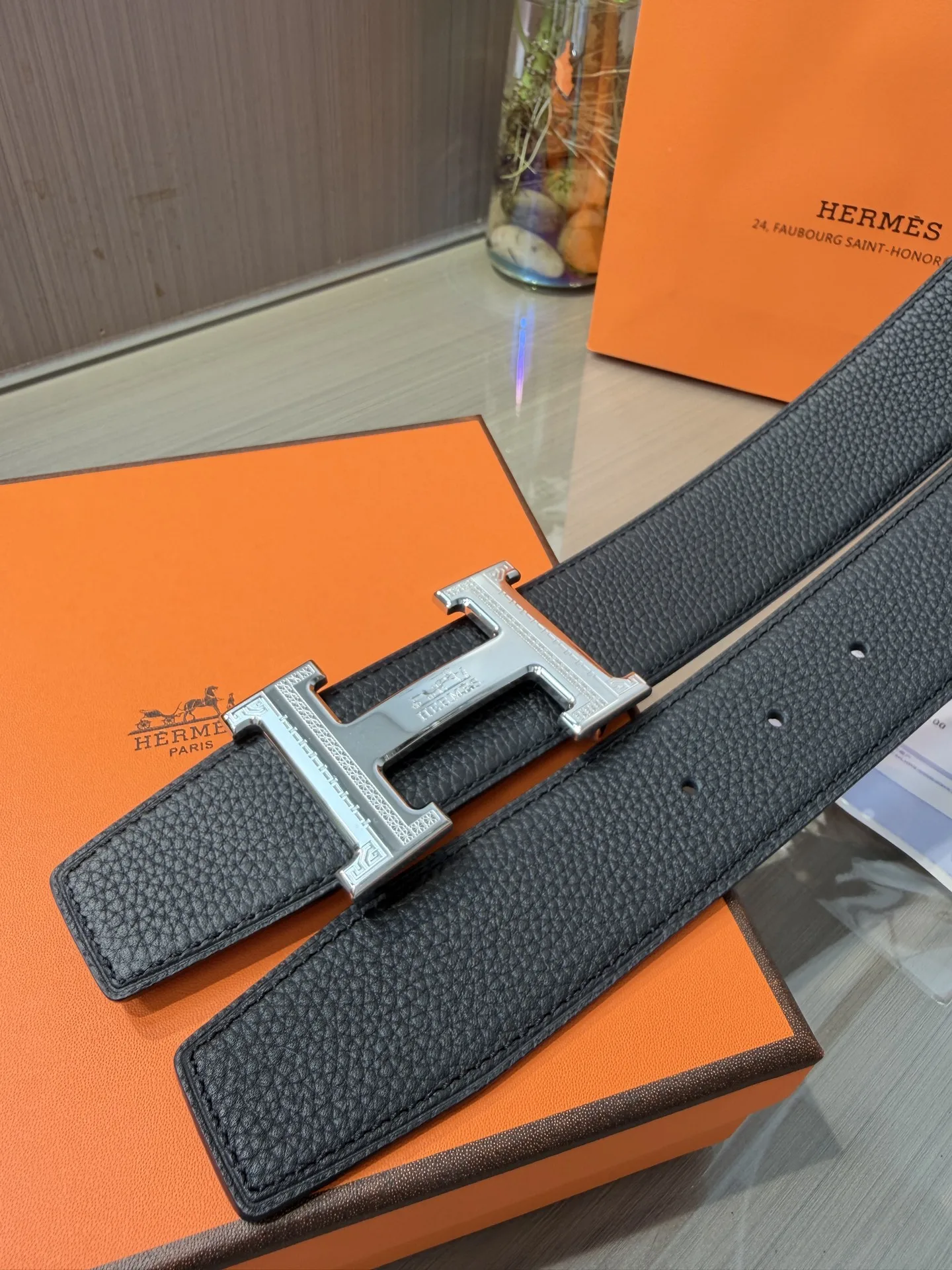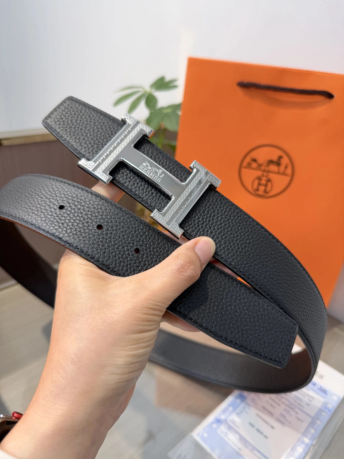 Hermes Men s Reversible Leather Belt 38mm, made of double-sided top layer cowhide, reversible design, paired with premium steel buckle hardware, exquisite craftsmanship, actual product photography, high-end luxury.