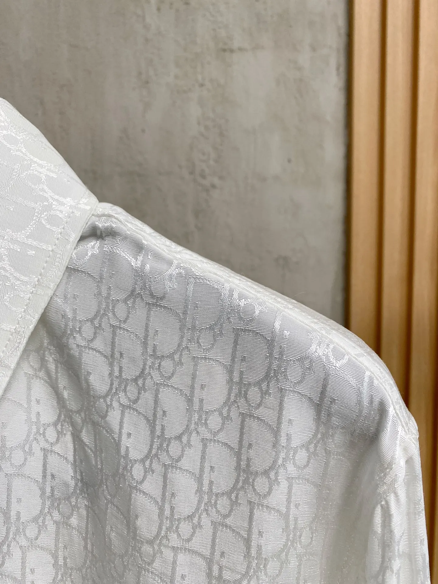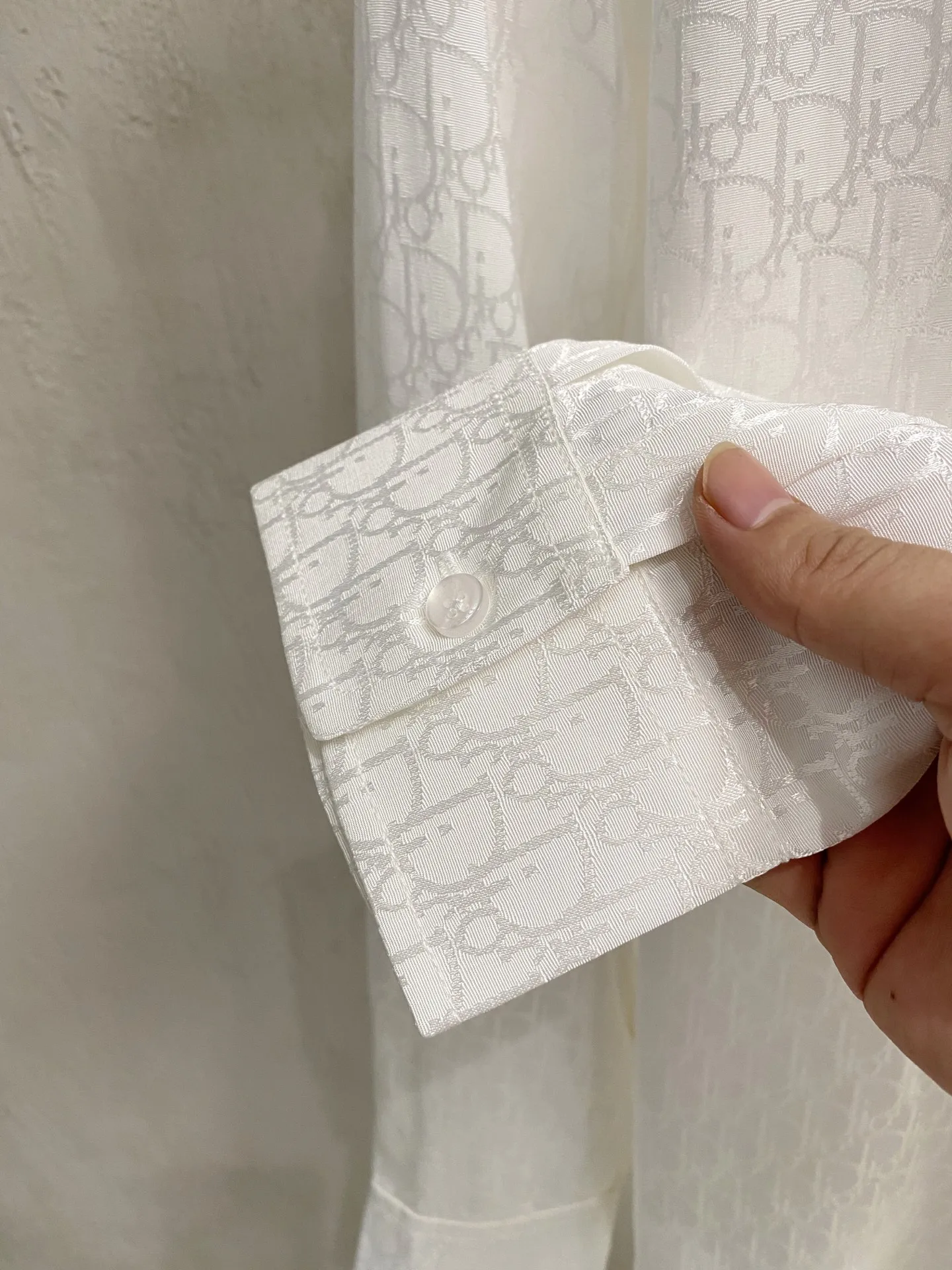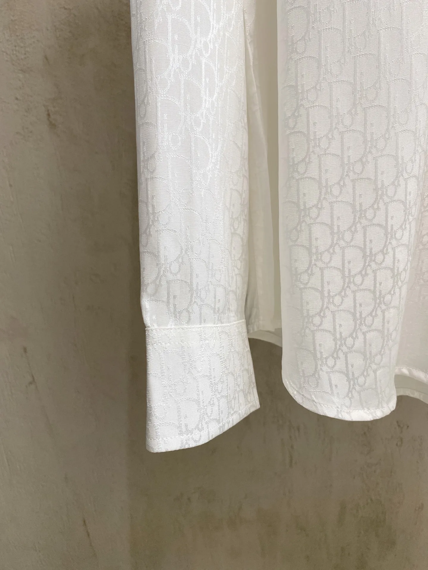 DIOR s new classic jacquard long-sleeve shirt is available for sale in-store. Made from custom fabric, it is skin-friendly and comfortable, featuring a full-body classic jacquard logo pattern, with all three labels included.