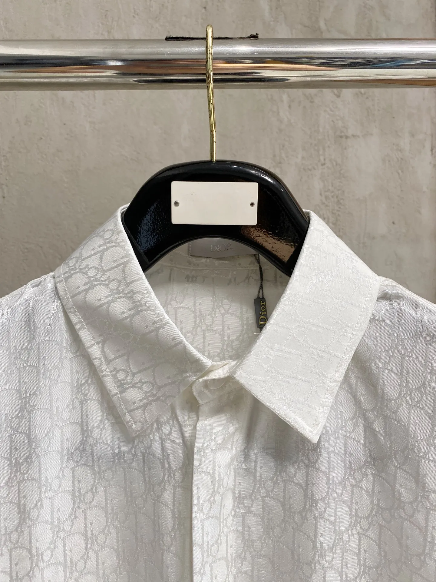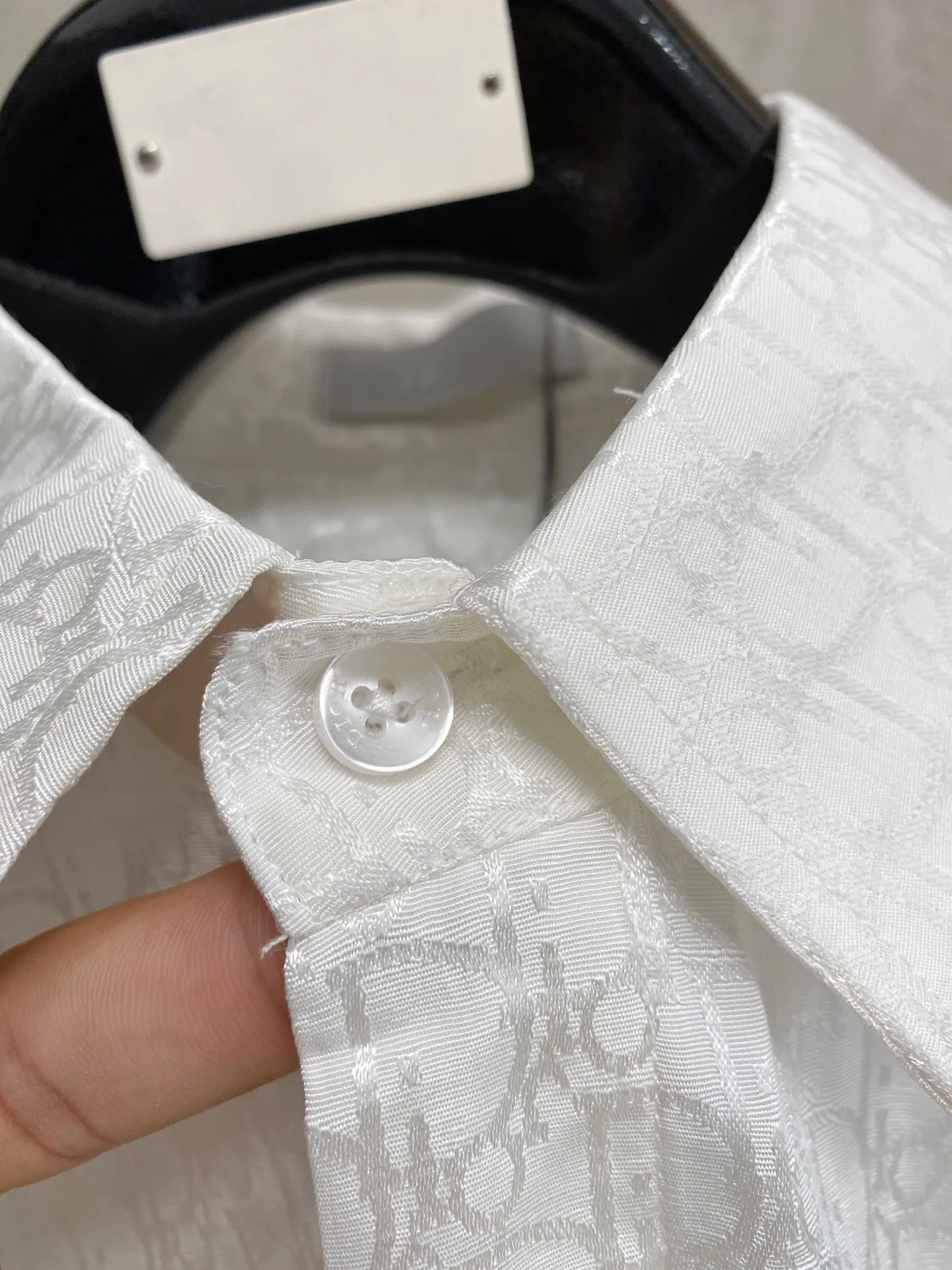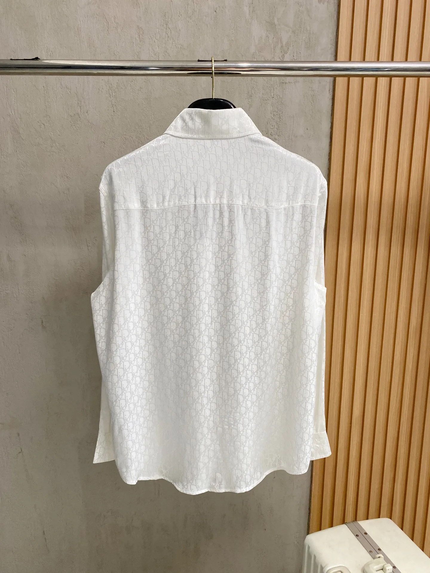 DIOR s new classic jacquard long-sleeve shirt is available for sale in-store. Made from custom fabric, it is skin-friendly and comfortable, featuring a full-body classic jacquard logo pattern, with all three labels included.