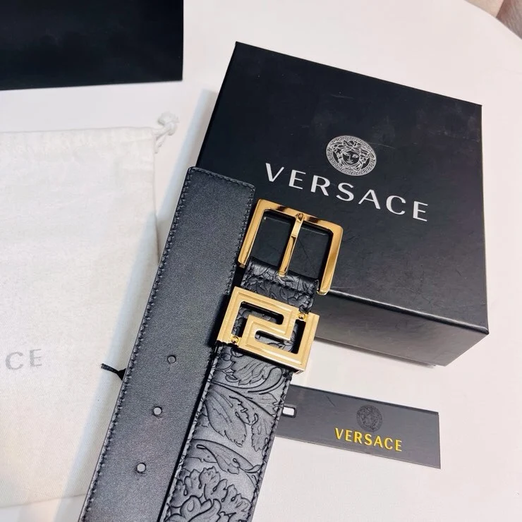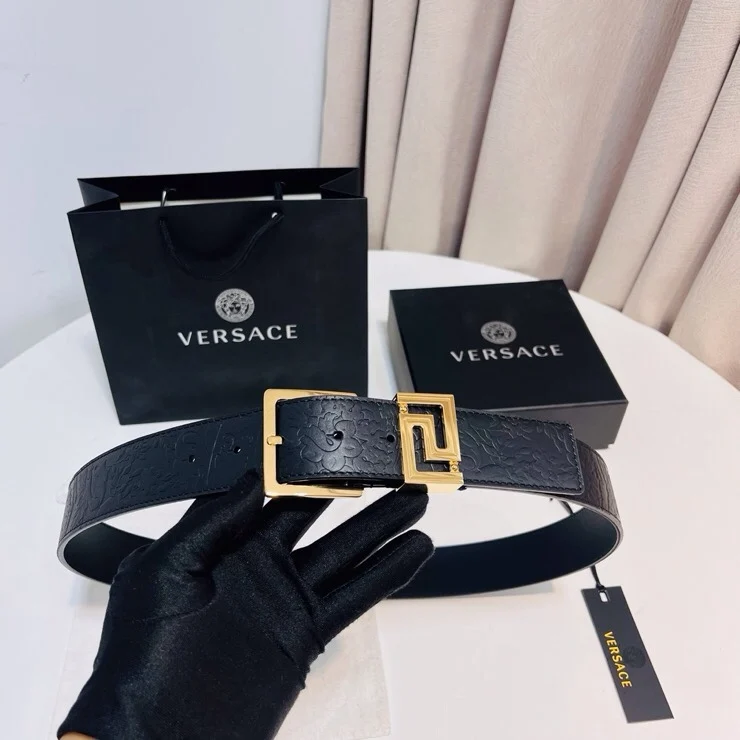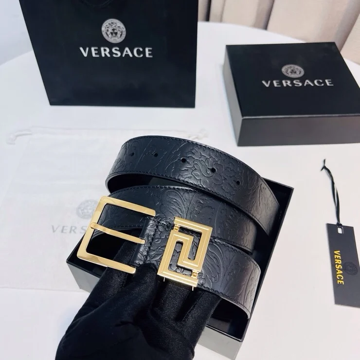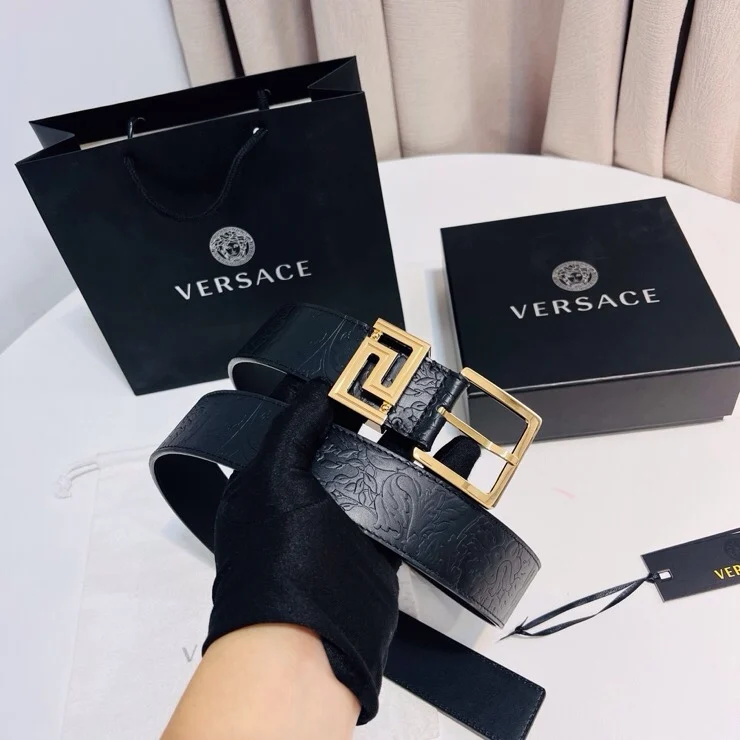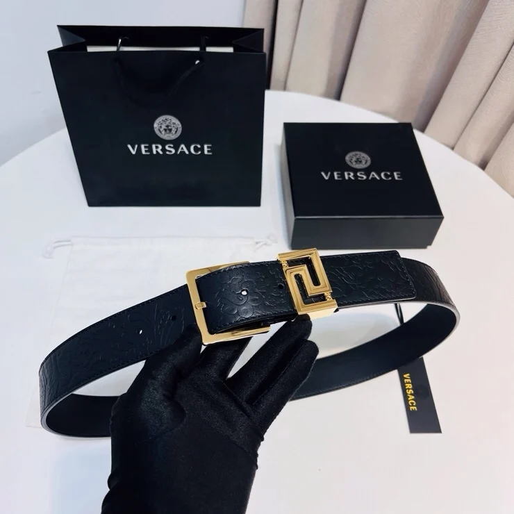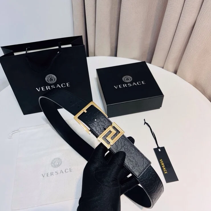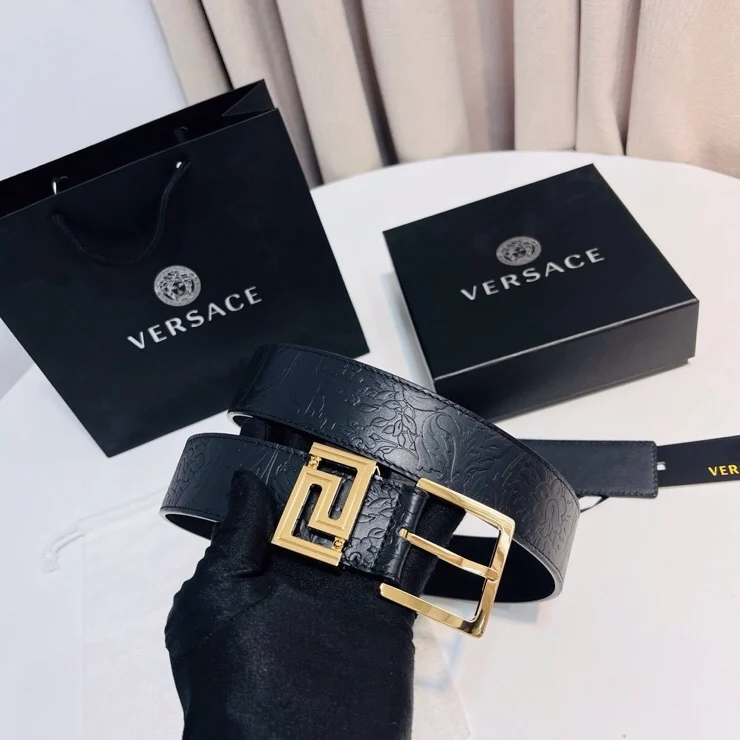 Versace new top layer cowhide belt, adorned with Greca Goddess belt buckle, 4.0cm.