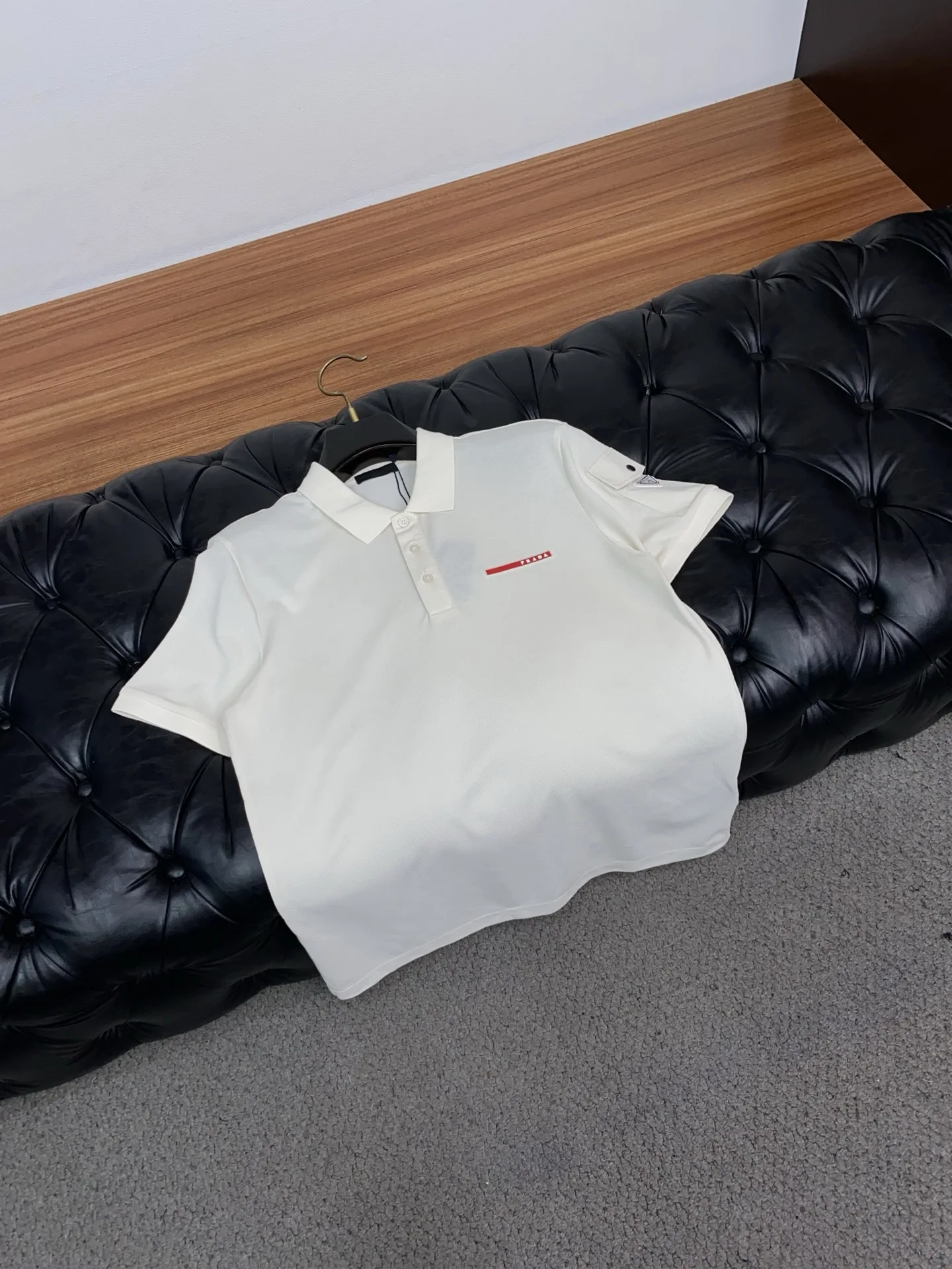 Prada new men s polo short sleeveImported fabric presentation. The lightweight and soft fabric is garment-dyed, creating an elegant texture, with original custom imported yarn colo..