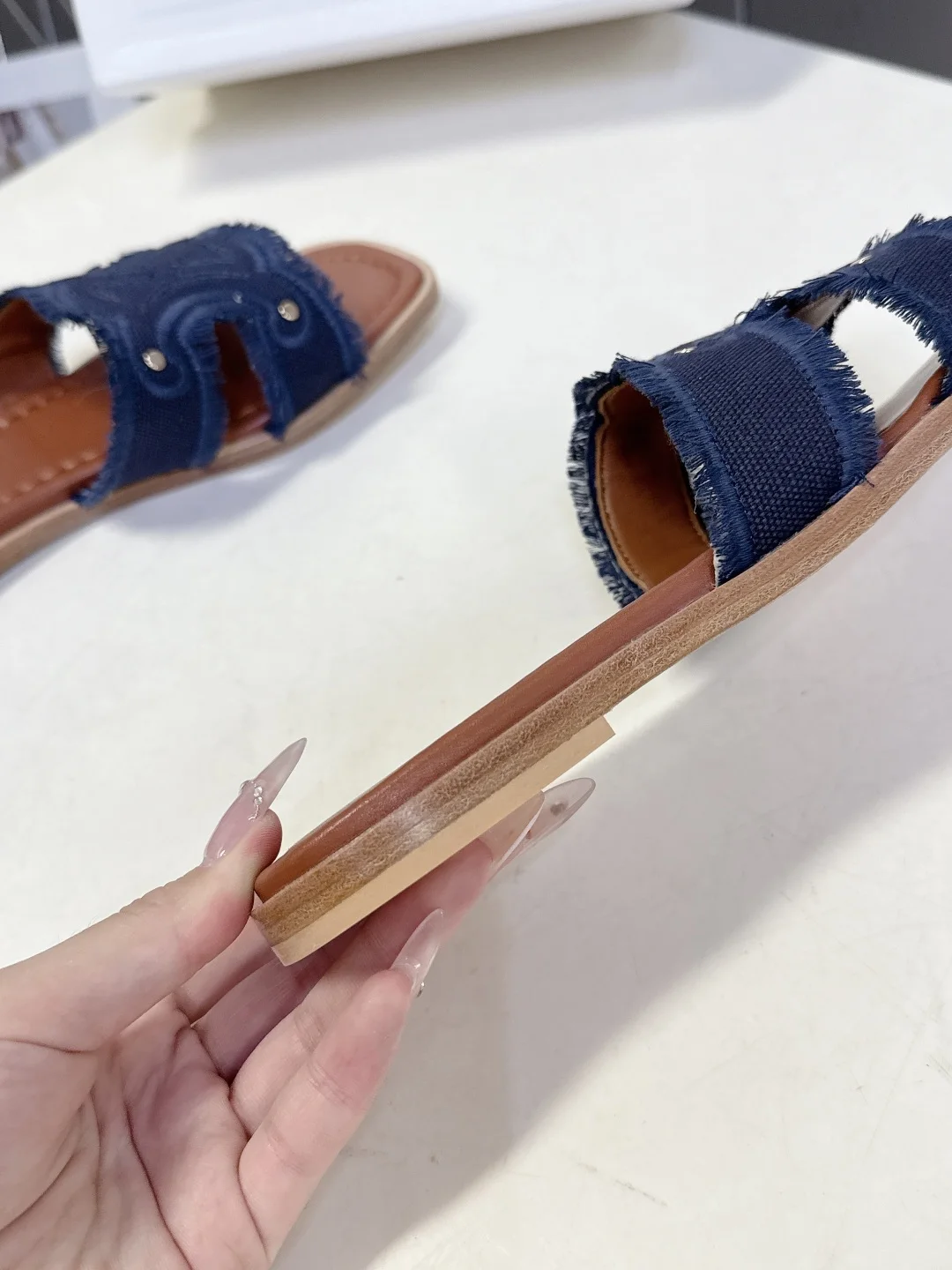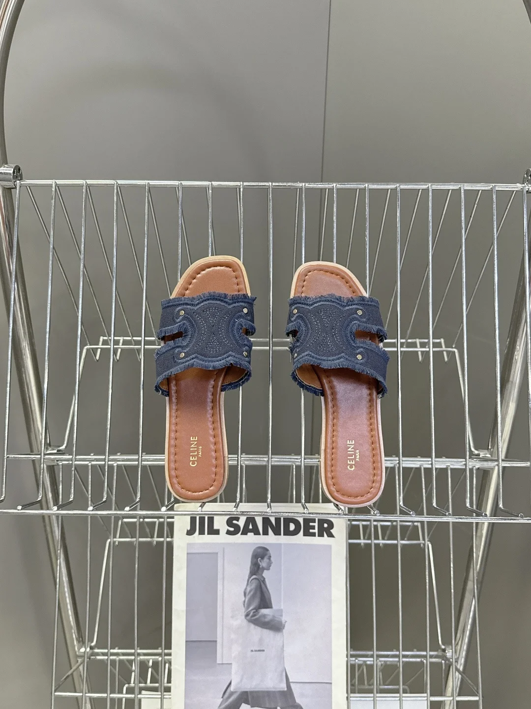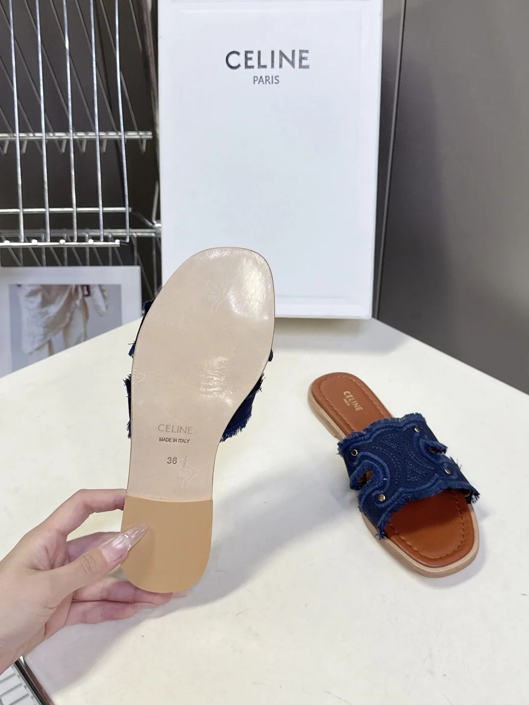 Celine Spring/Summer latest retro Arc de Triomphe fashionable slippers, absolutely original purchase development, still the highest output restoring the original customized washed denim material, inner leather, original mold genuine leather outsole with anti-slip bottom plate Size: 35-40