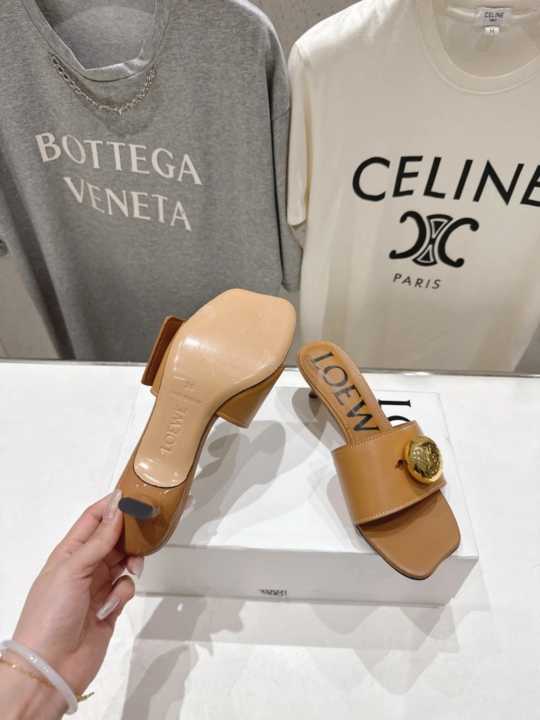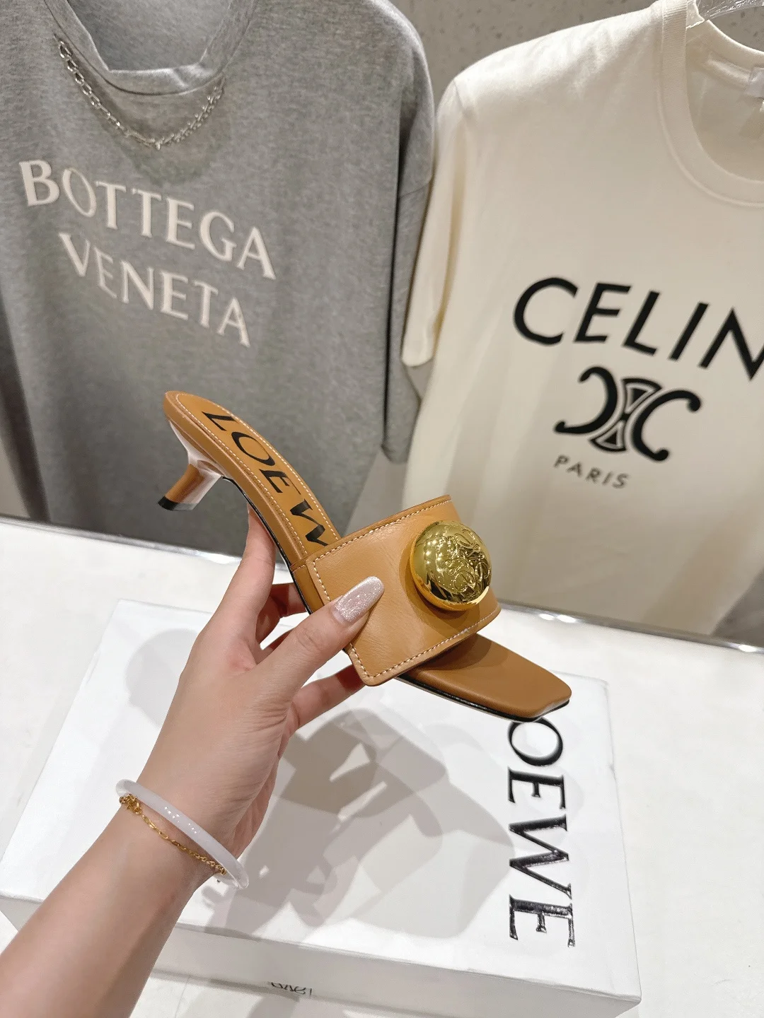 Loewe New Retro Style Beach High Heels Slippers Women s Flat Slippers