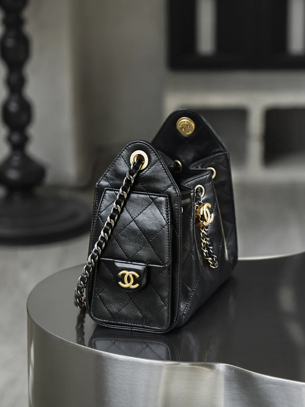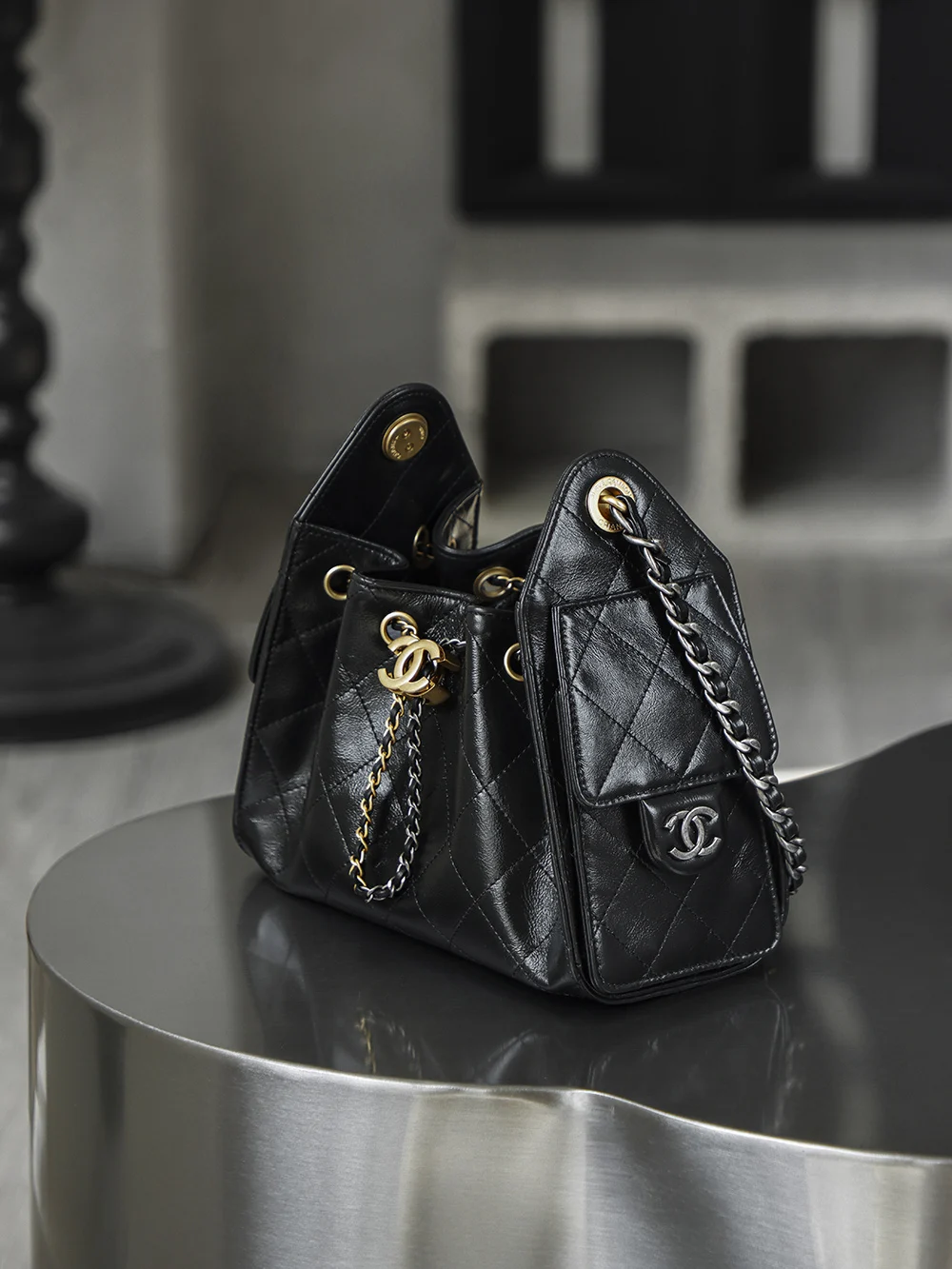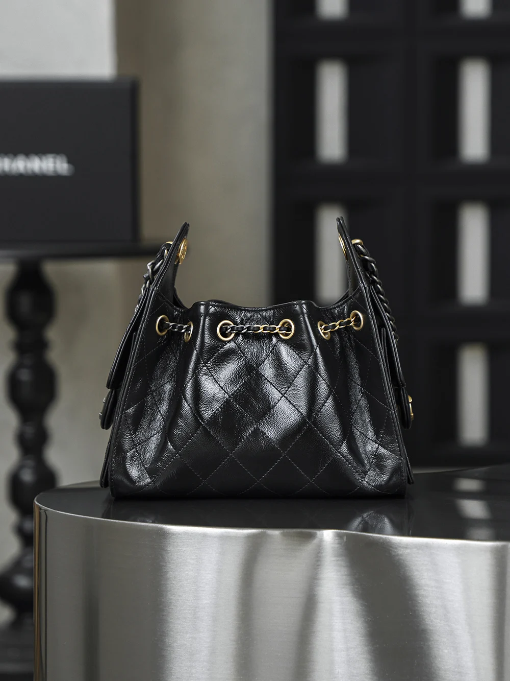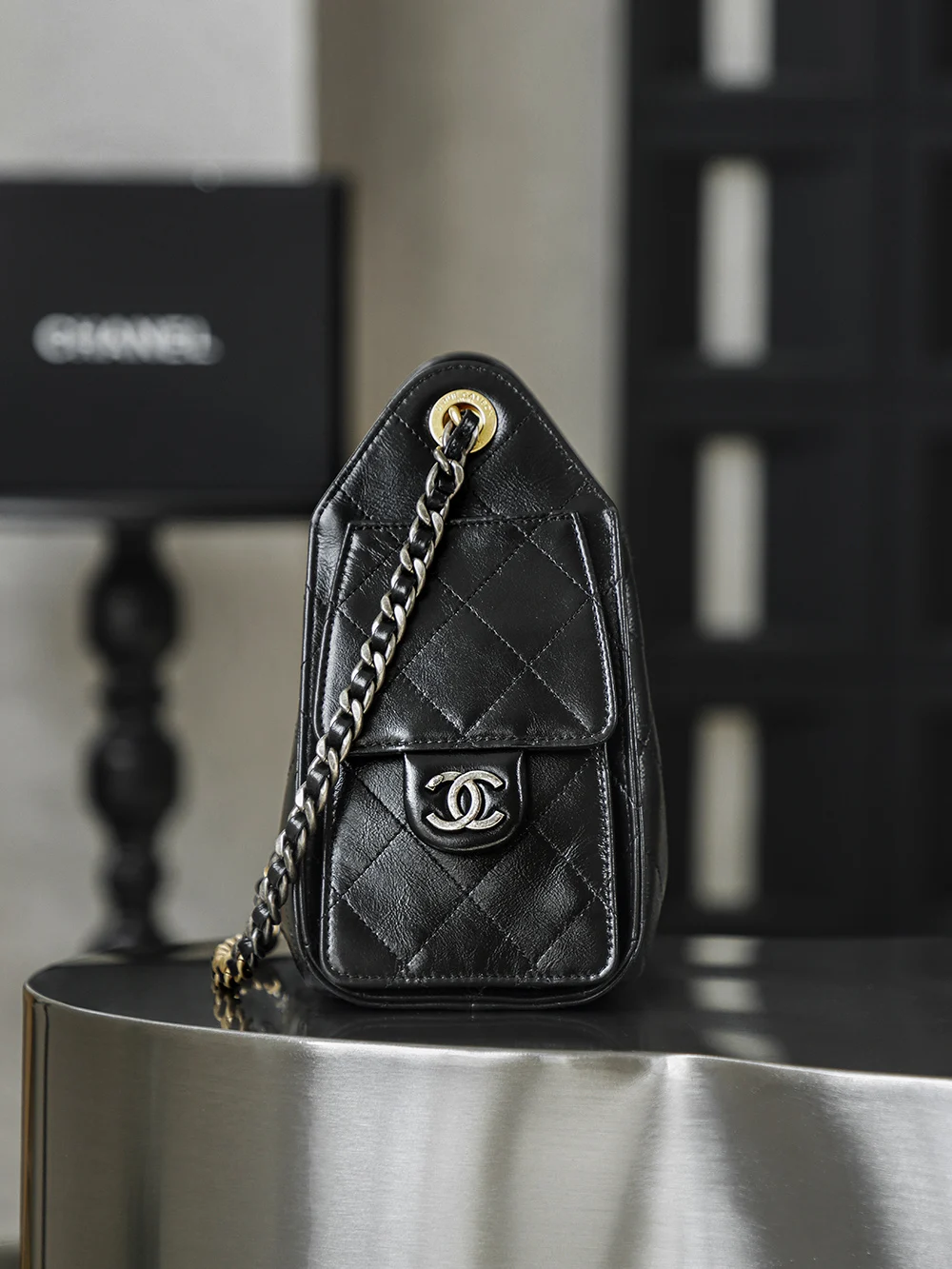 Premium Original Factory 26C 25bag Mini Premium Edition 26C New Season Oiled Wax Leather, with a breathtaking high gloss, the first sight of this 25bag mini black gold strikes the heart, featuring a Yin-Yang Design interwoven with gold and silver, one chain with two styles: gold - vintage luxury, silver - cool and fashionable!