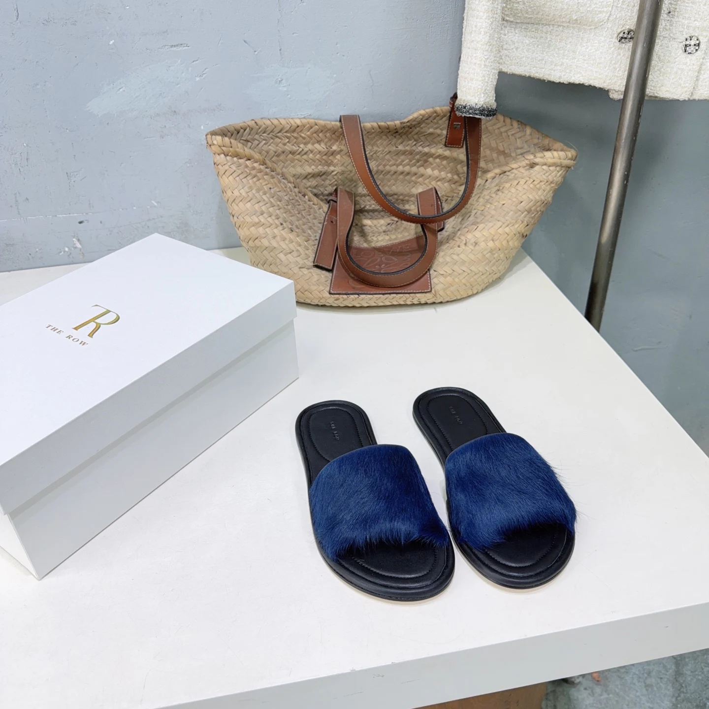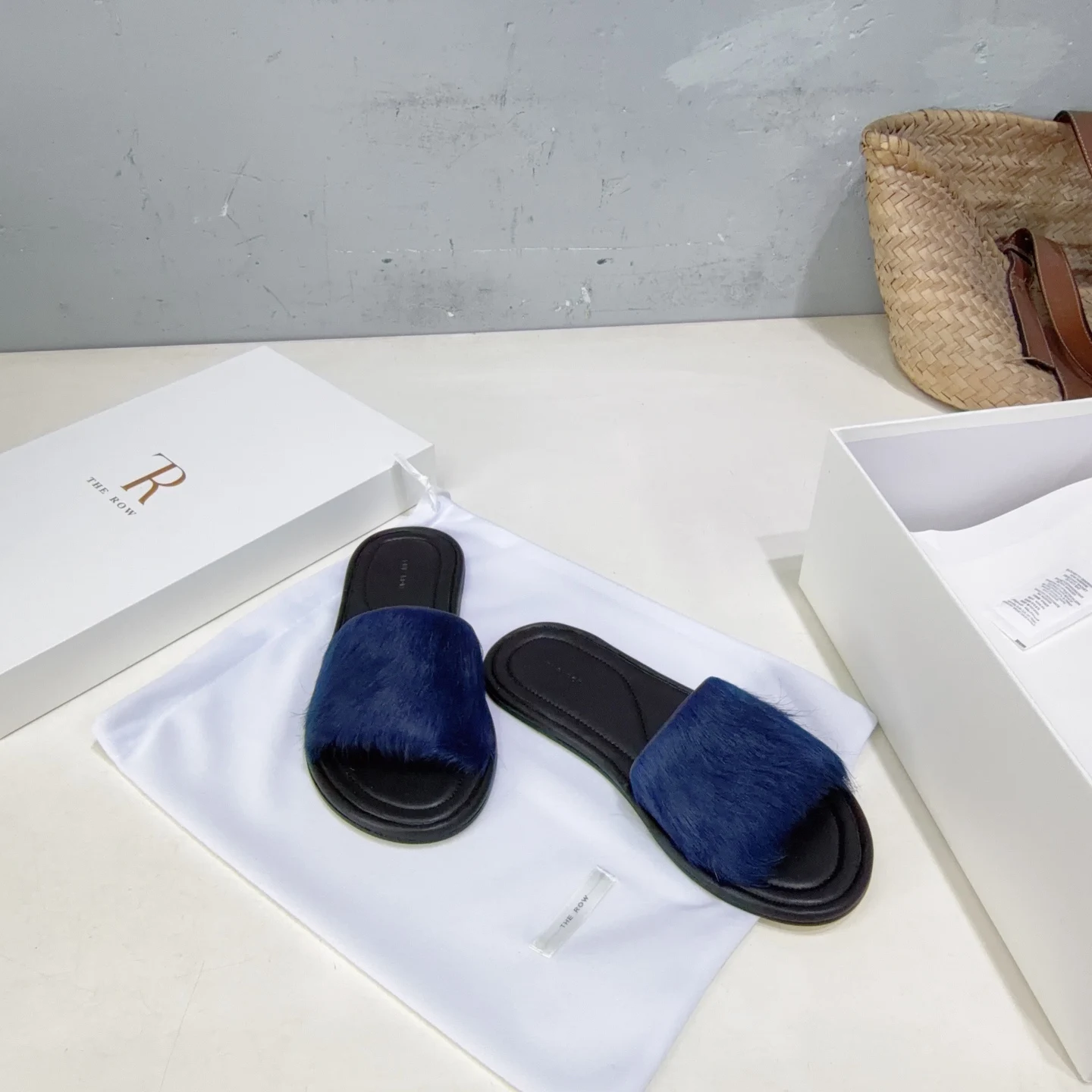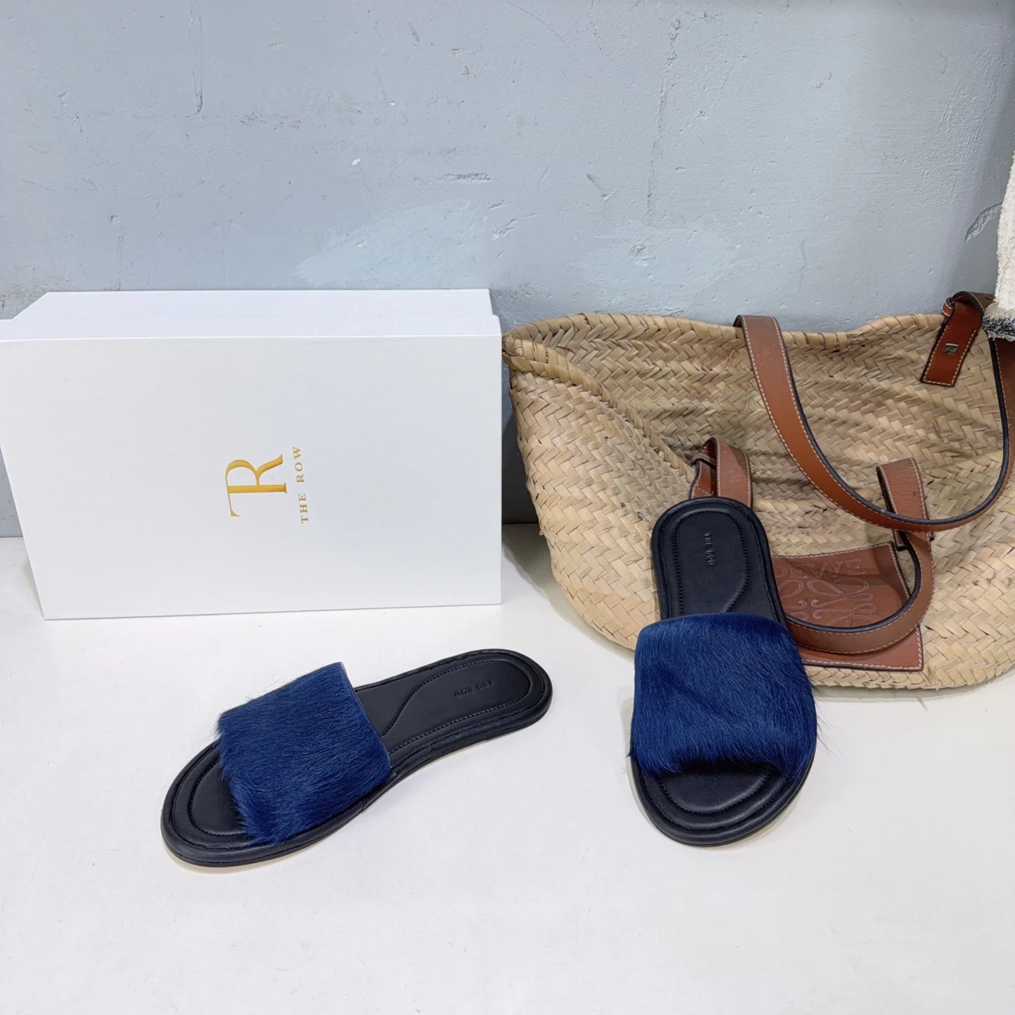 The niche trendy brand THE ROW s new spring/summer 2026 collection features simple minimalist mink fur beach flat sandals!