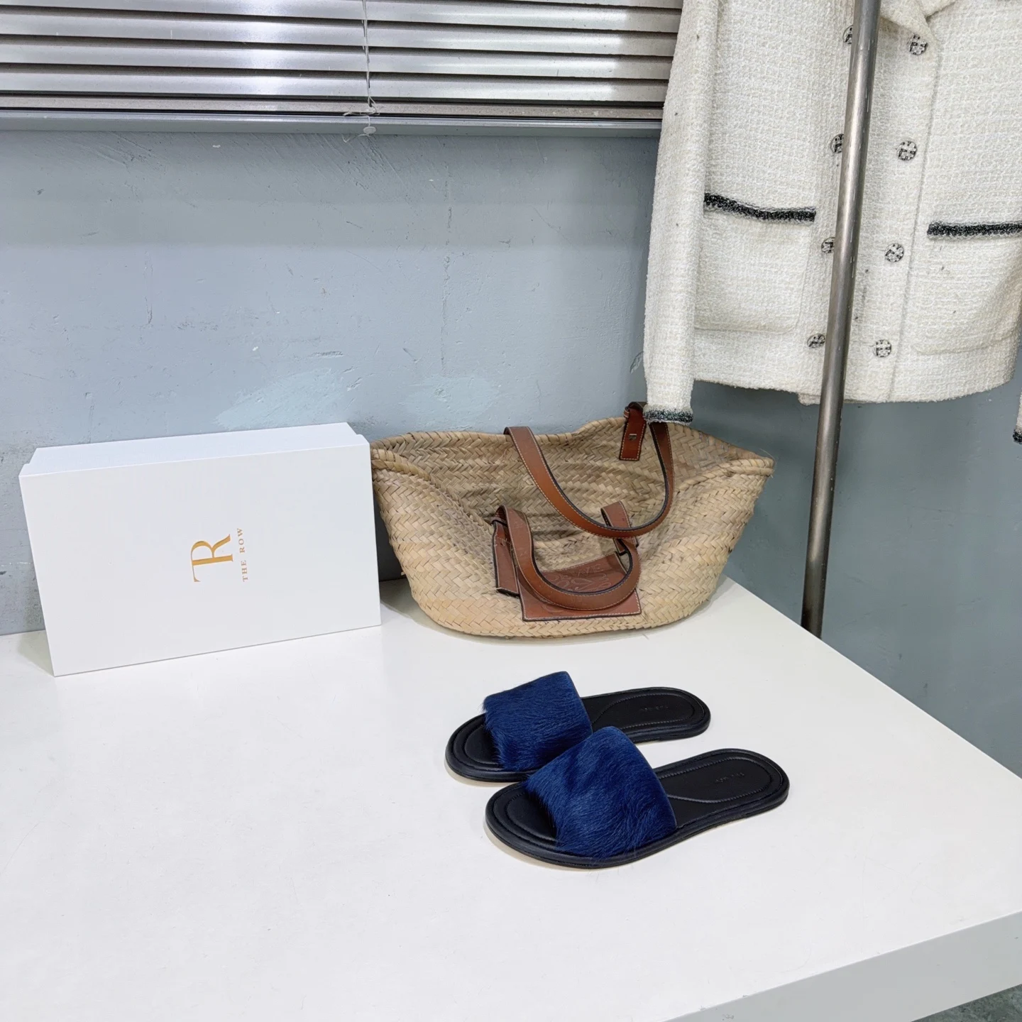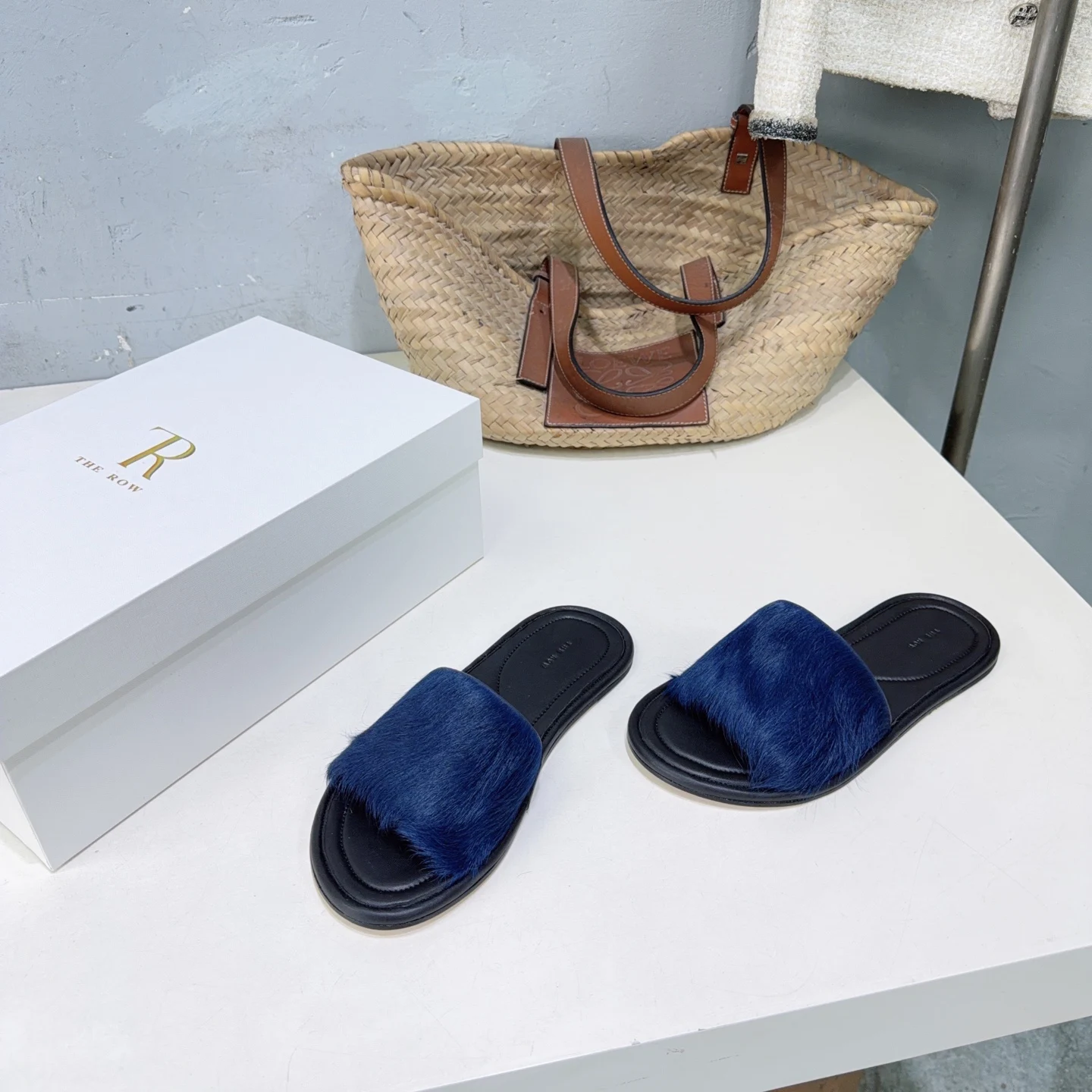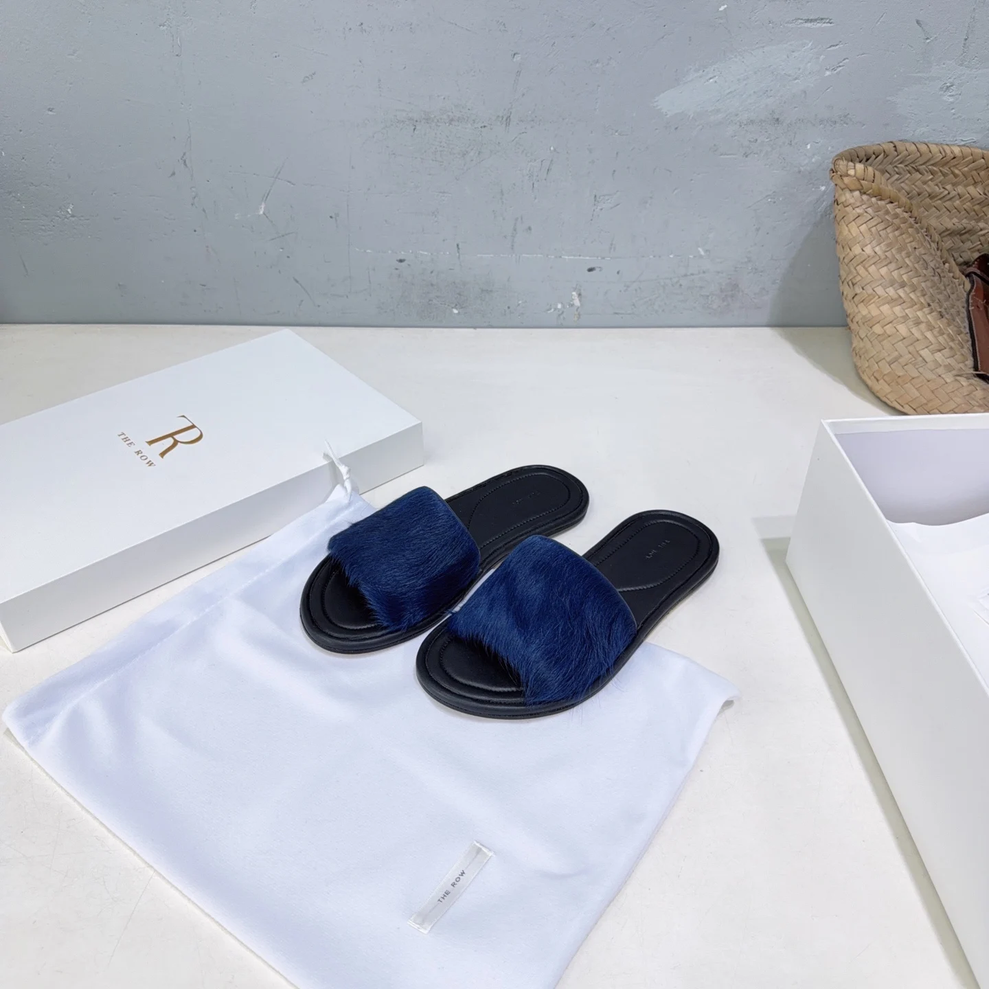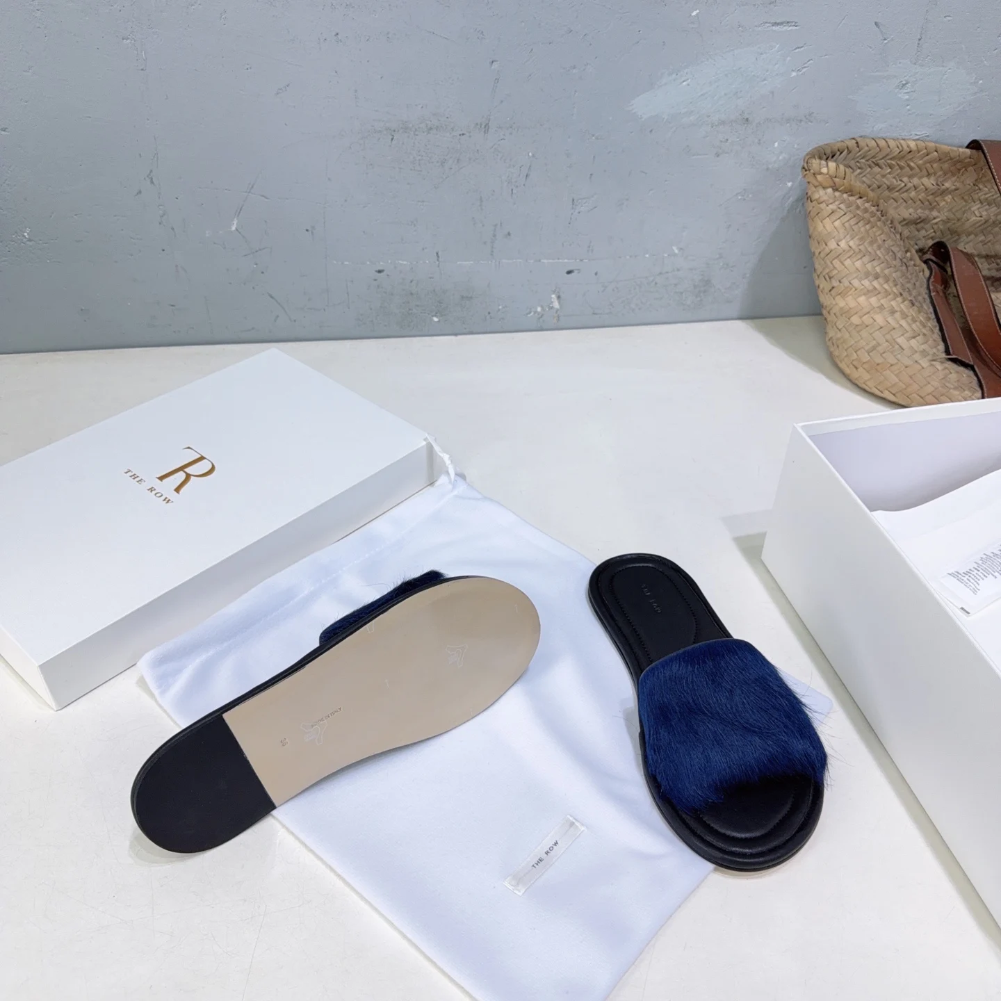 The niche trendy brand THE ROW s new spring/summer 2026 collection features simple minimalist mink fur beach flat sandals!