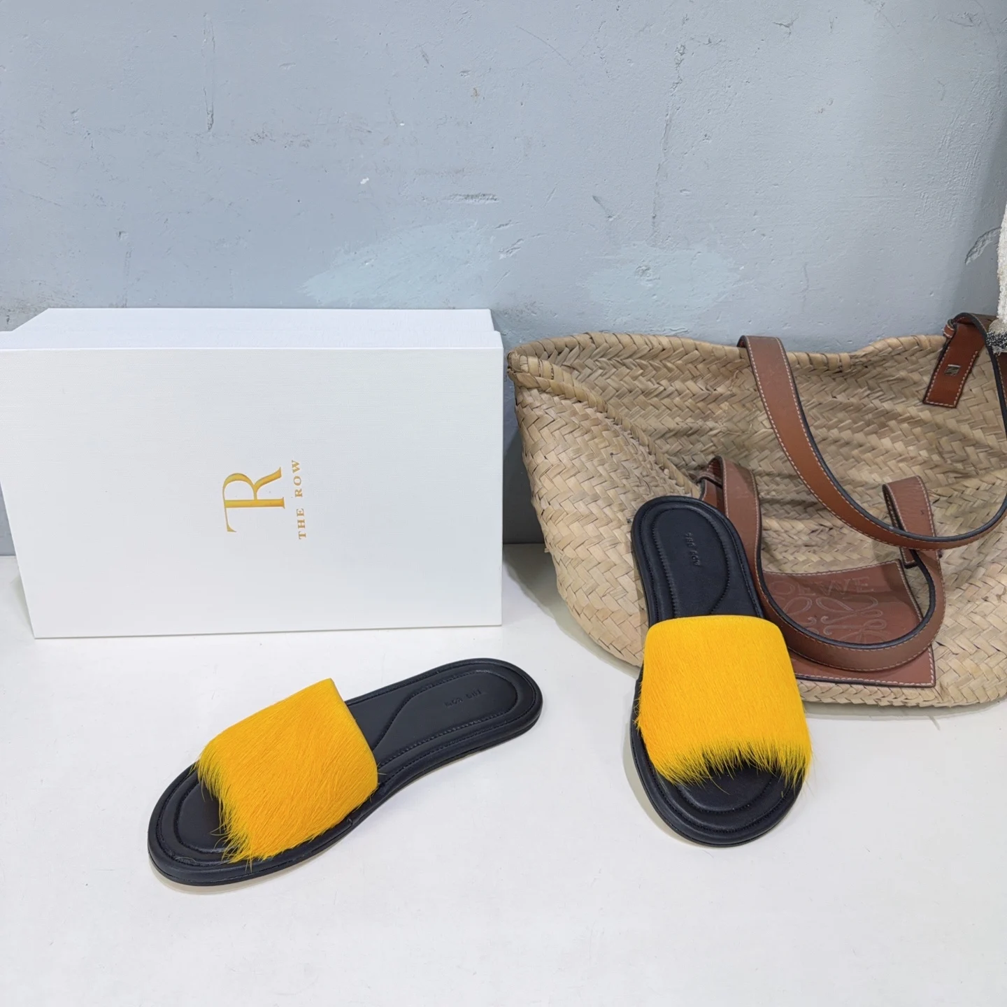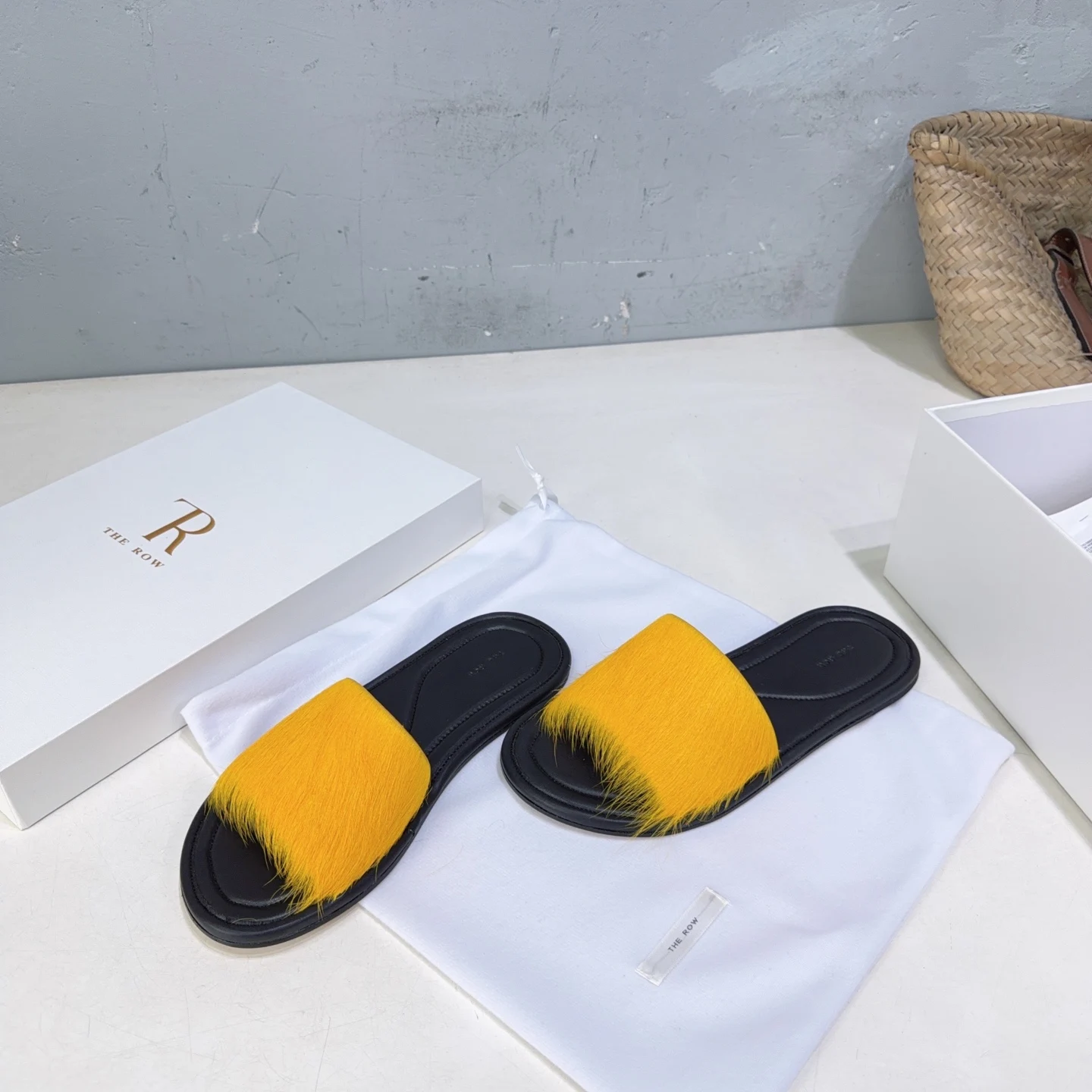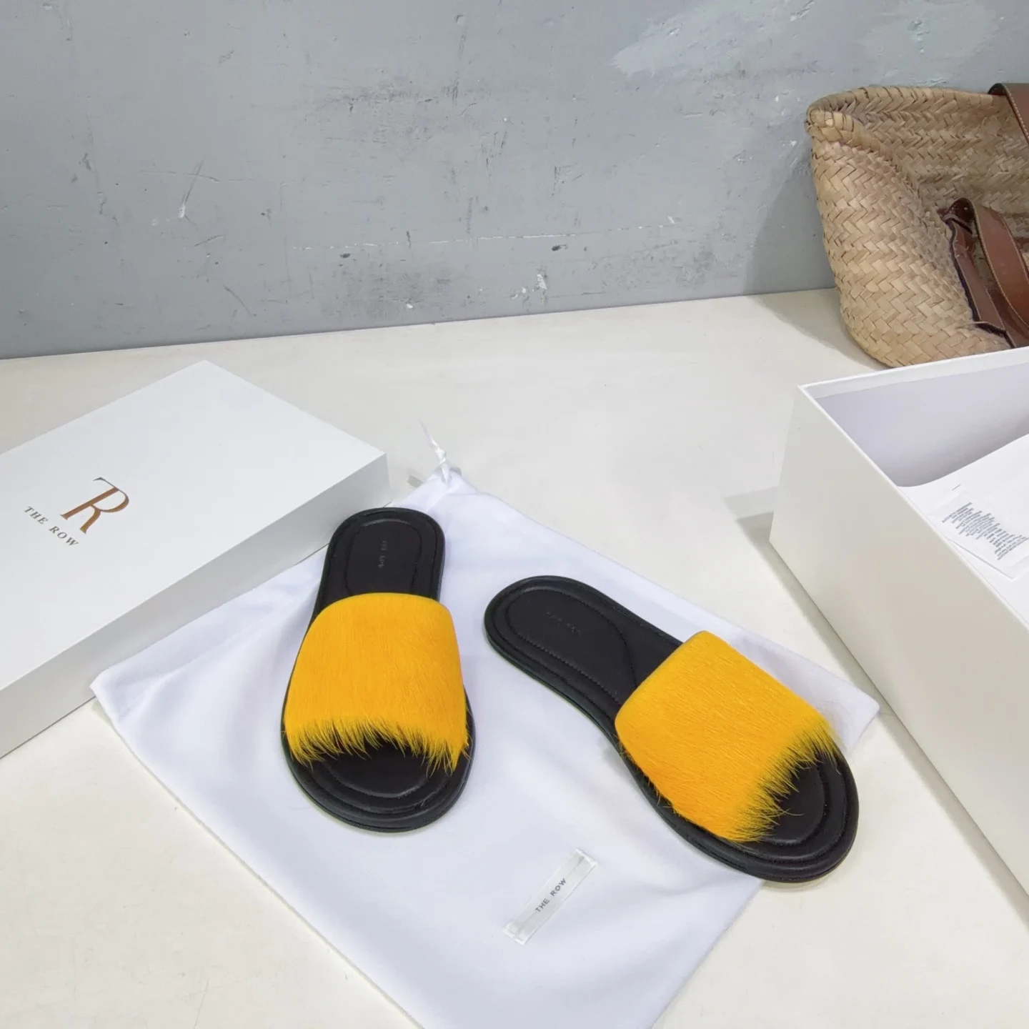 The niche trendy brand THE ROW s new spring/summer 2026 collection features simple minimalist mink fur beach flat sandals!
